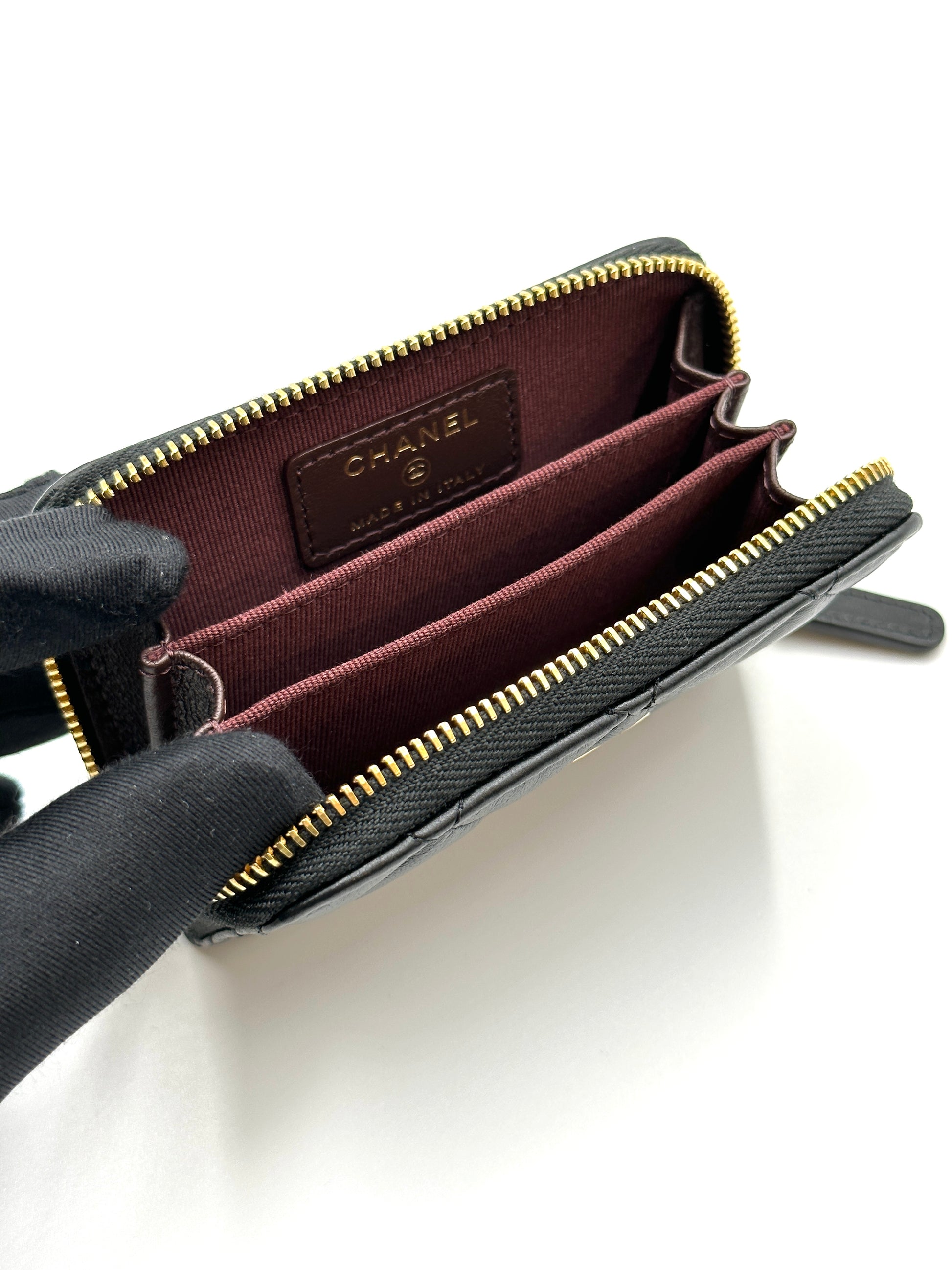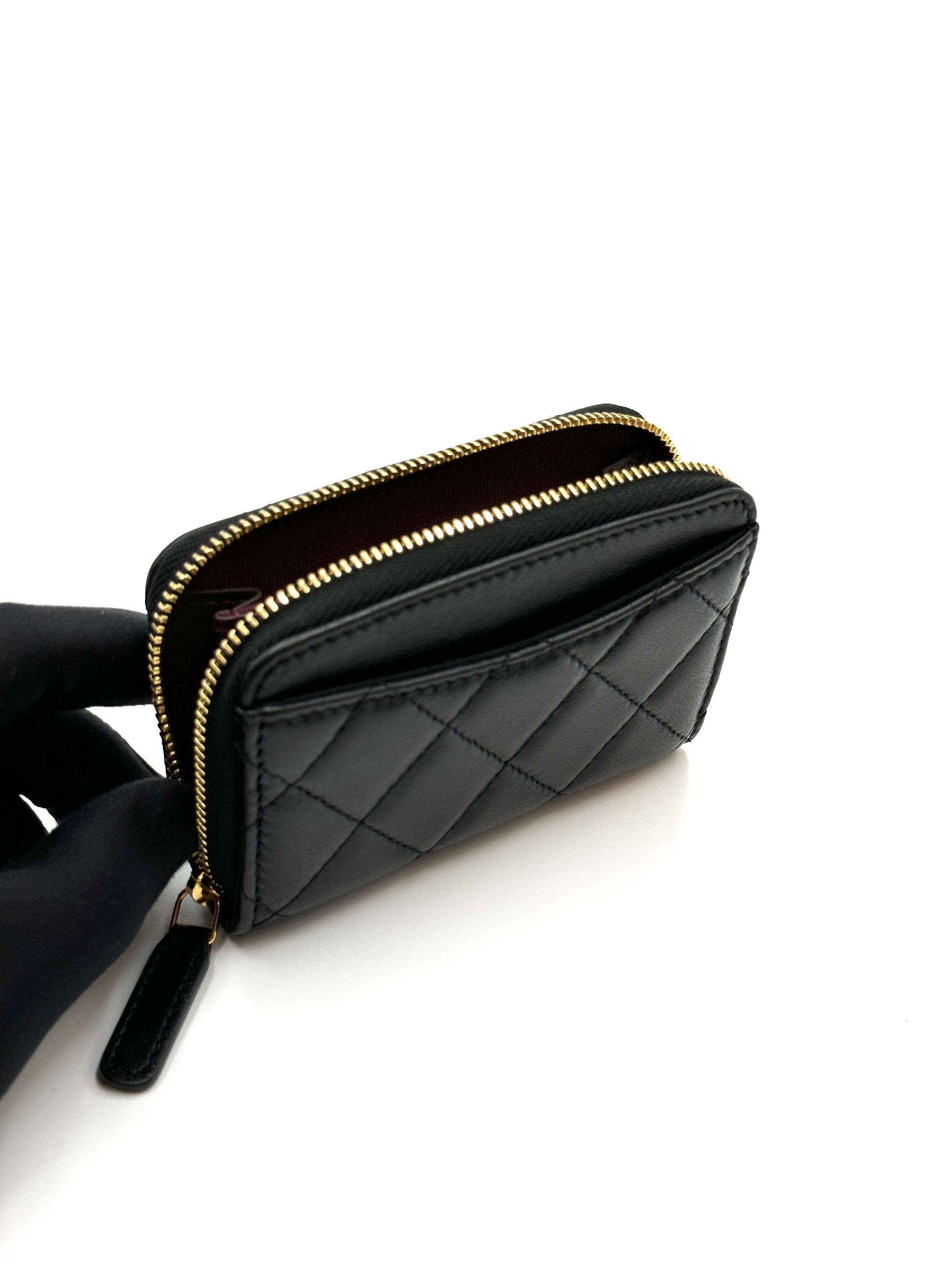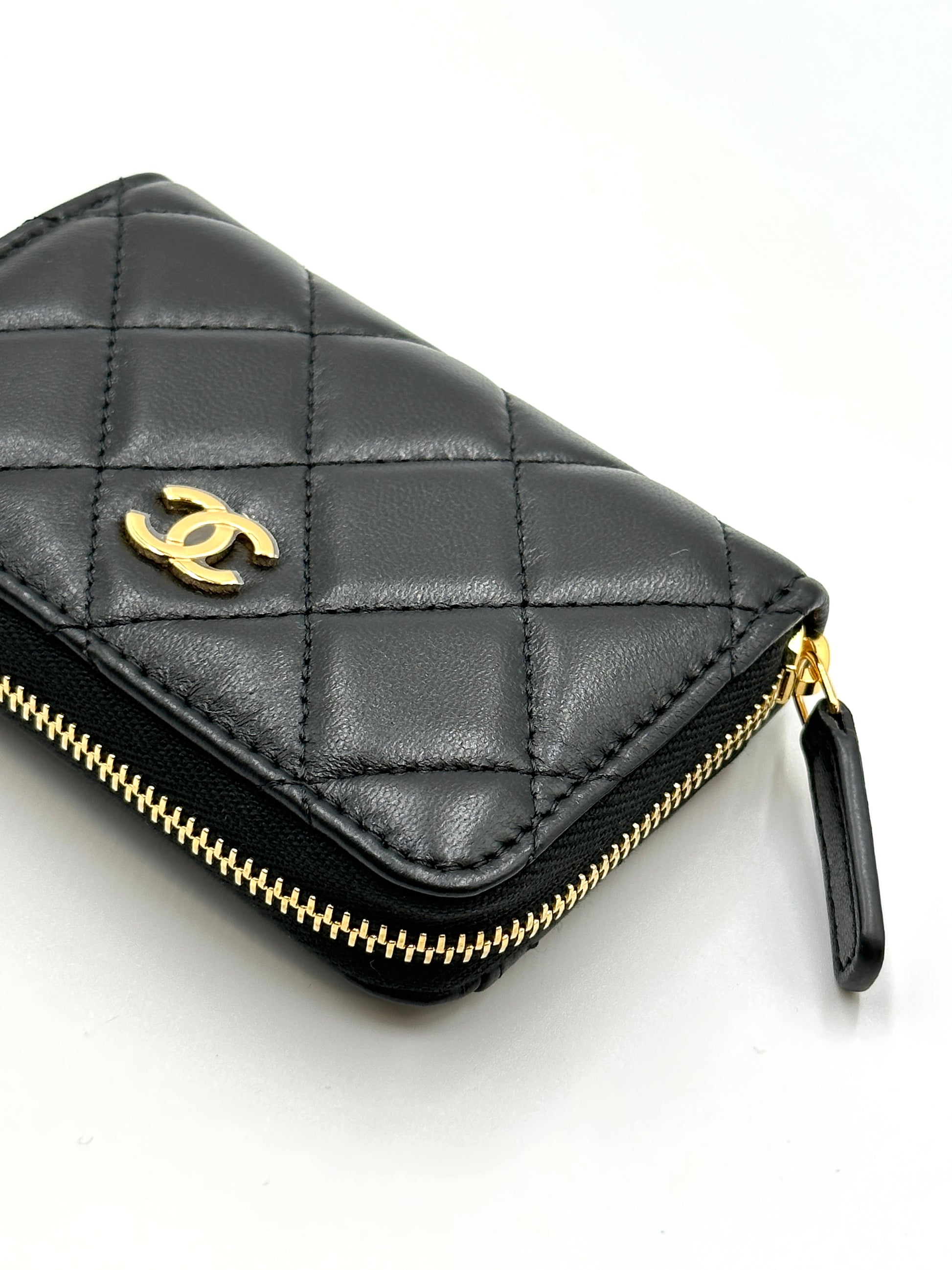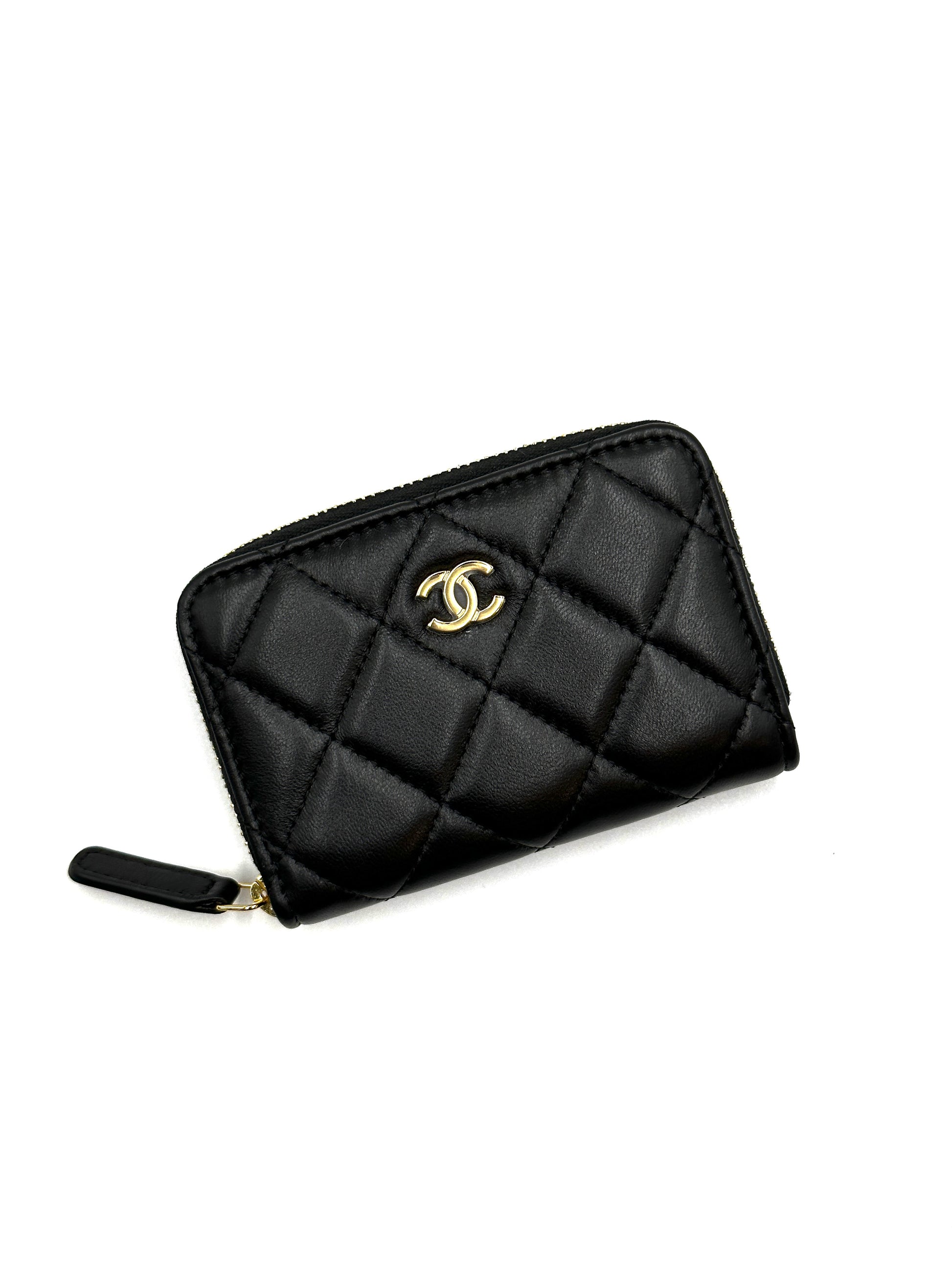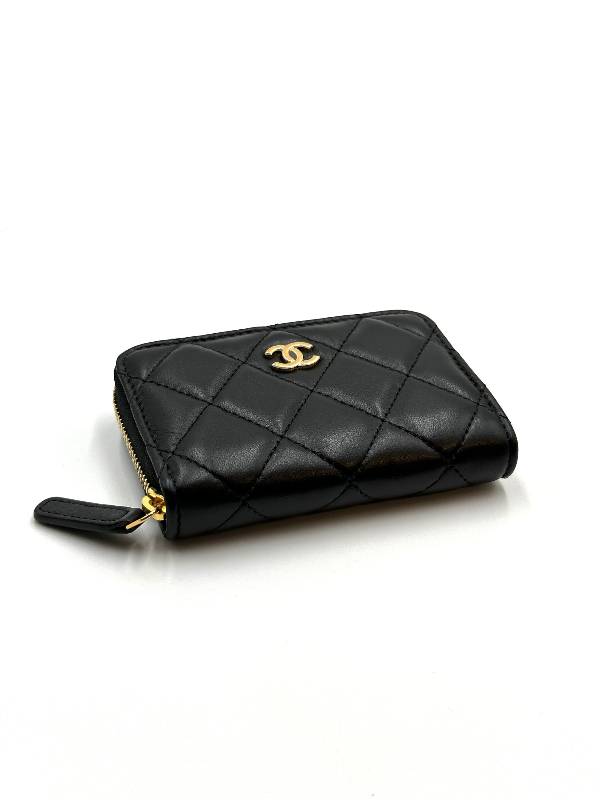 CHANEL 經典羊皮拉鍊零錢包 - 黑金