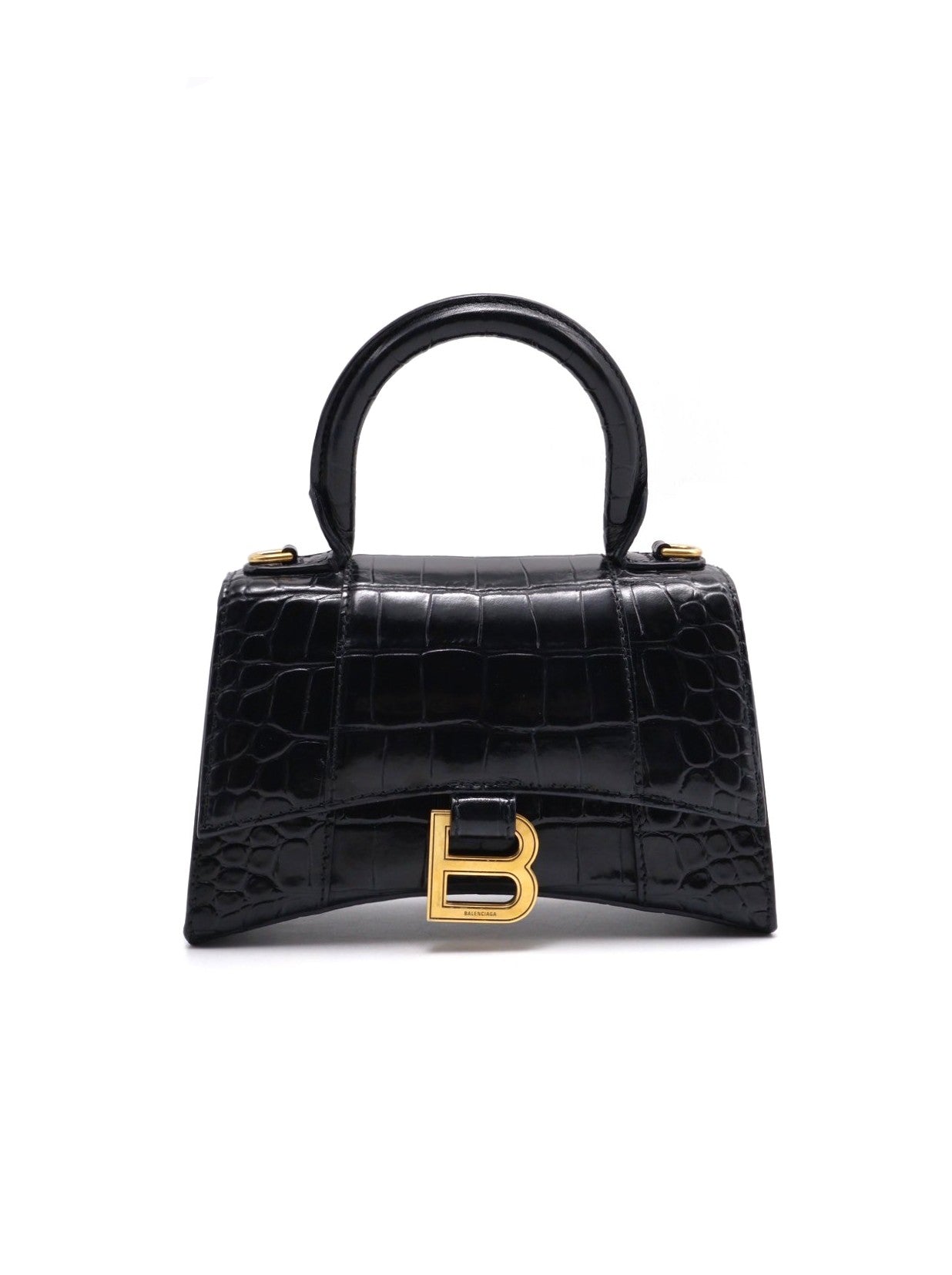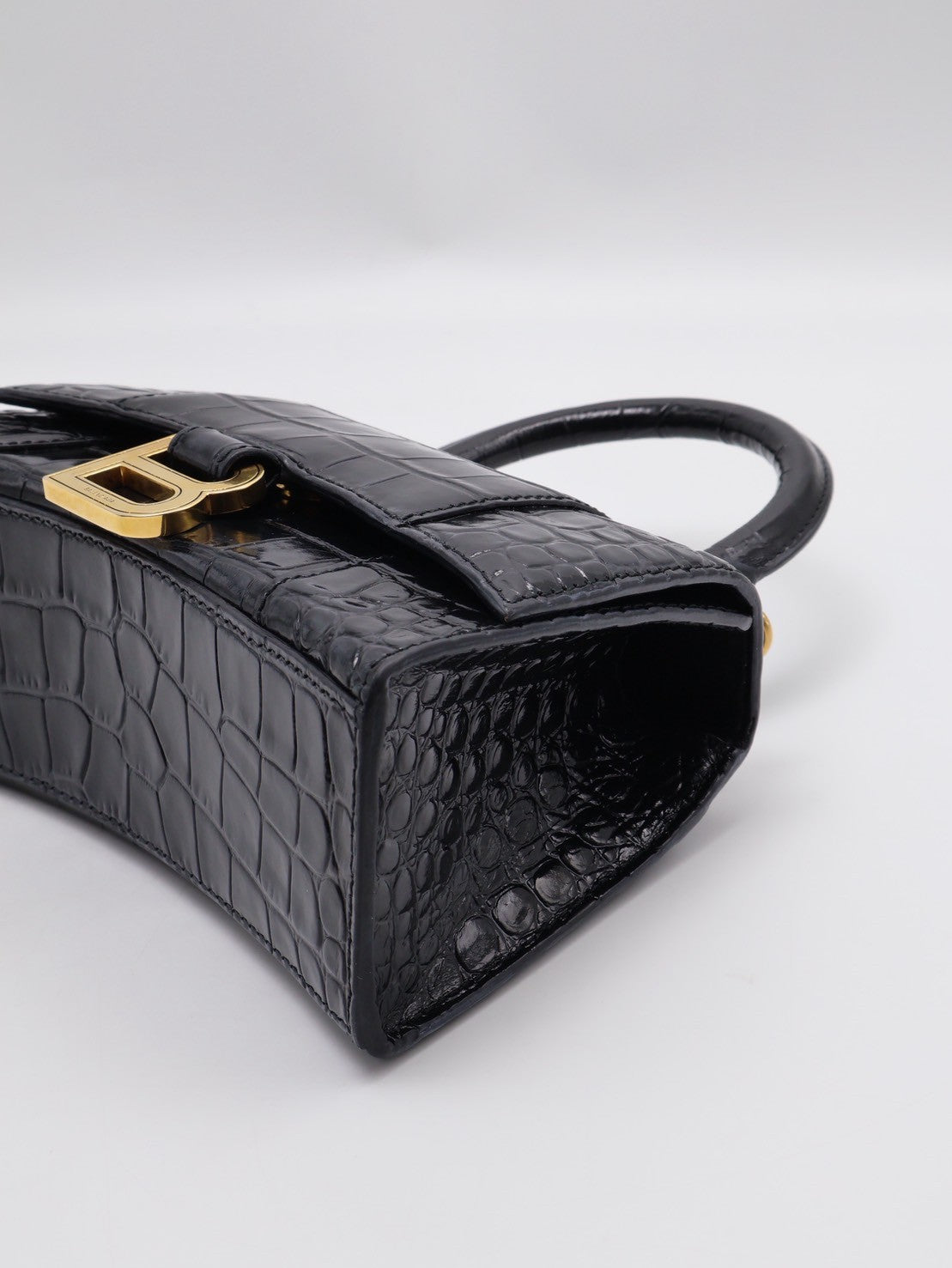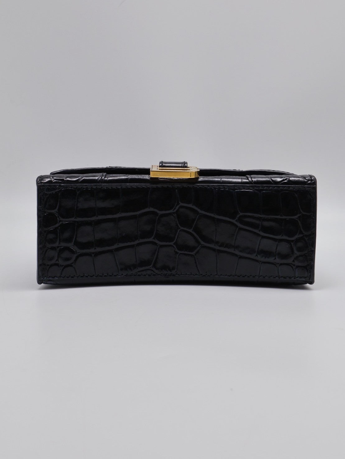 Balenciaga 閃亮小牛皮鱷魚壓紋沙漏包 - XS黑金