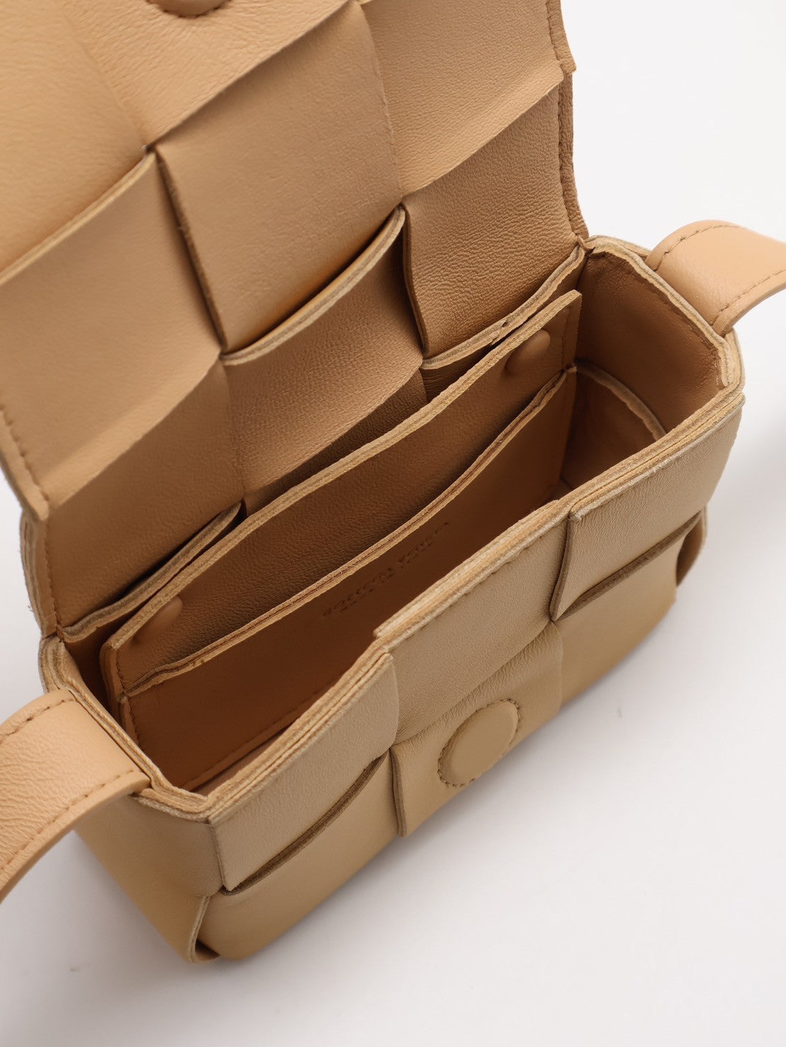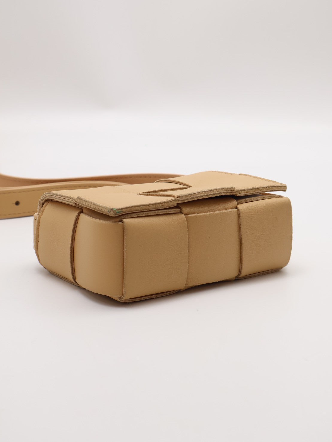 BOTTEGA VENETA Cassette編織斜背包 - mini燕麥黃