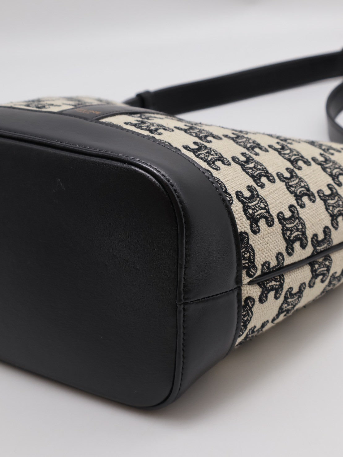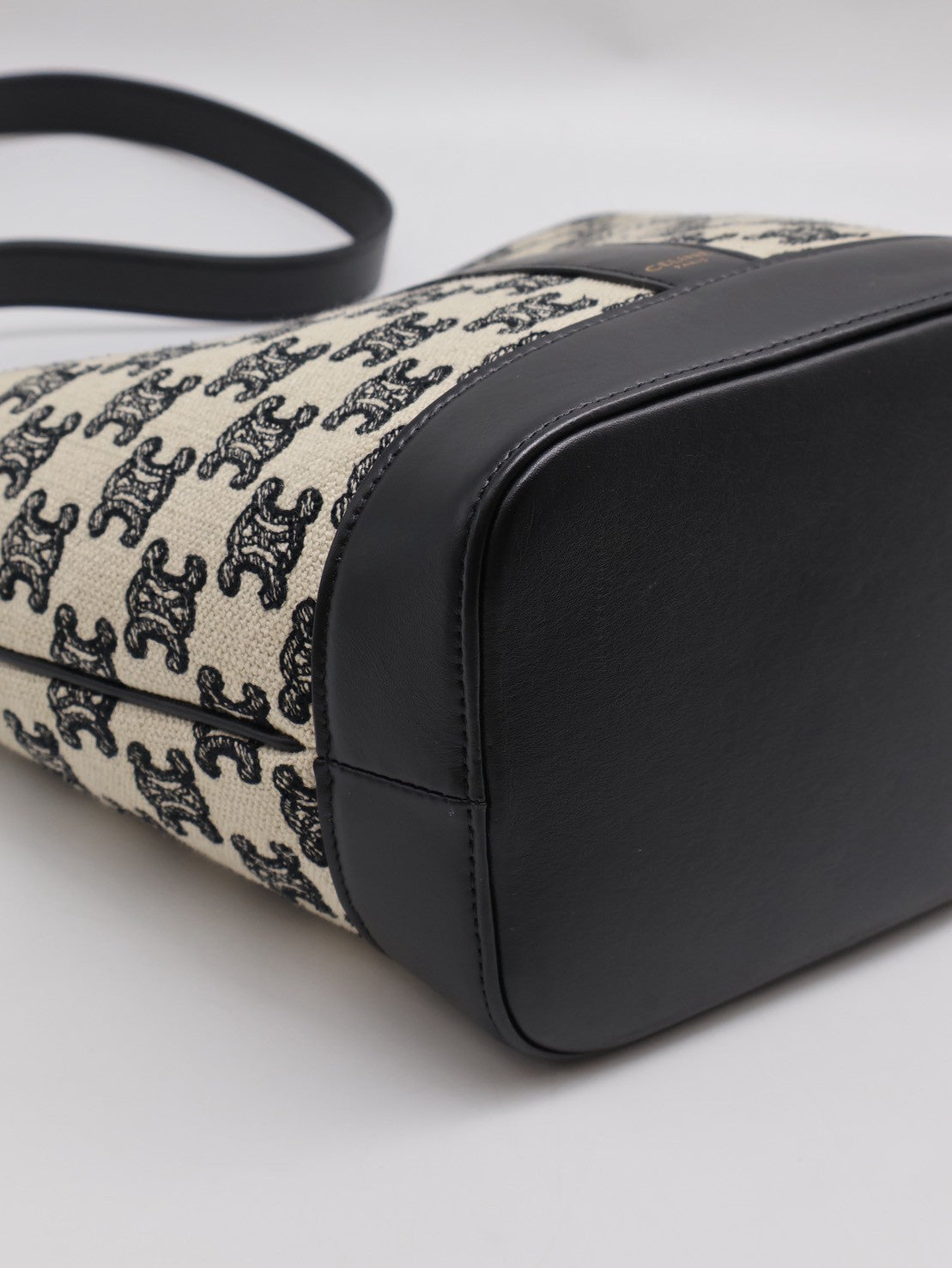 CELINE 刺繡凱旋帆布水桶包 - 小號黑