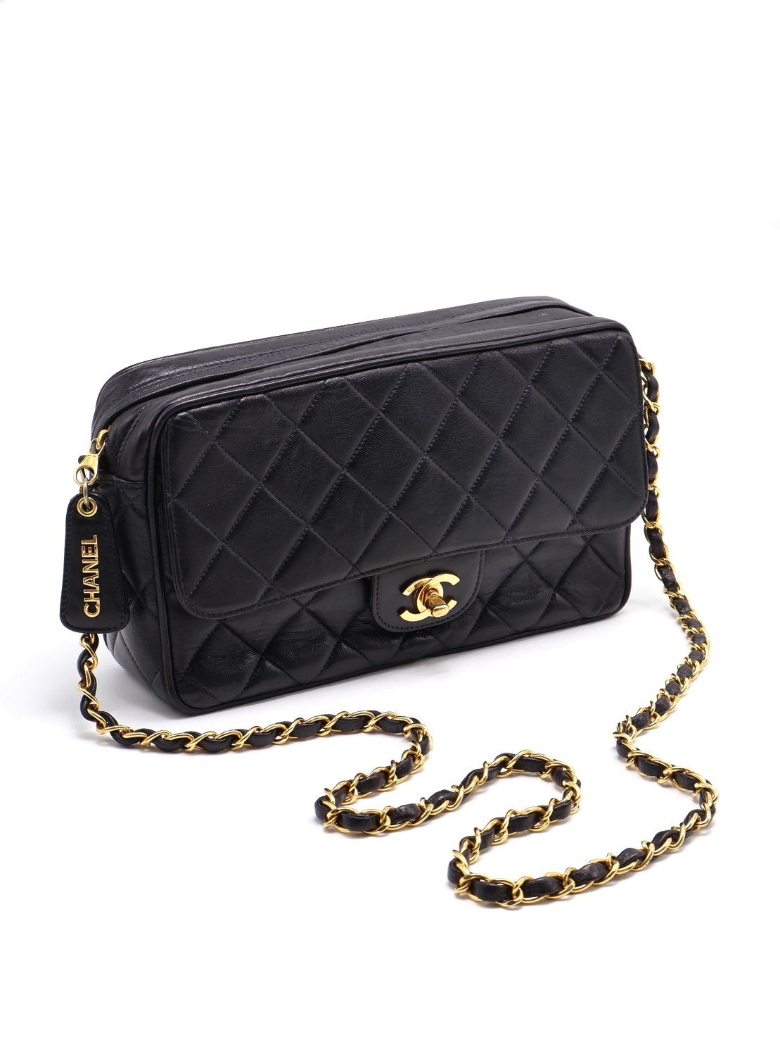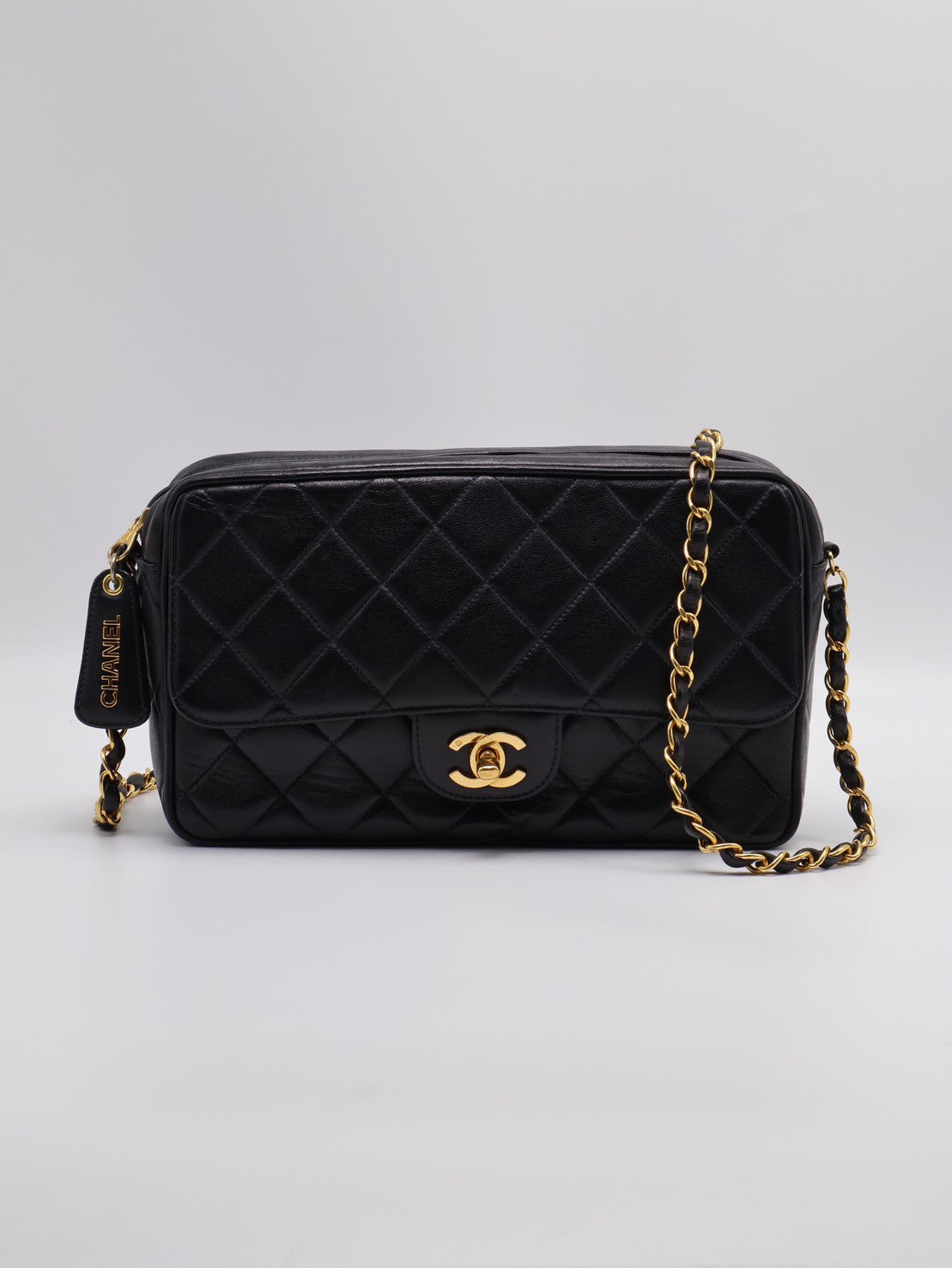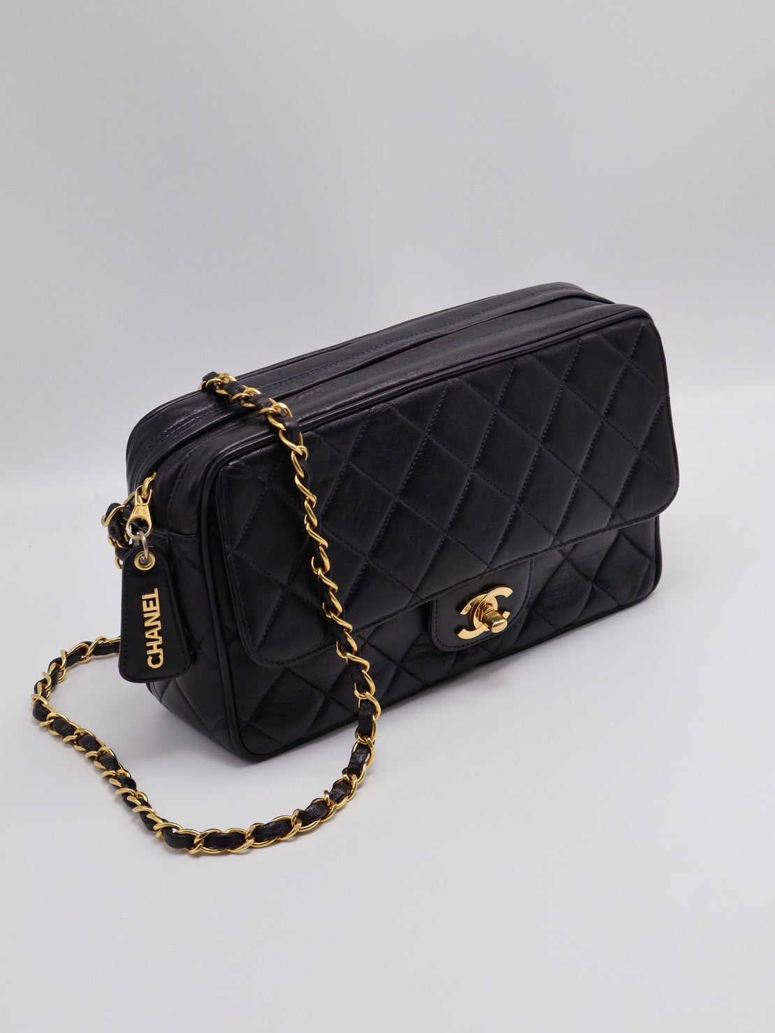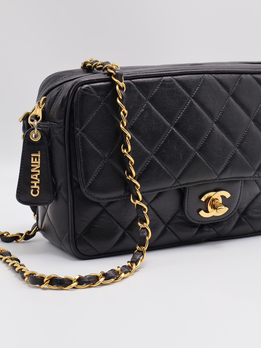 CHANEL 復古拉鍊相機包 - 黑金3開