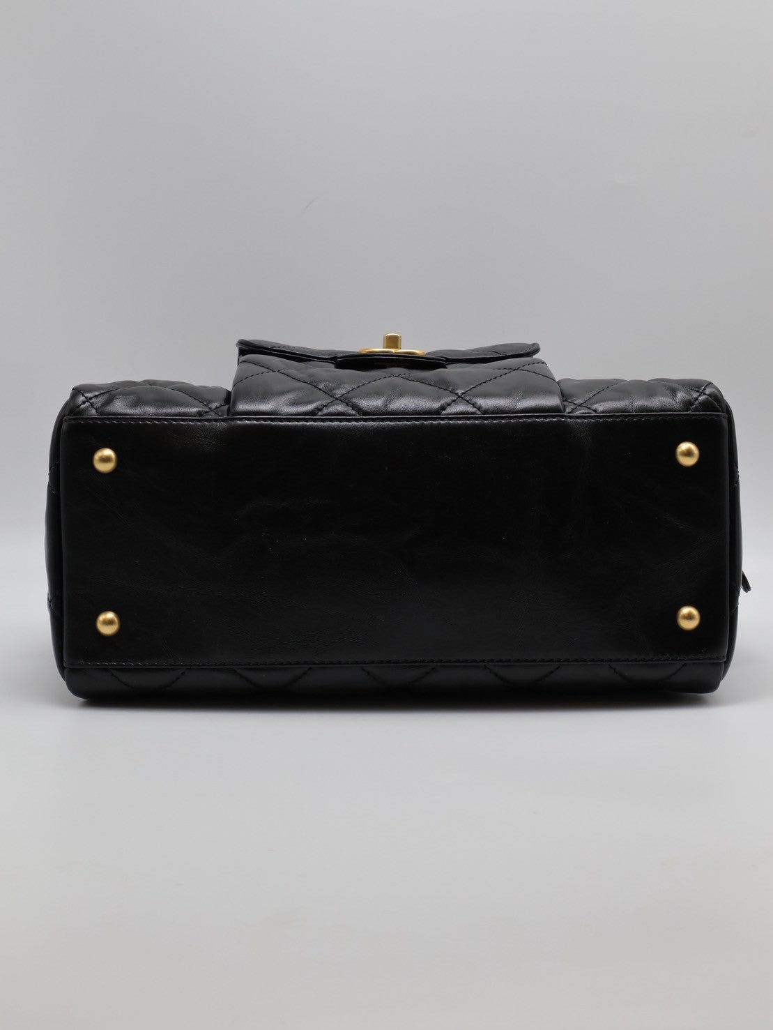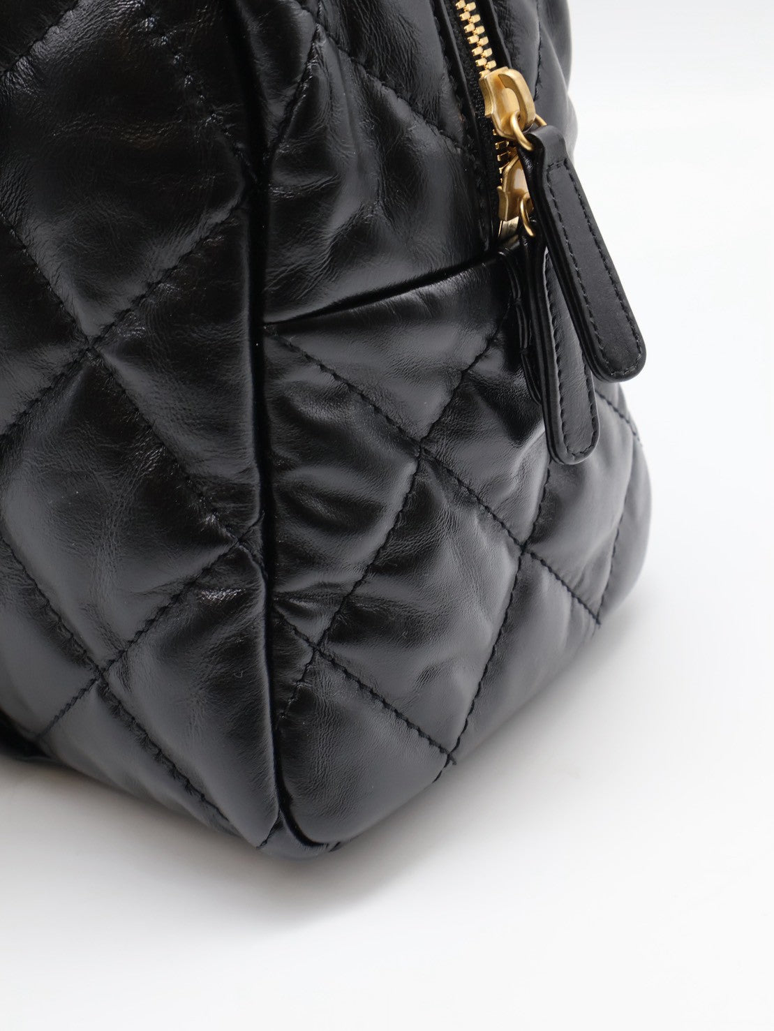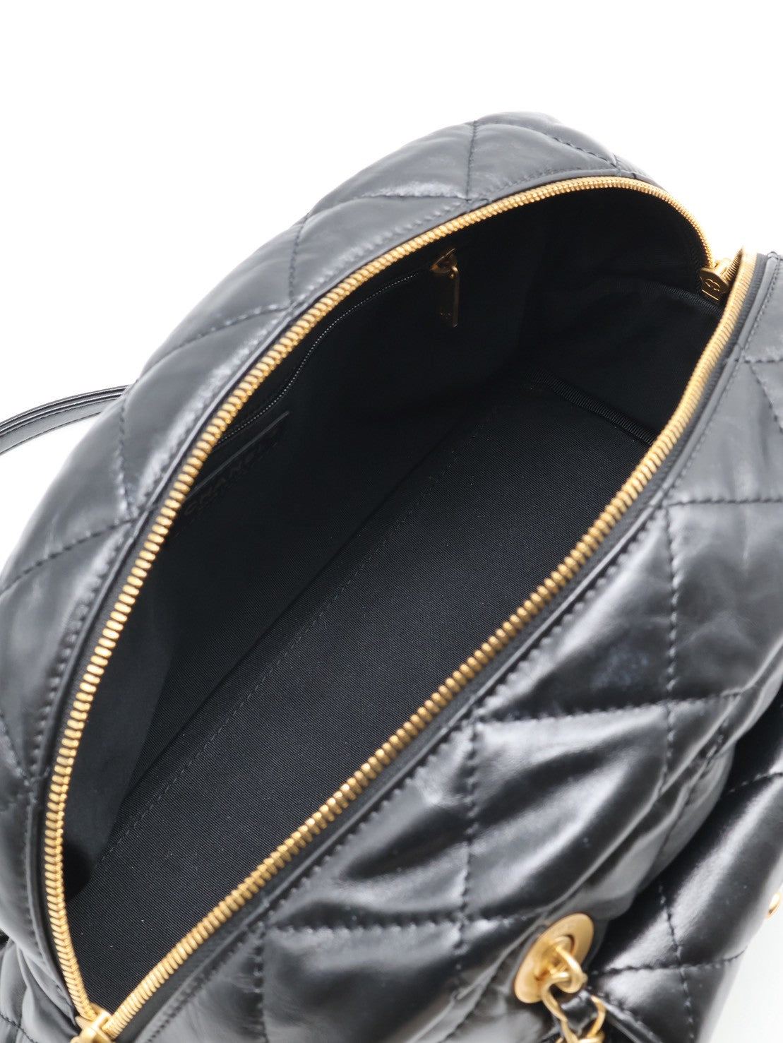 CHANEL 皺摺小牛皮保齡球包 - 大號黑金