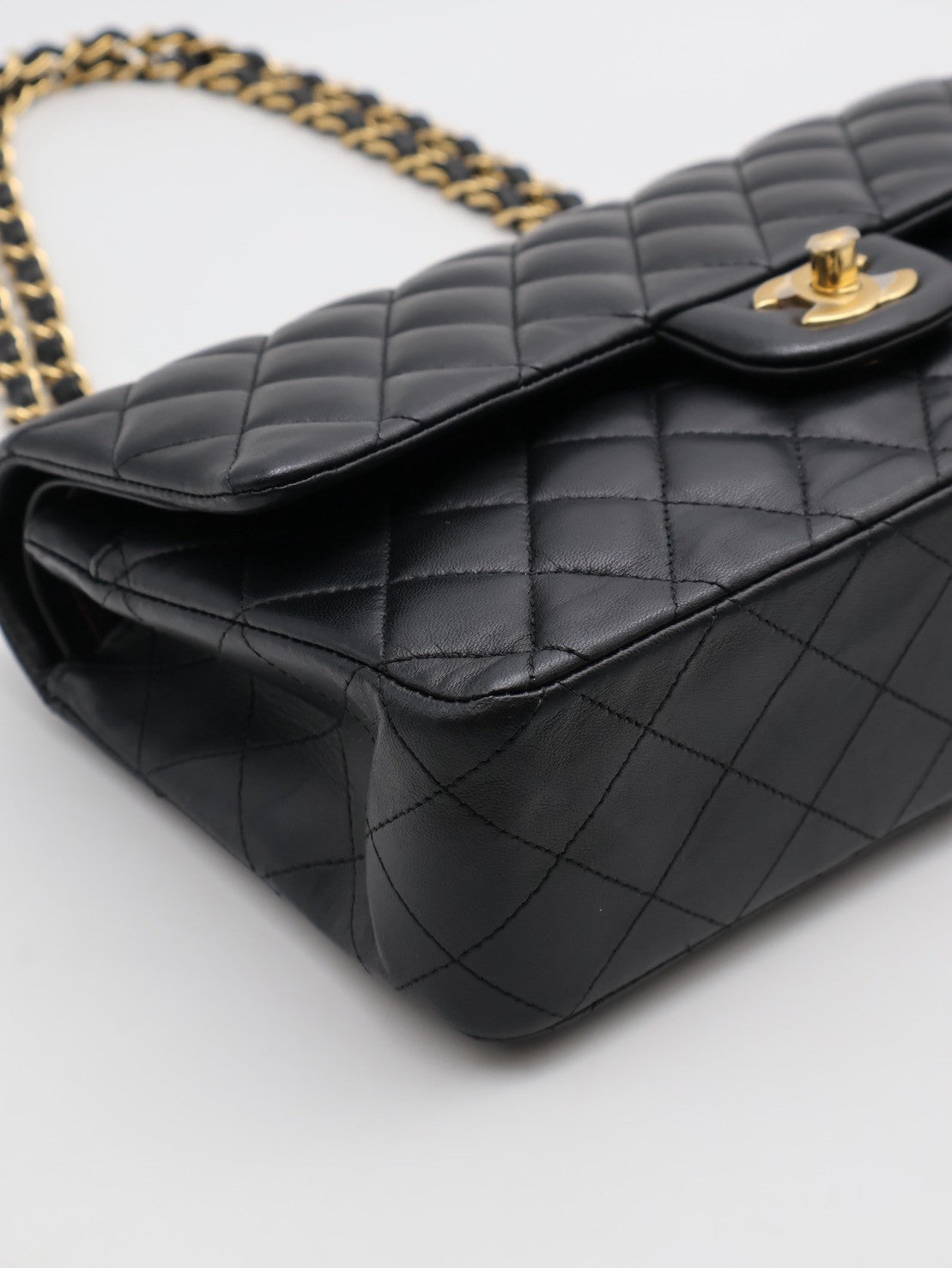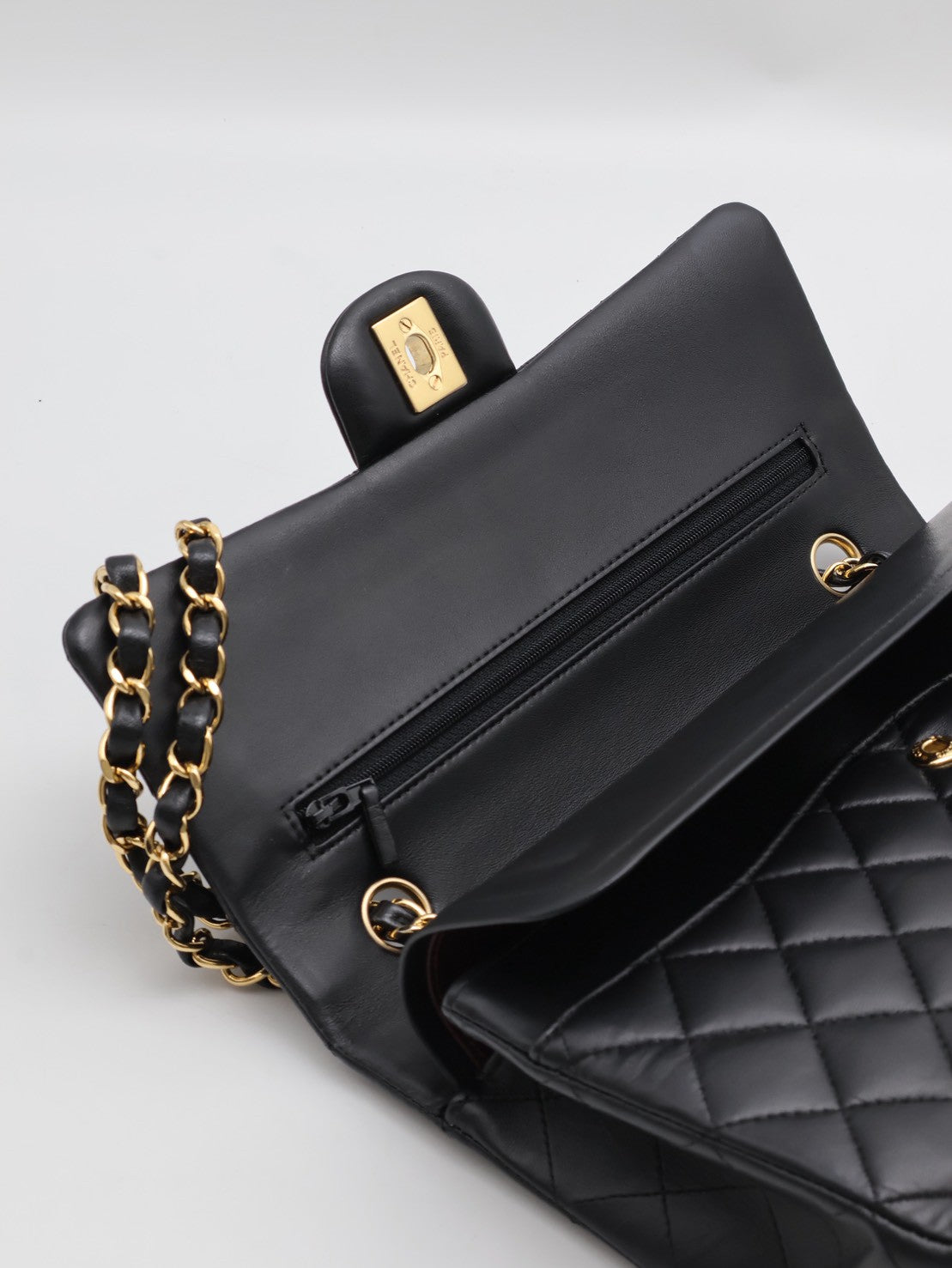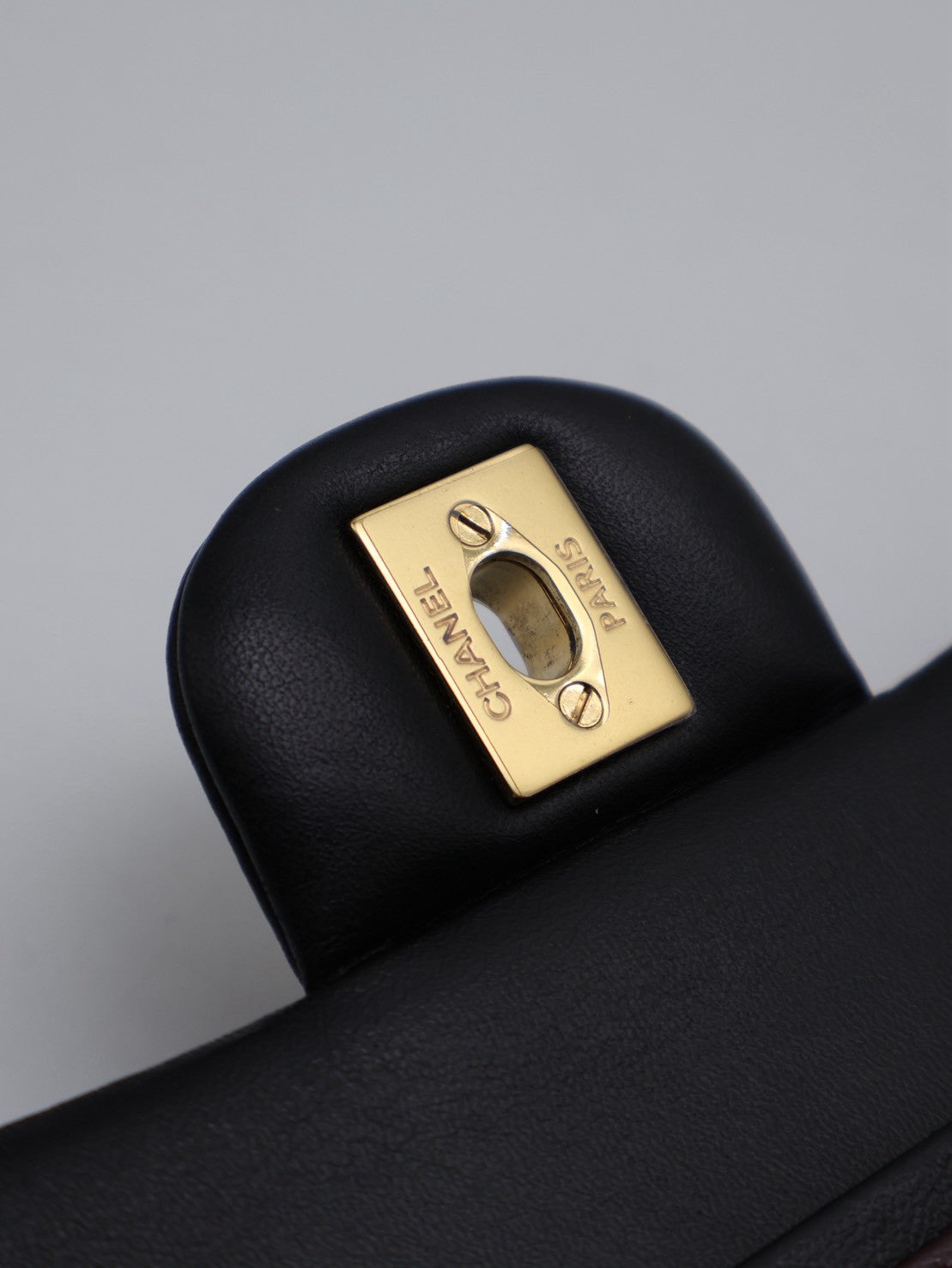 CHANEL 經典口蓋包 CF25 - 羊皮黑金27開