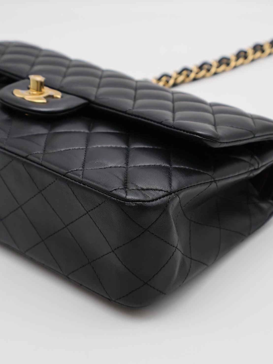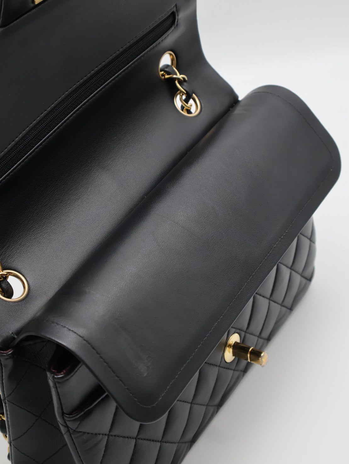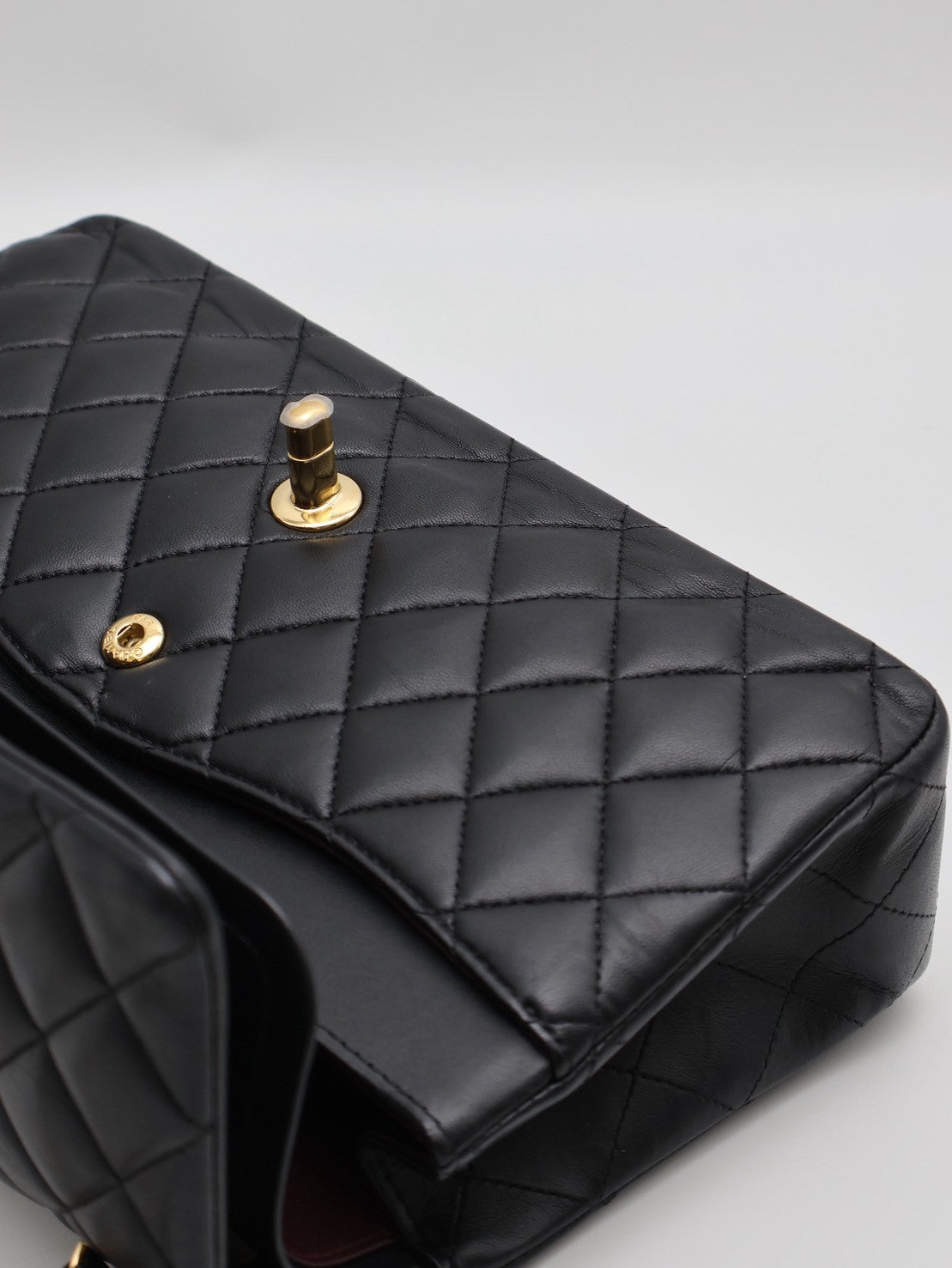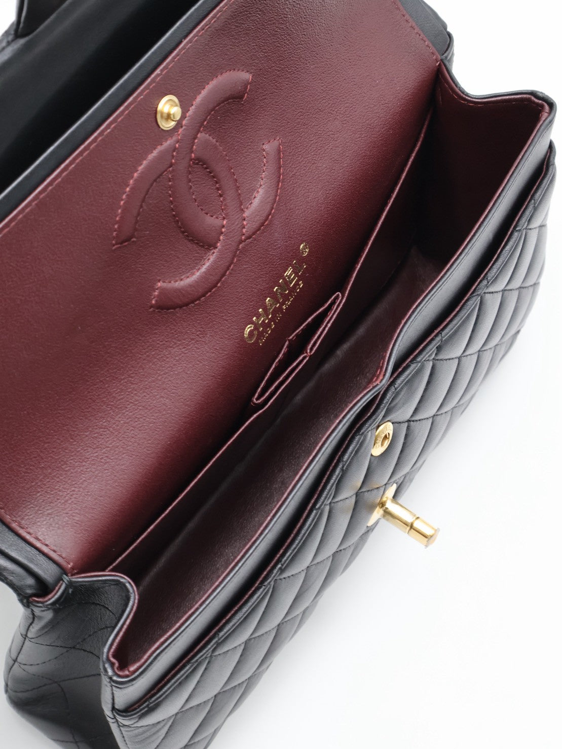CHANEL 經典口蓋包 CF25 - 羊皮黑金27開