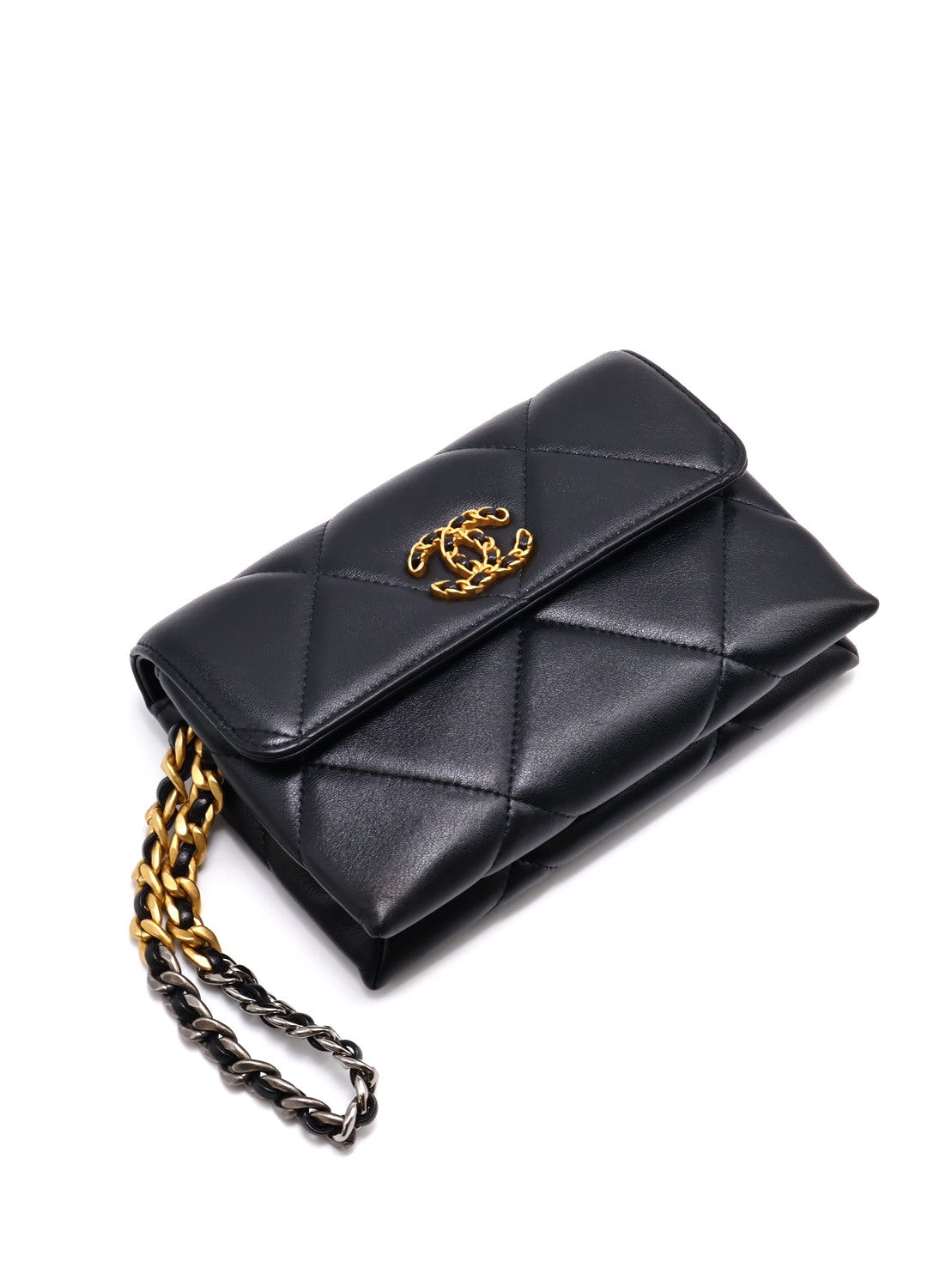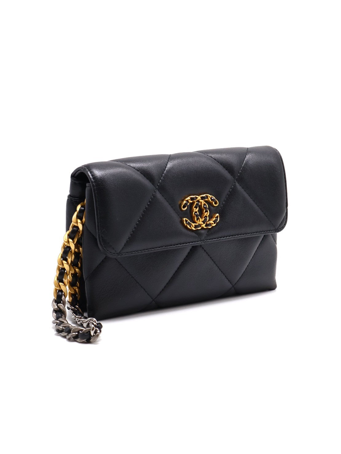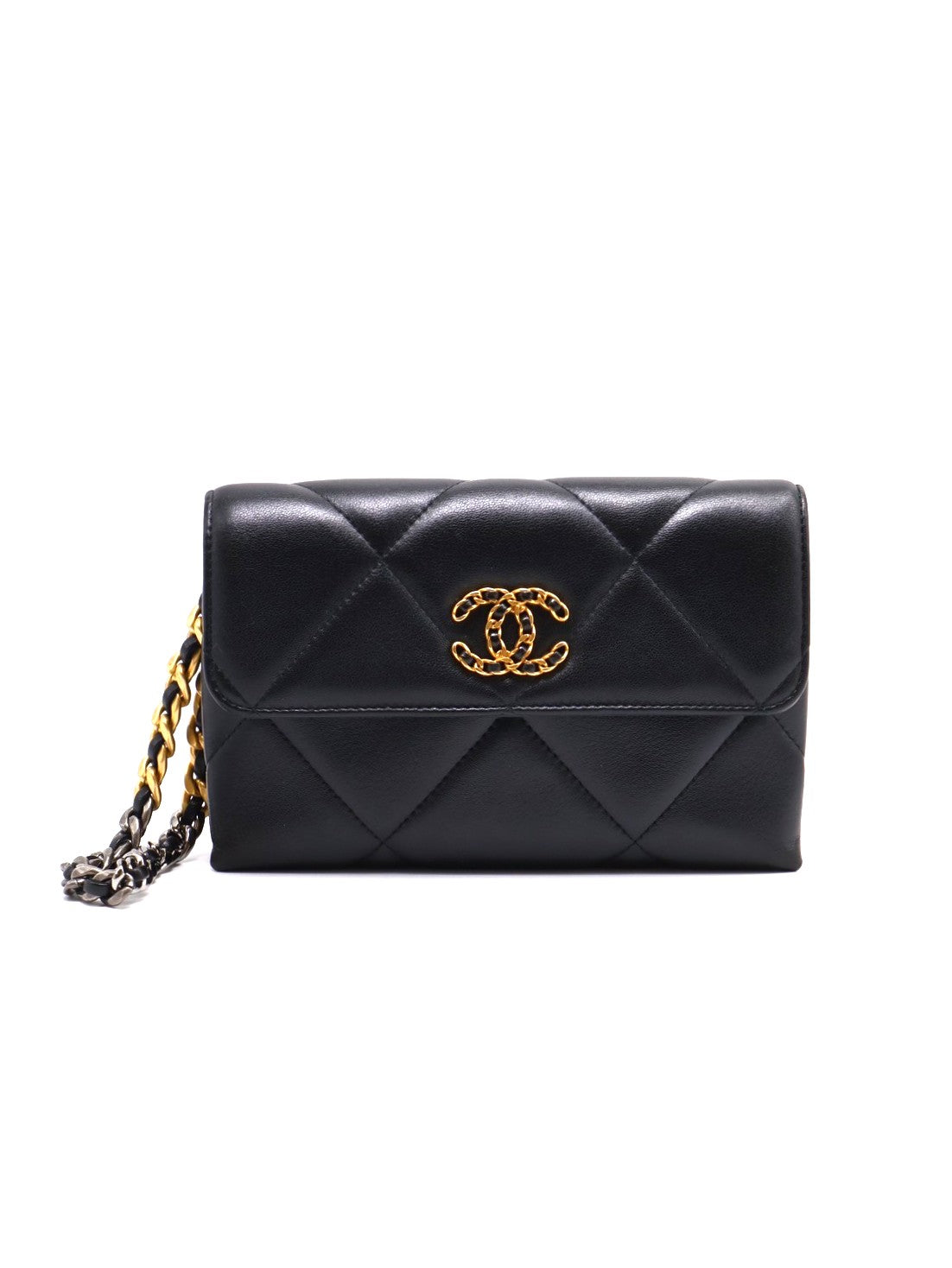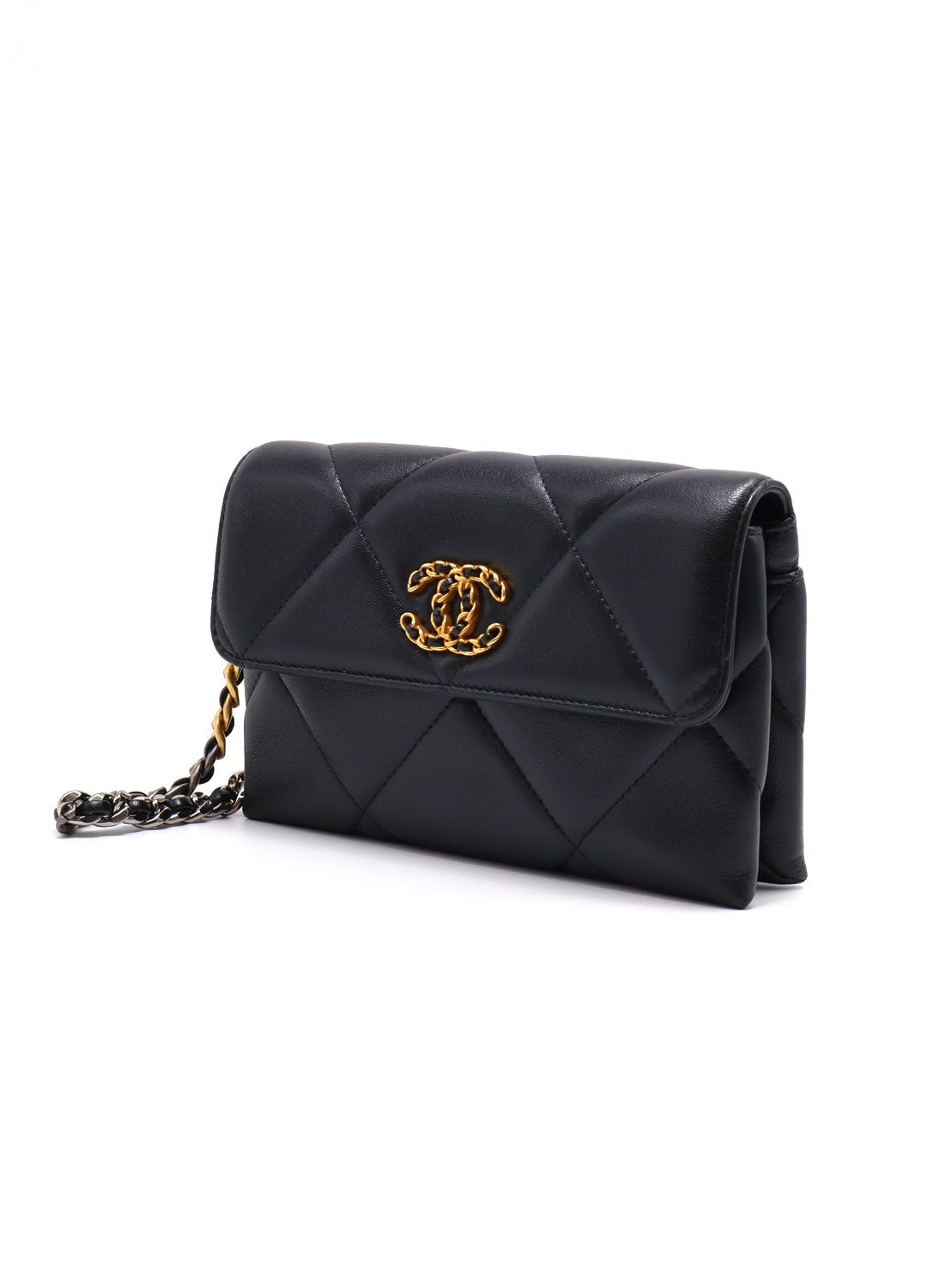 CHANEL 19 菱格紋小羊皮手拿包 - 黑金31開