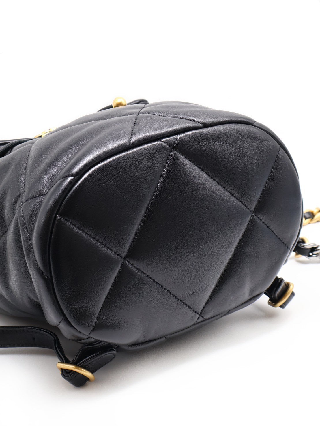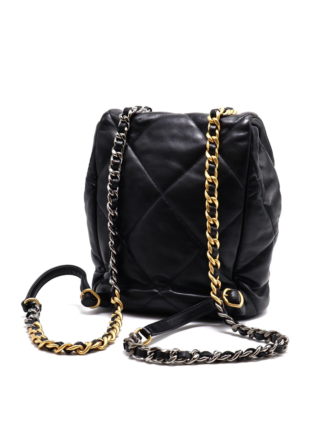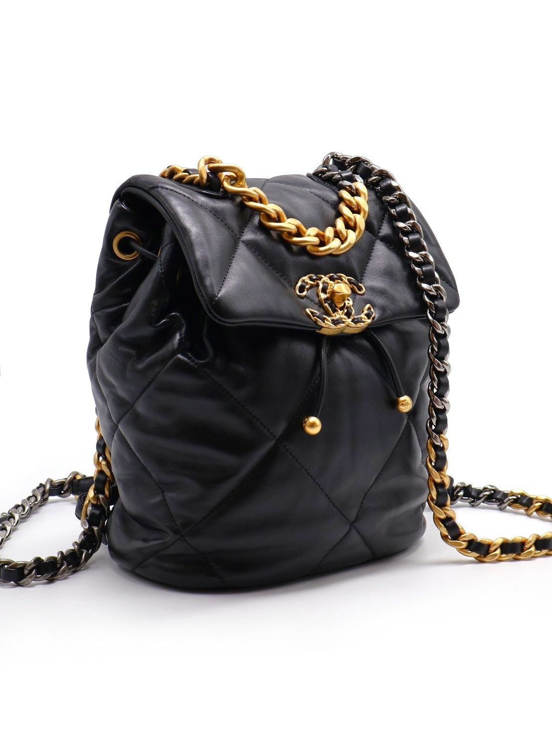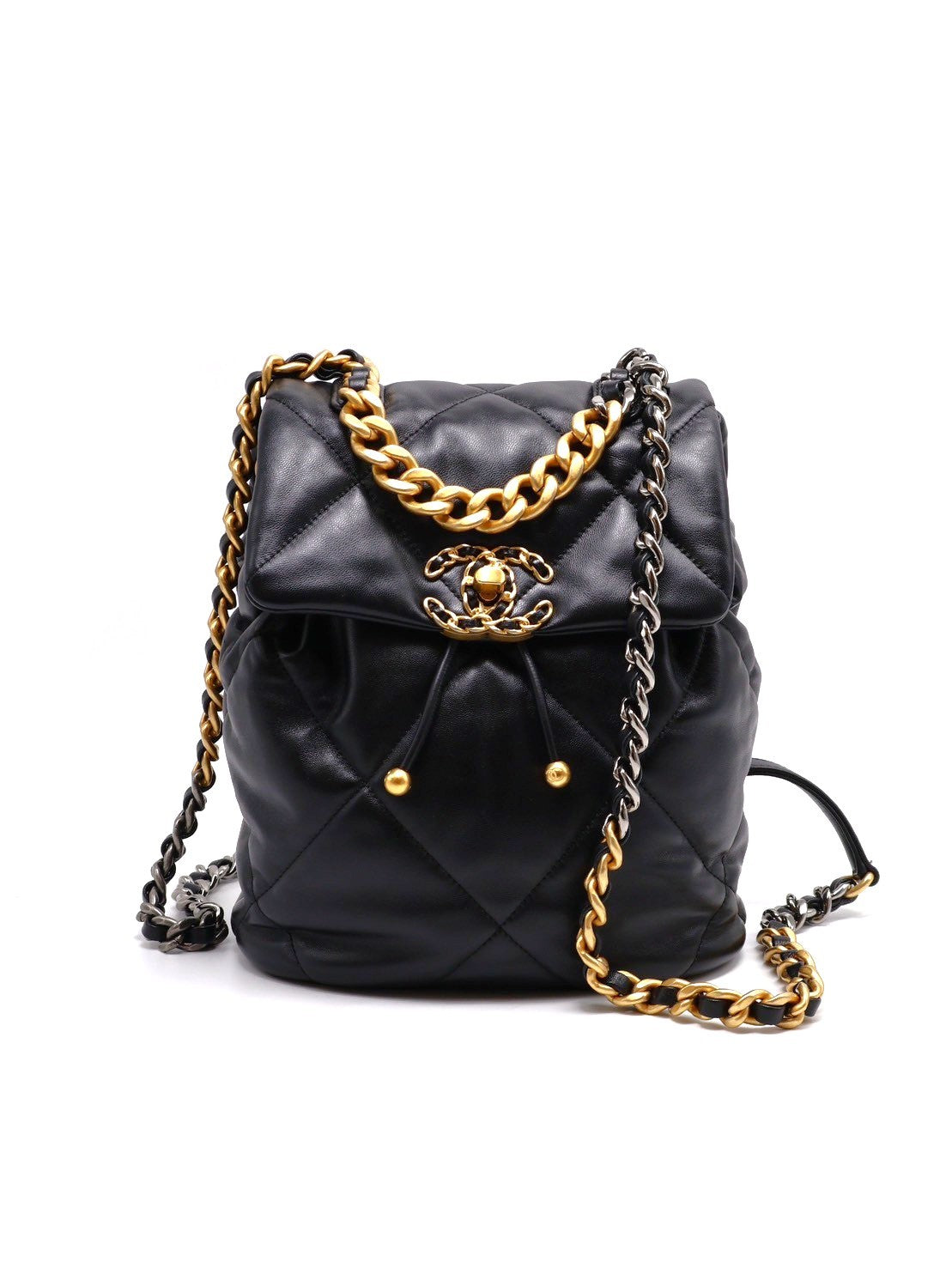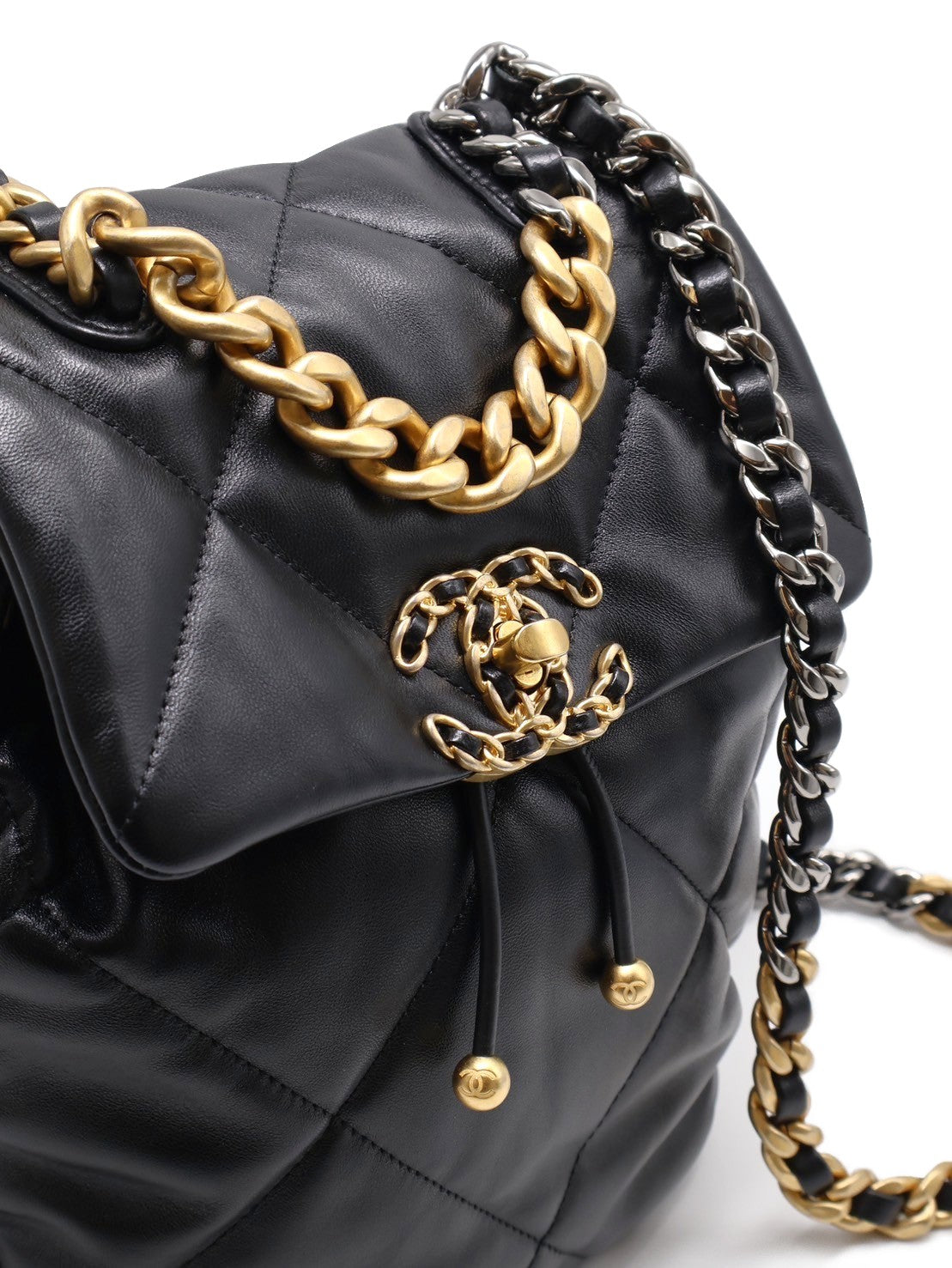 CHANEL 19 菱格紋羊皮後背包 - 黑金