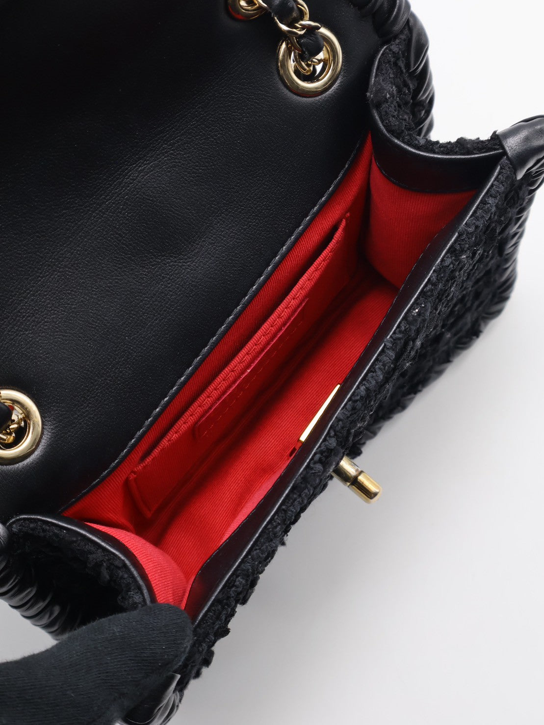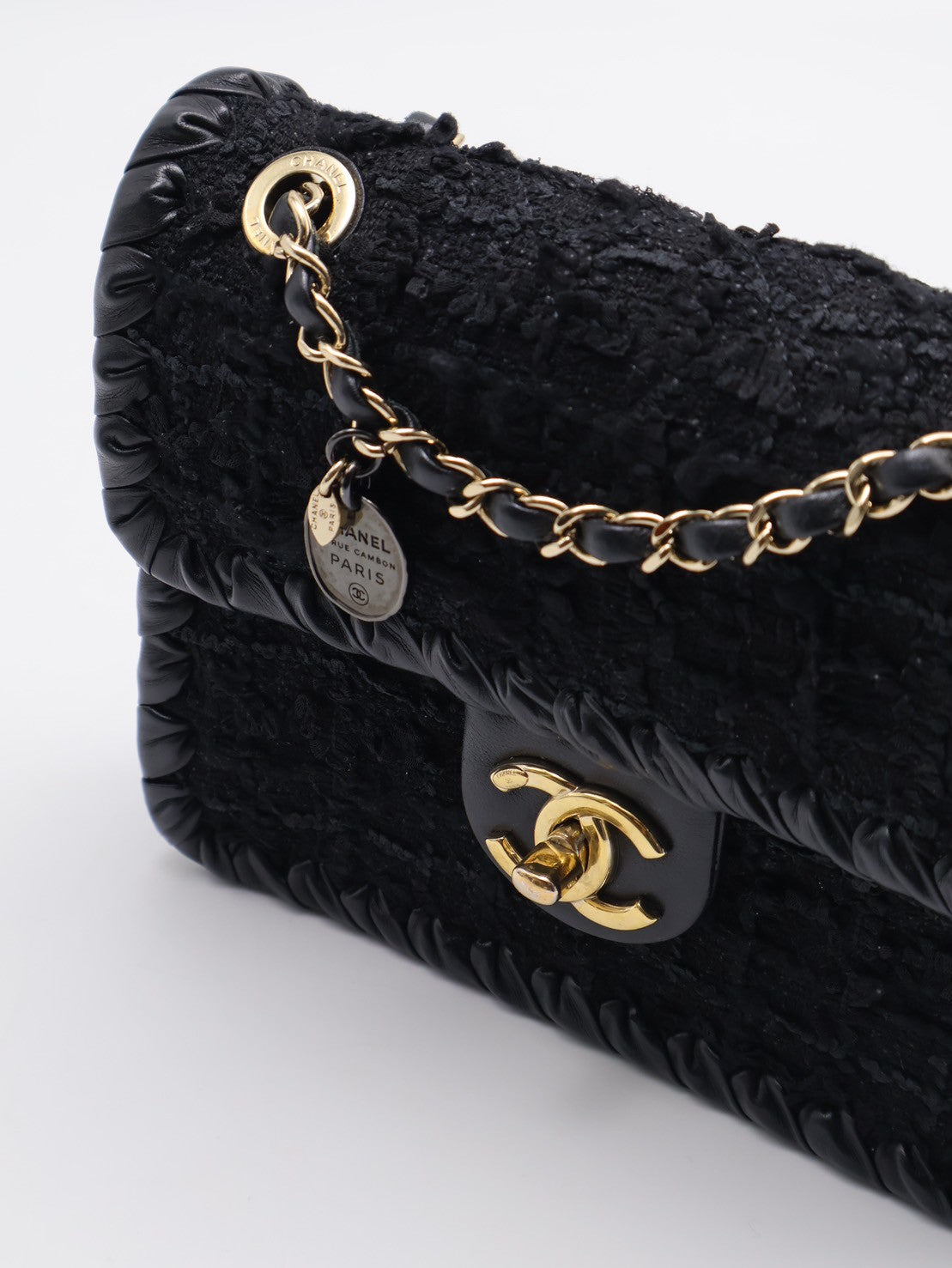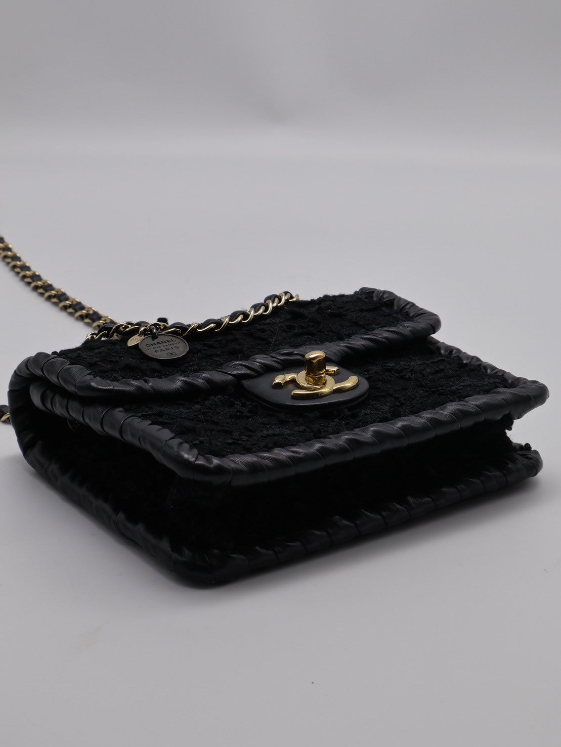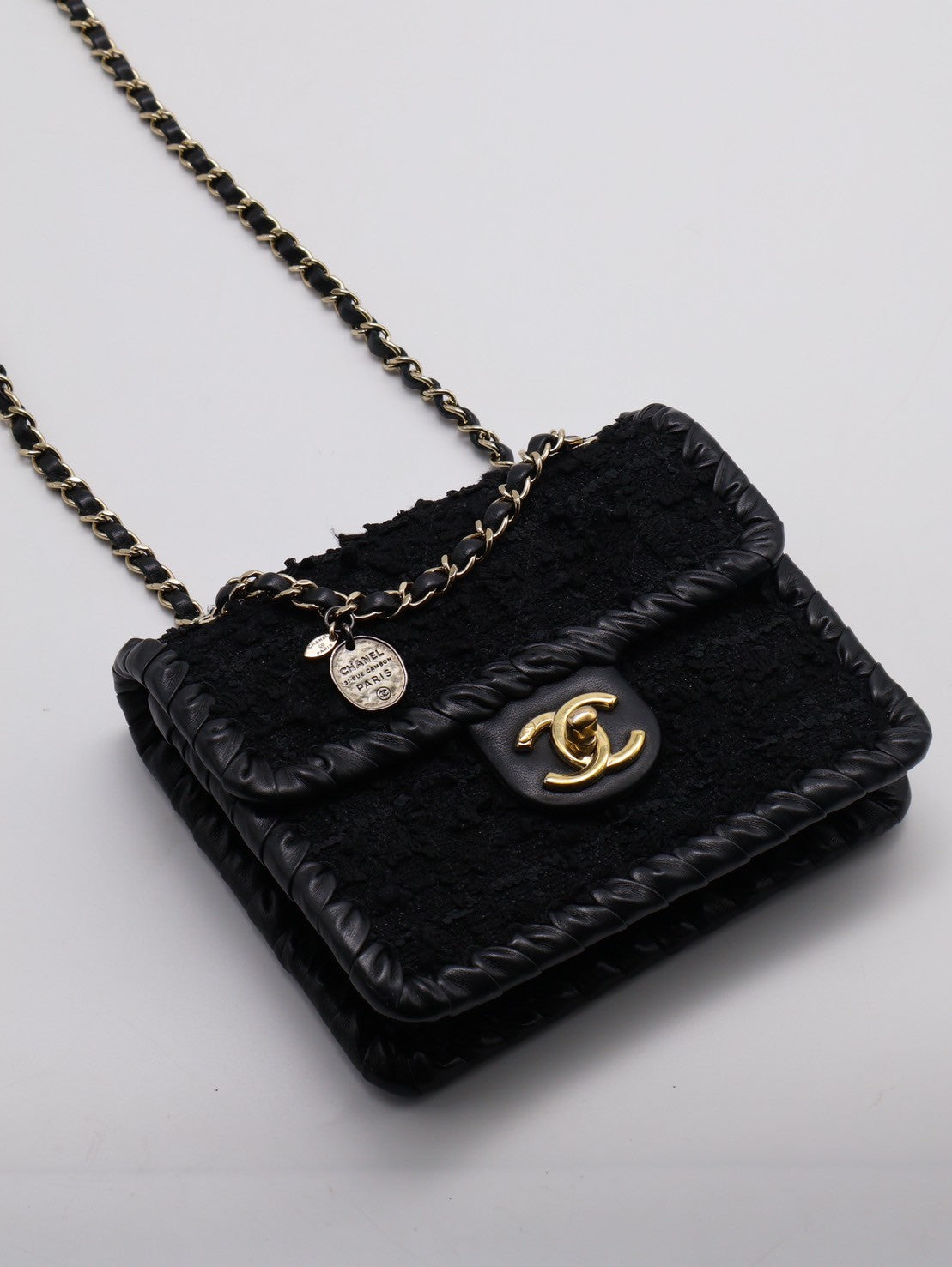 CHANEL 22C滾邊粗毛呢豆腐包 - 小號黑金