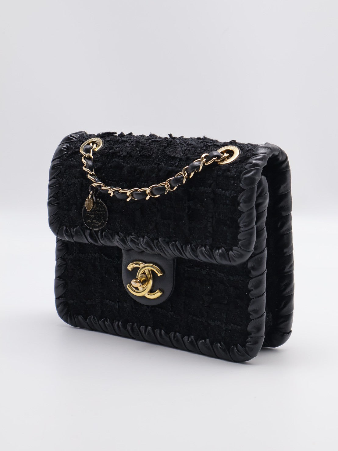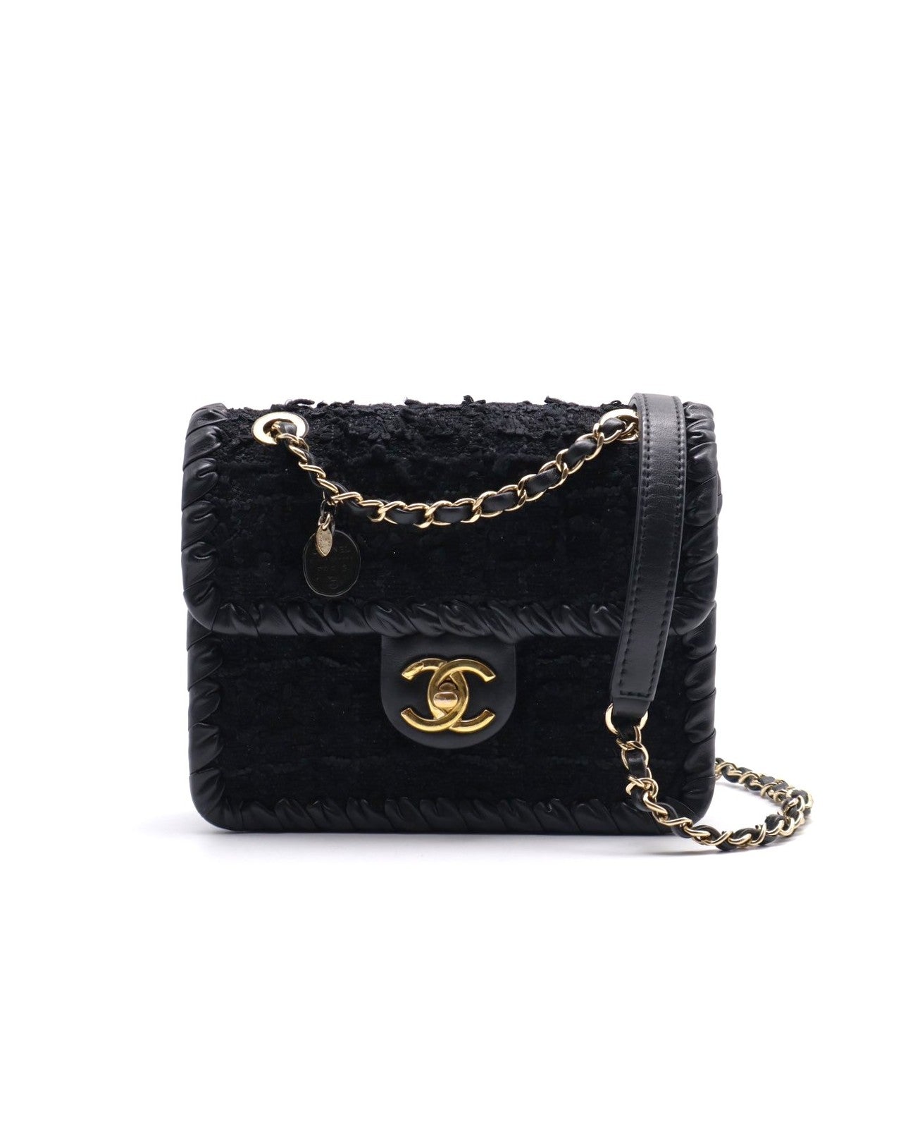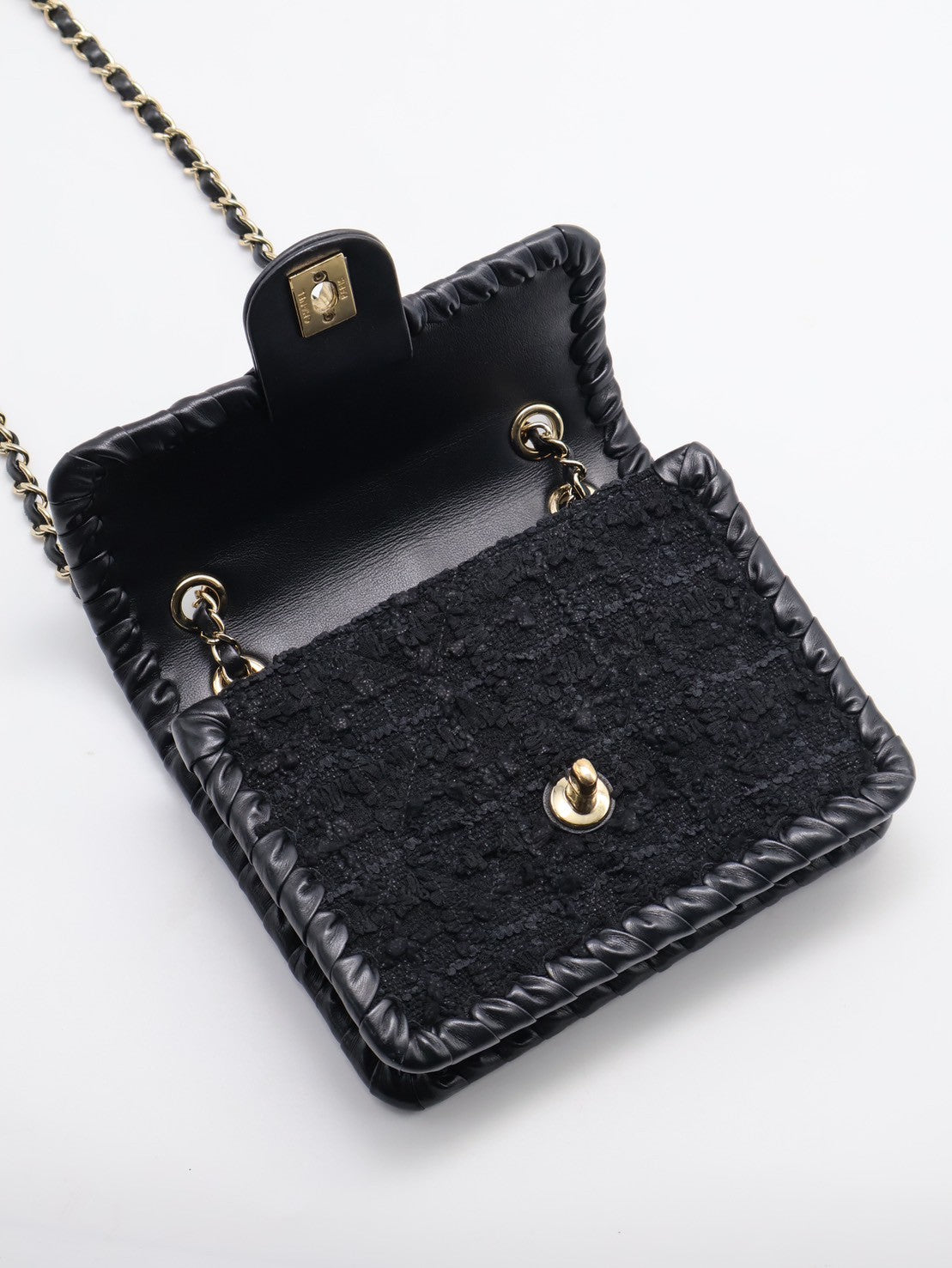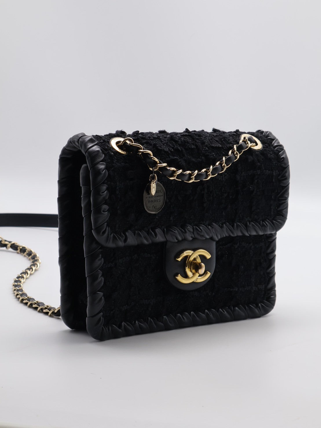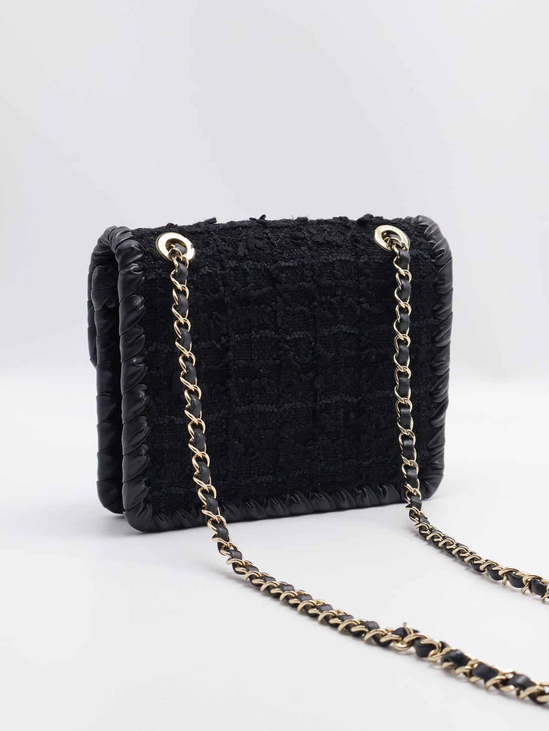 CHANEL 22C滾邊粗毛呢豆腐包 - 小號黑金