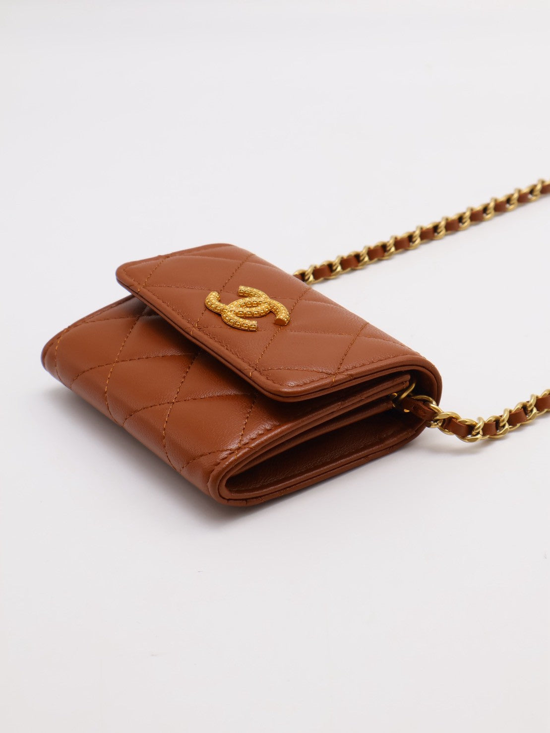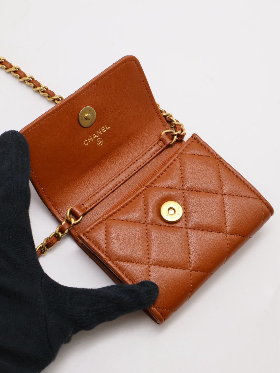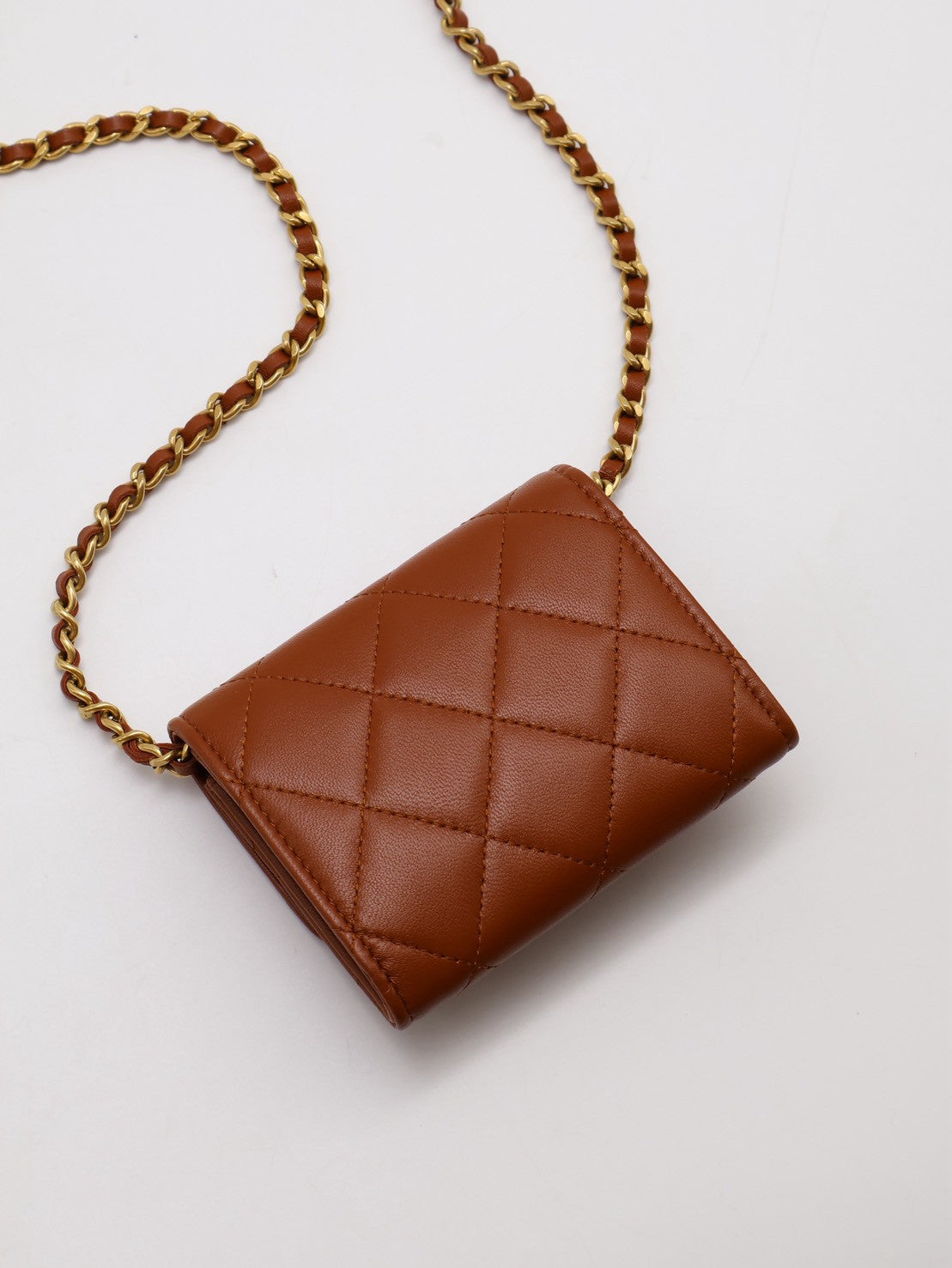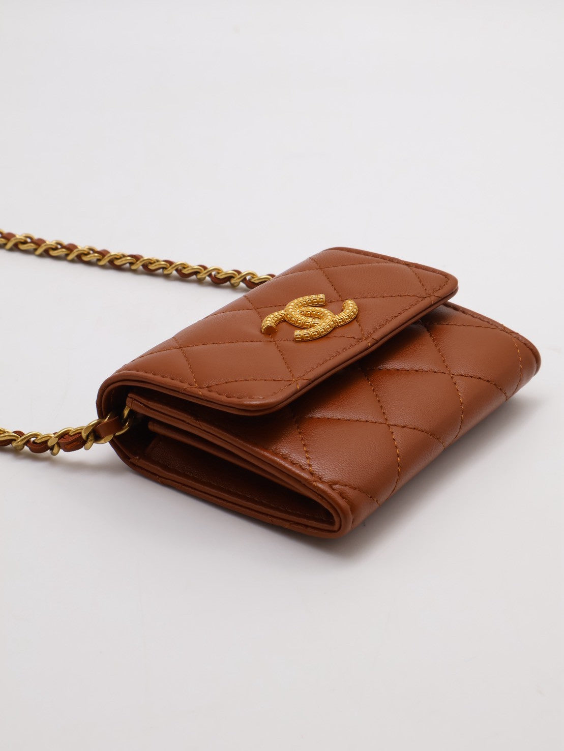 CHANEL 23A雙層小鍊包 - 焦糖棕金