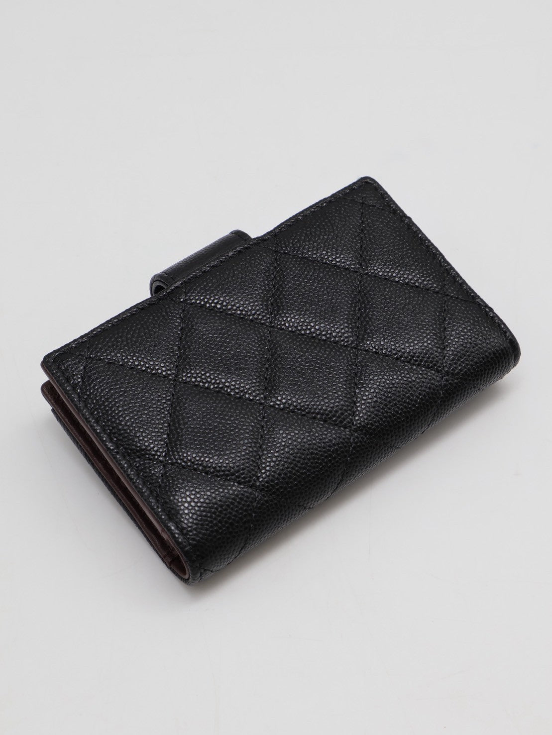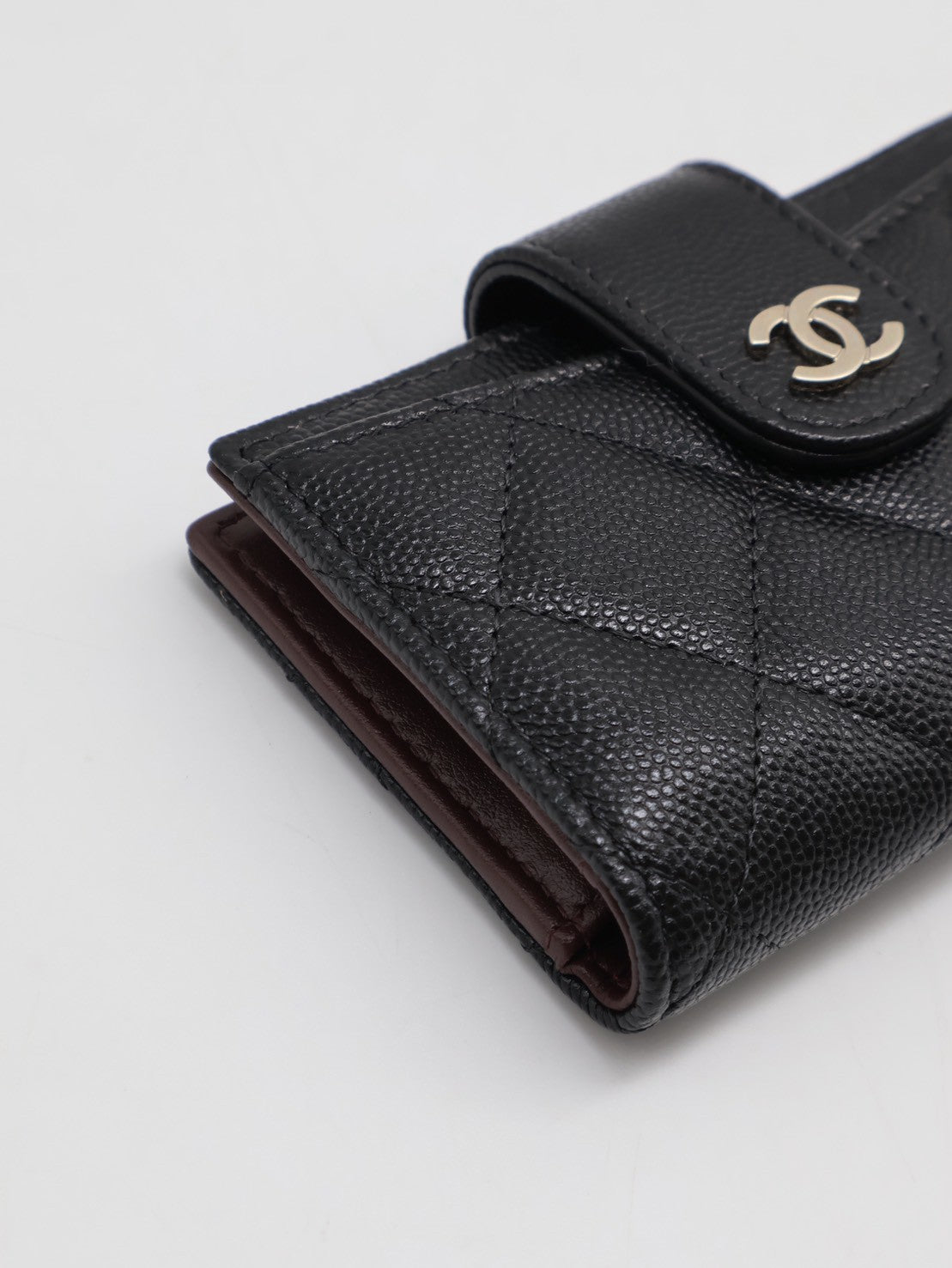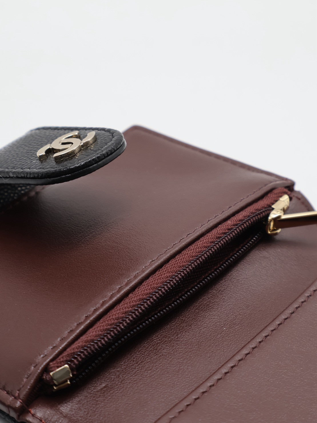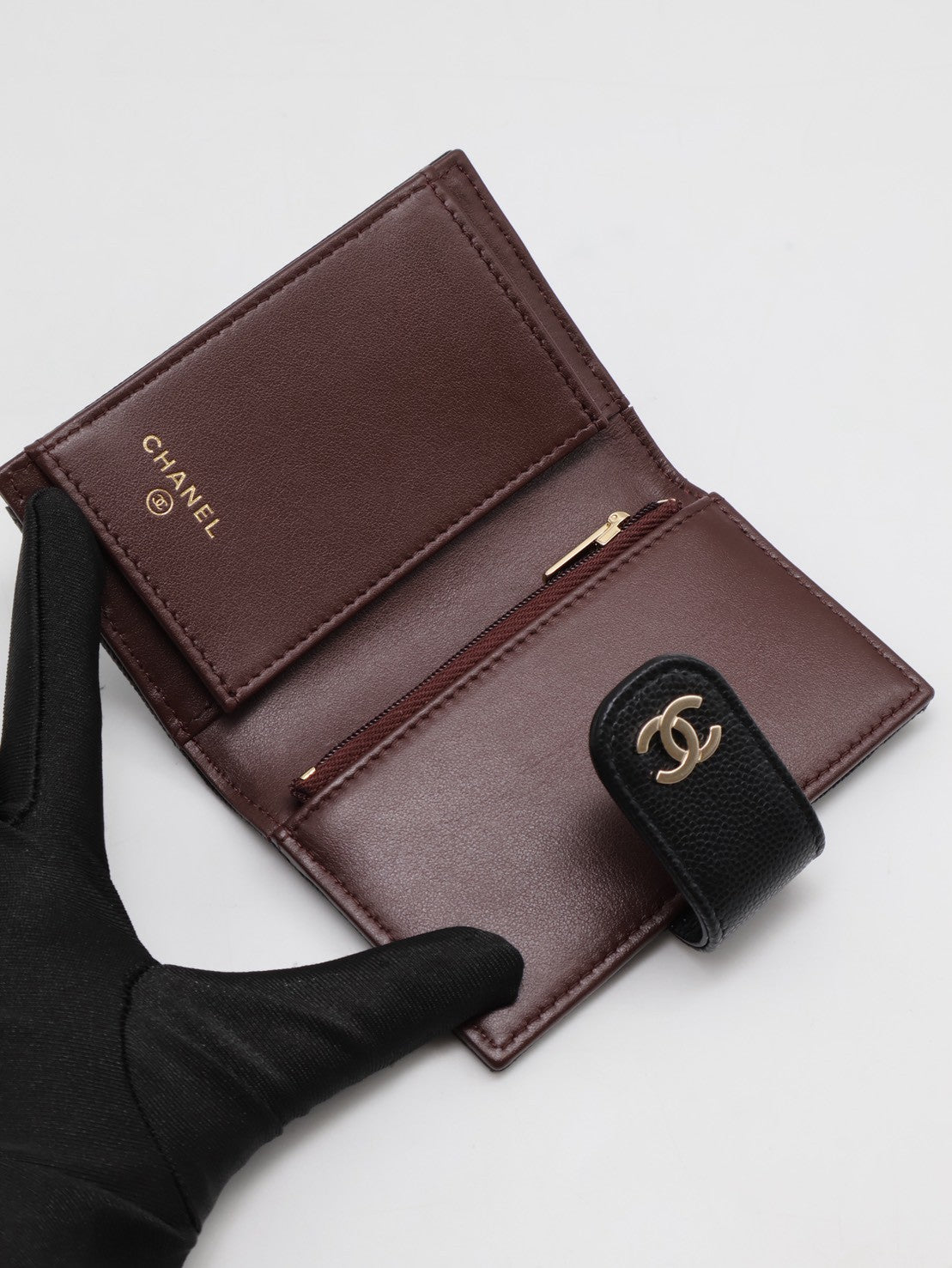 CHANEL 23B粒面牛皮雙折卡包 - 黑金30開