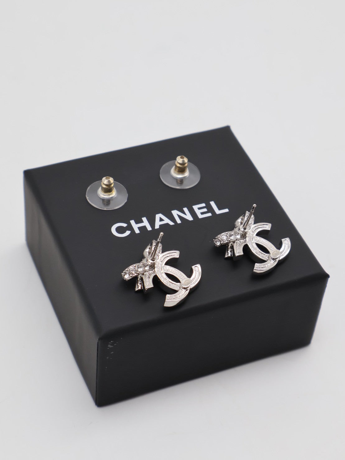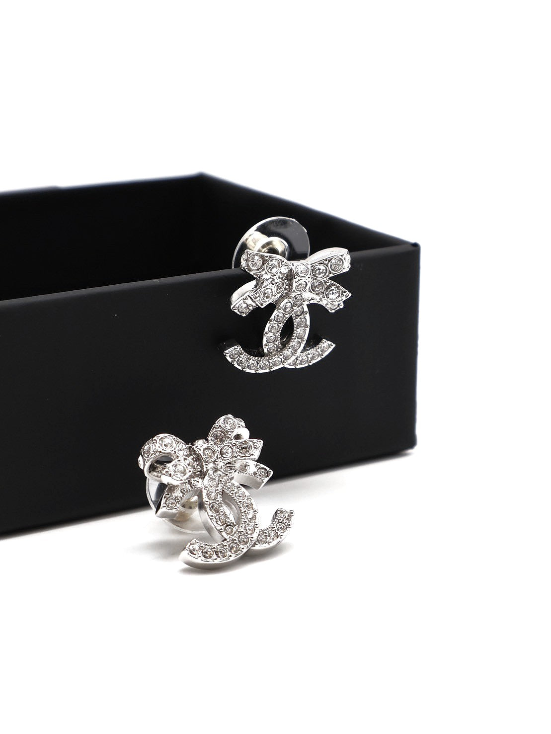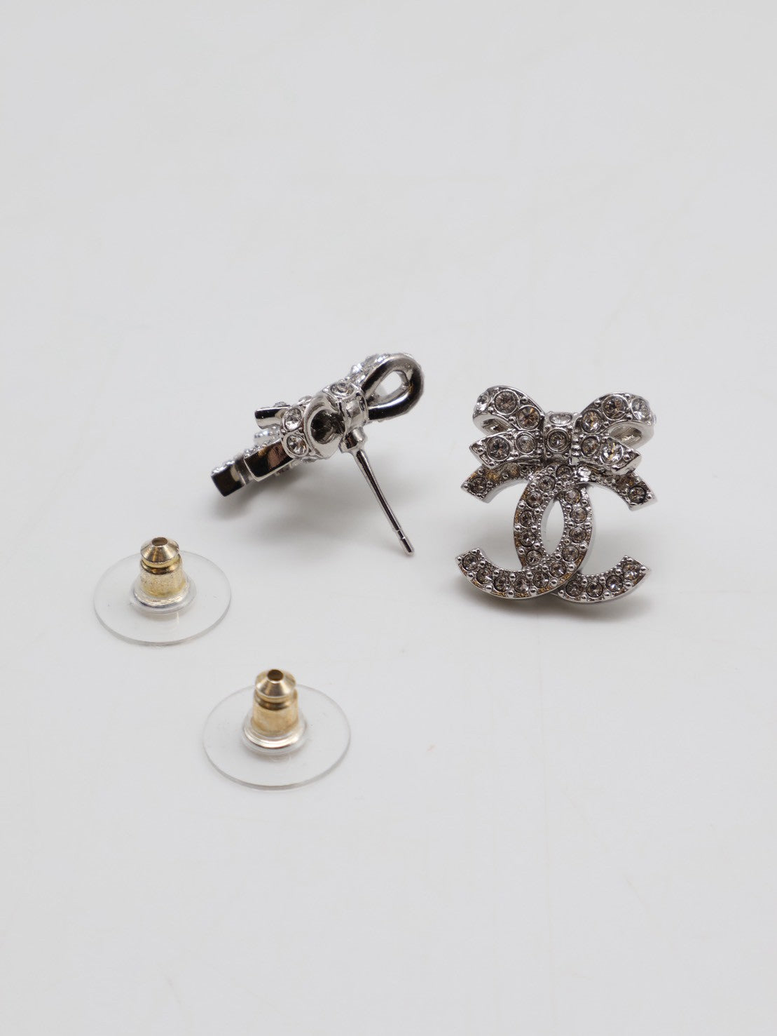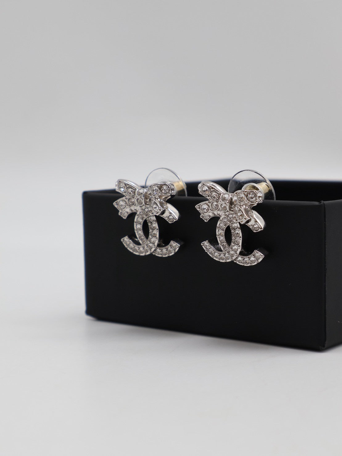 CHANEL 23S蝴蝶結雙C水鑽耳環