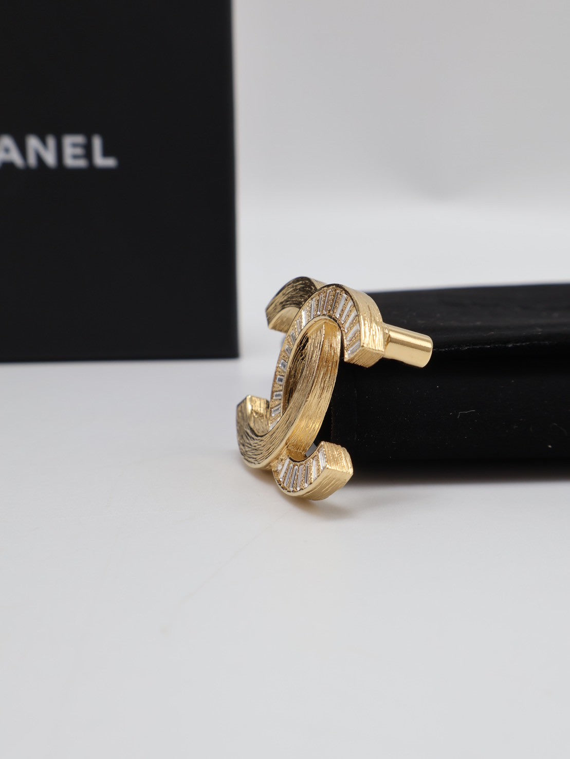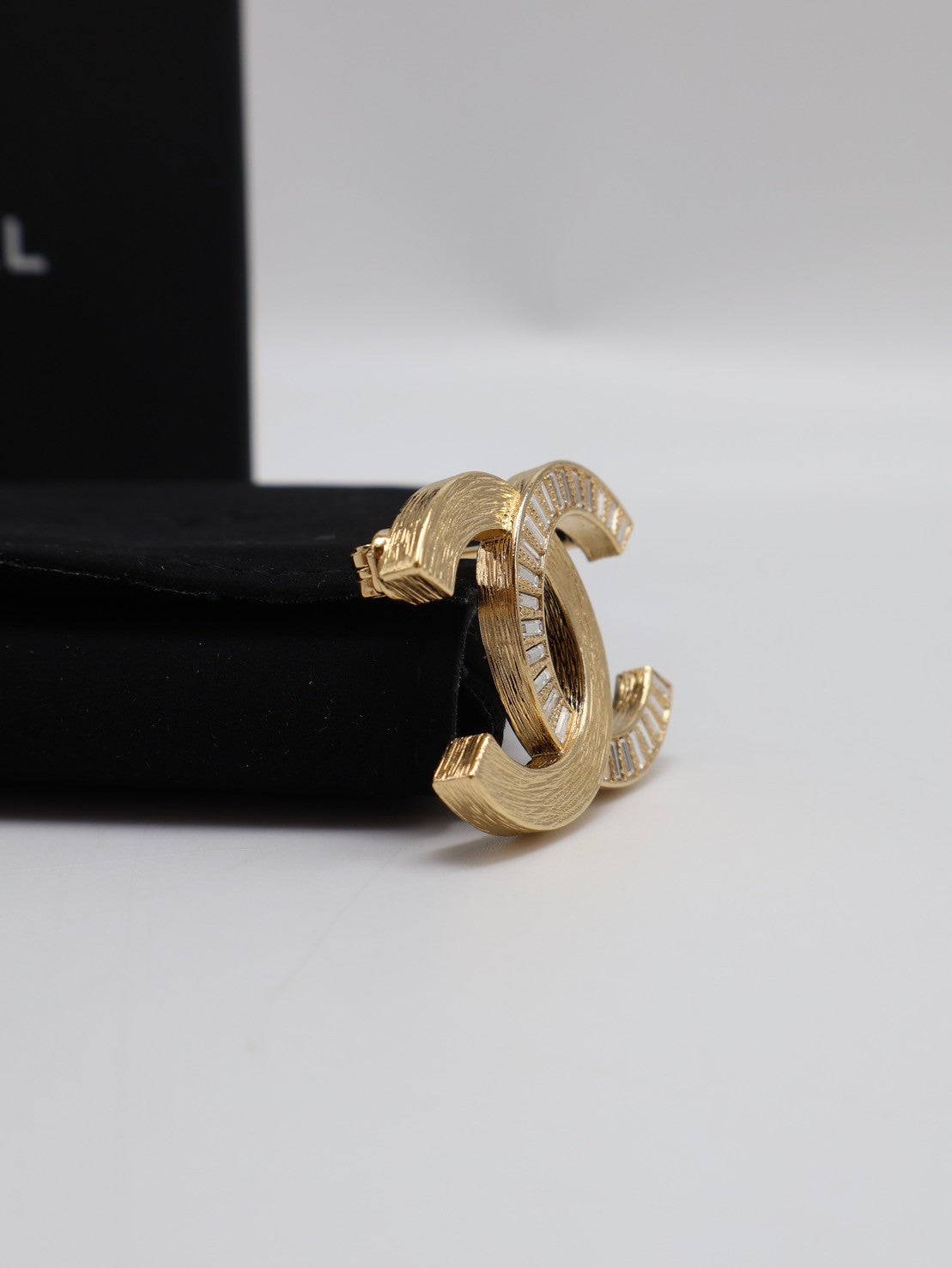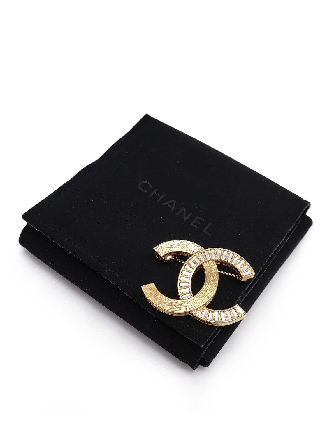 CHANEL 24S拉絲水晶雙C胸針