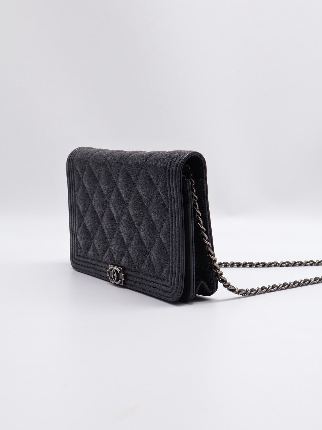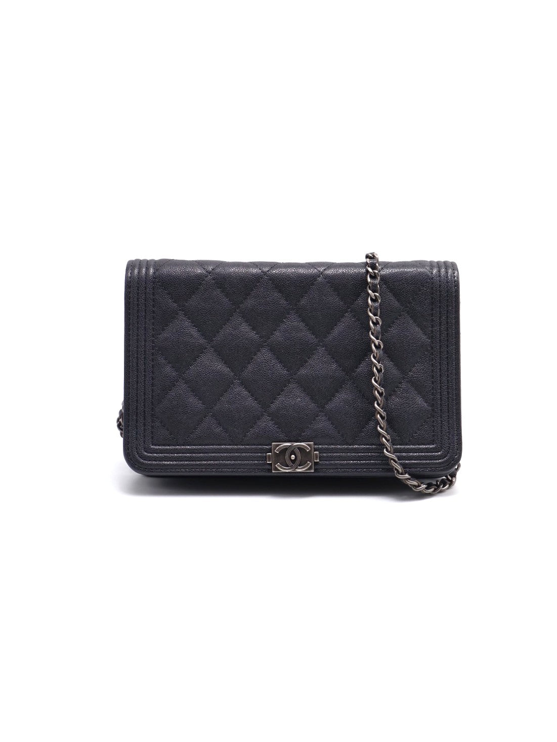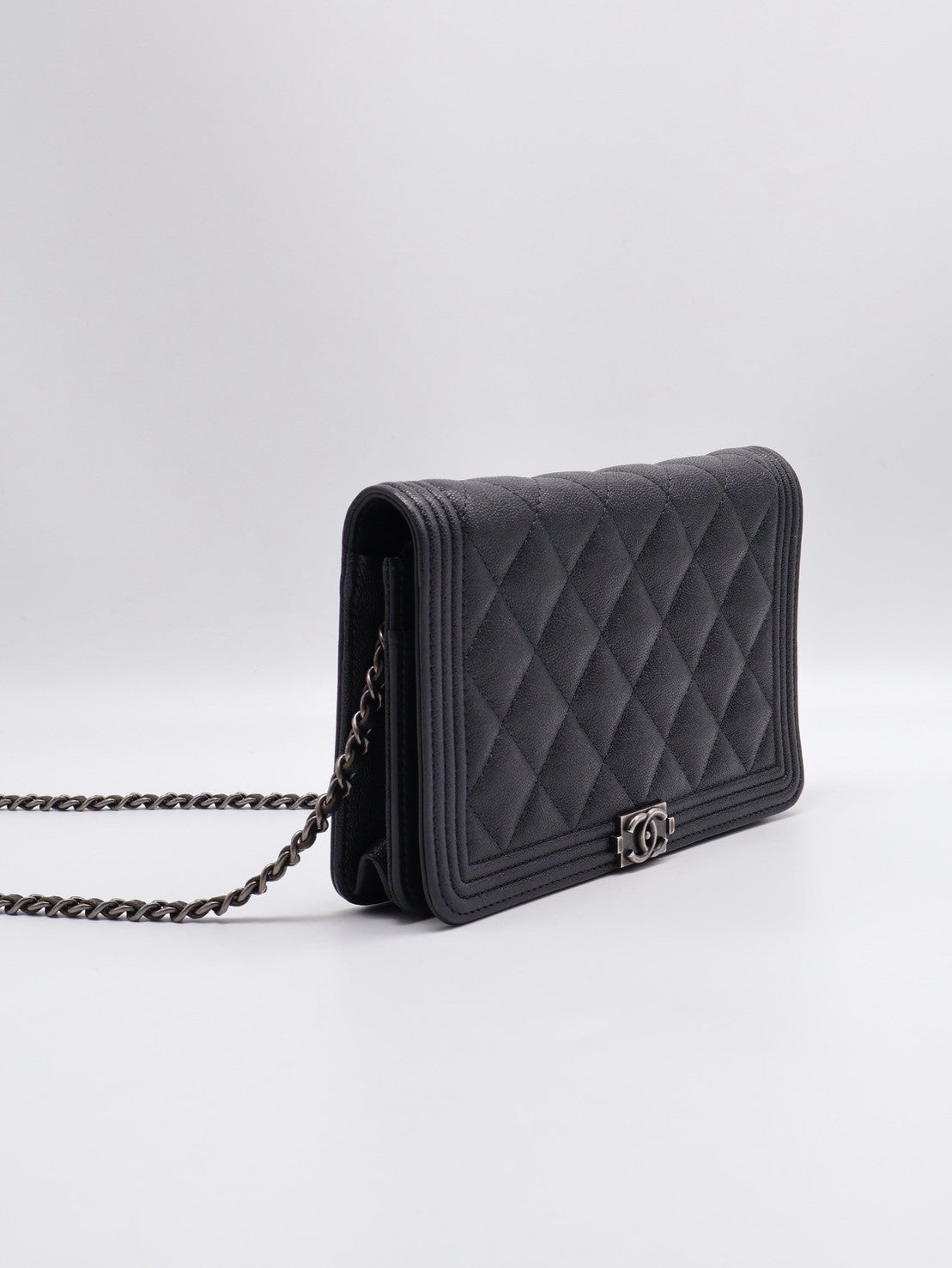 CHANEL Boy 粒面牛皮WOC - 炭灰銀26開