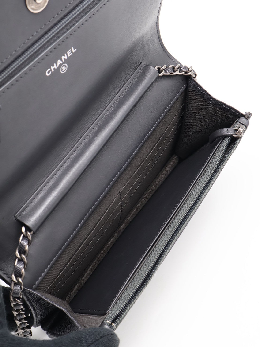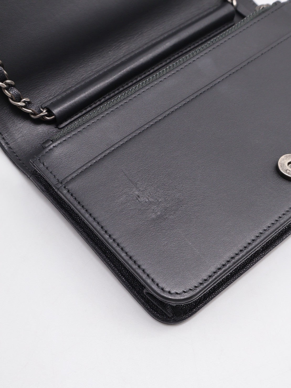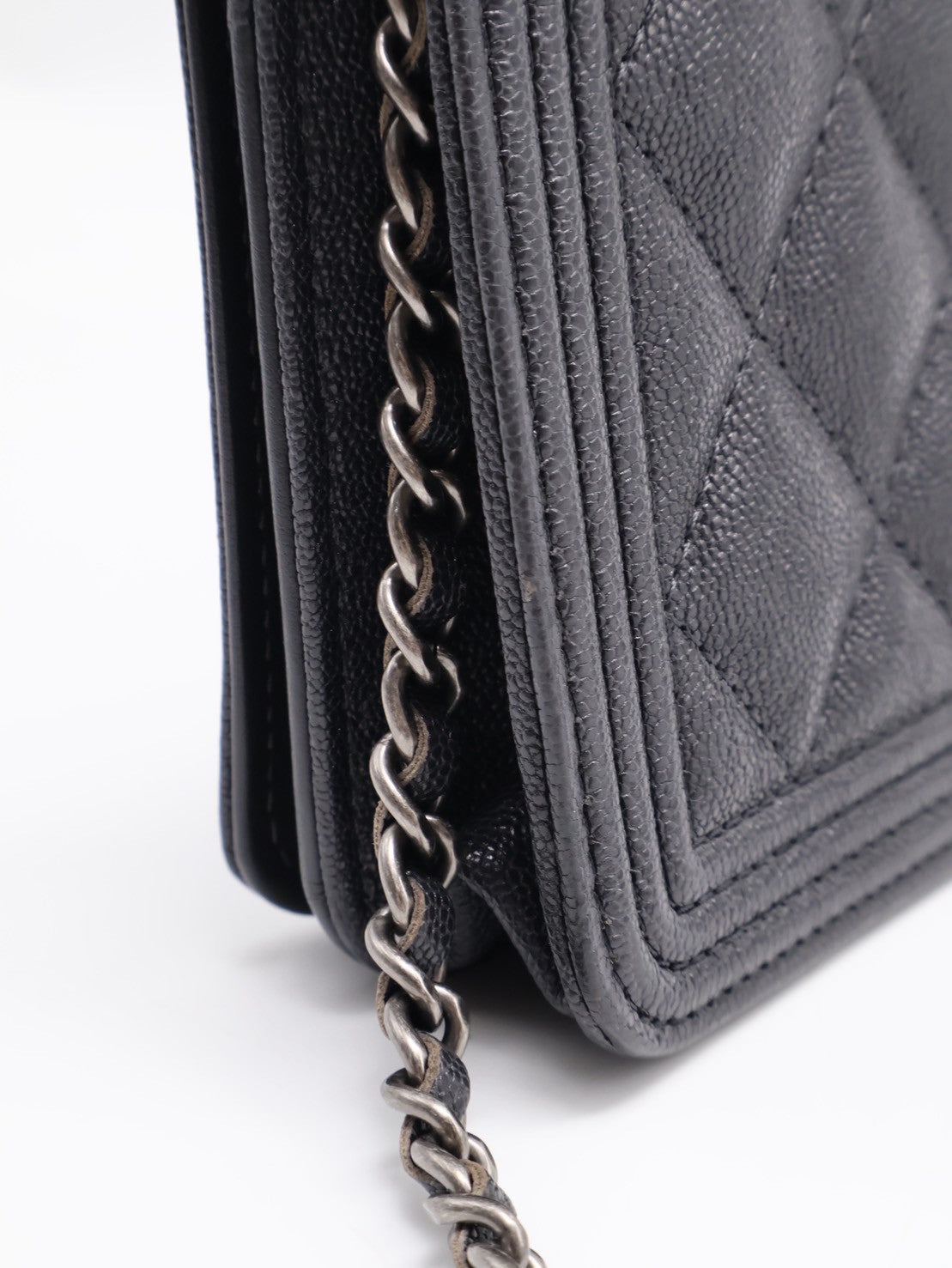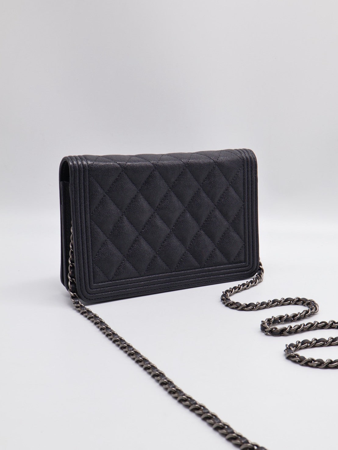 CHANEL Boy 粒面牛皮WOC - 炭灰銀26開