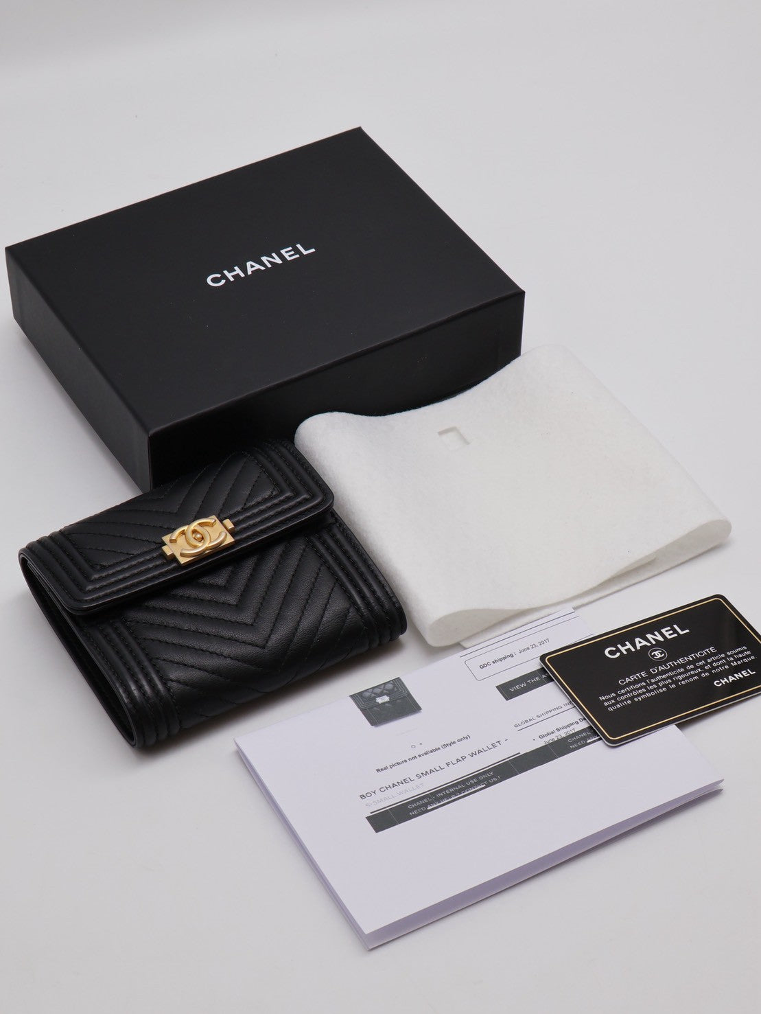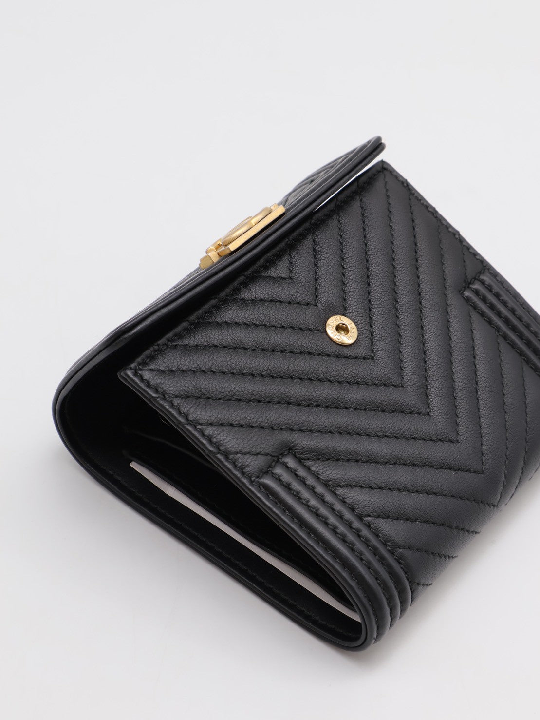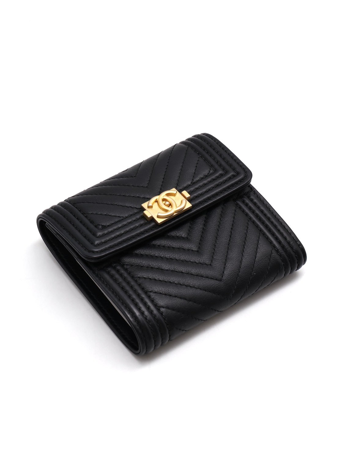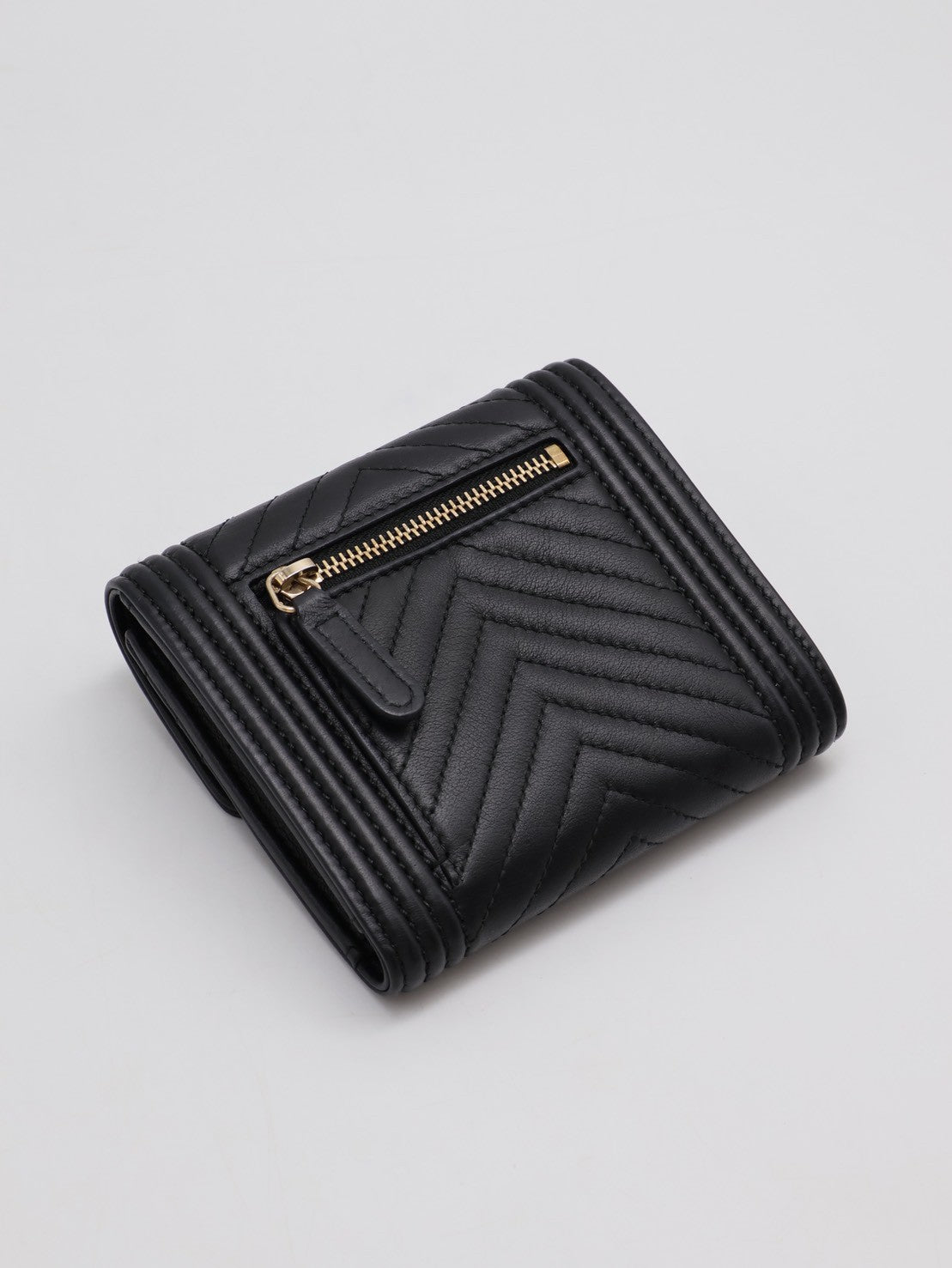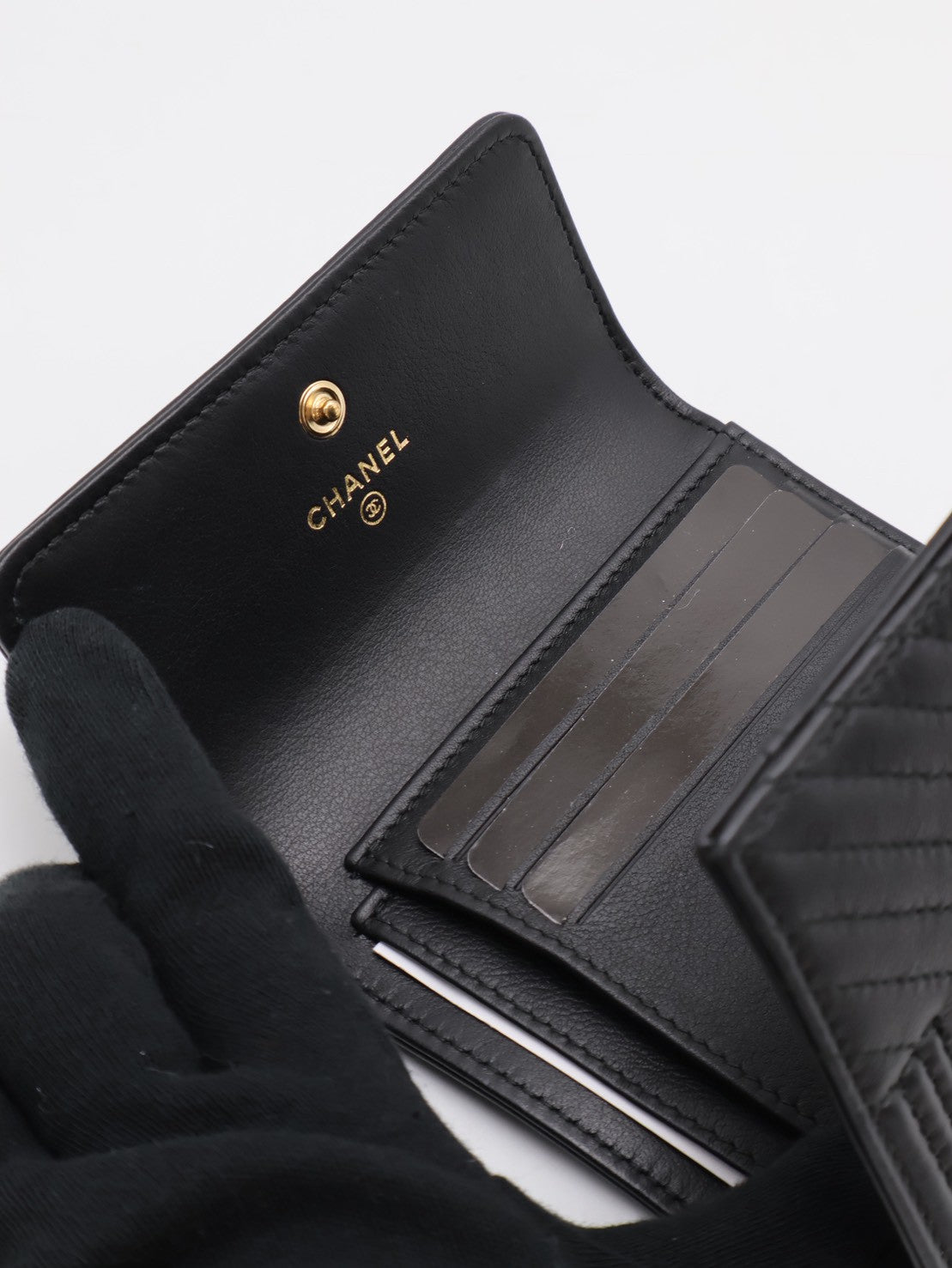 CHANEL Boy V紋三折短夾 - 黑金24開