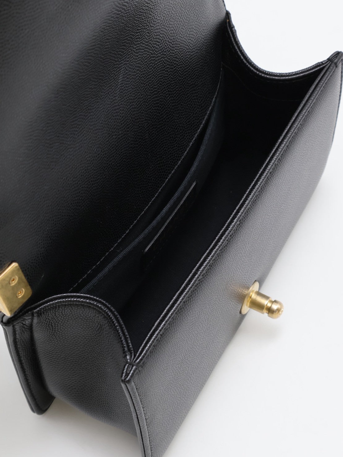 CHANEL Boy20 粒面牛皮口蓋包 - 黑金