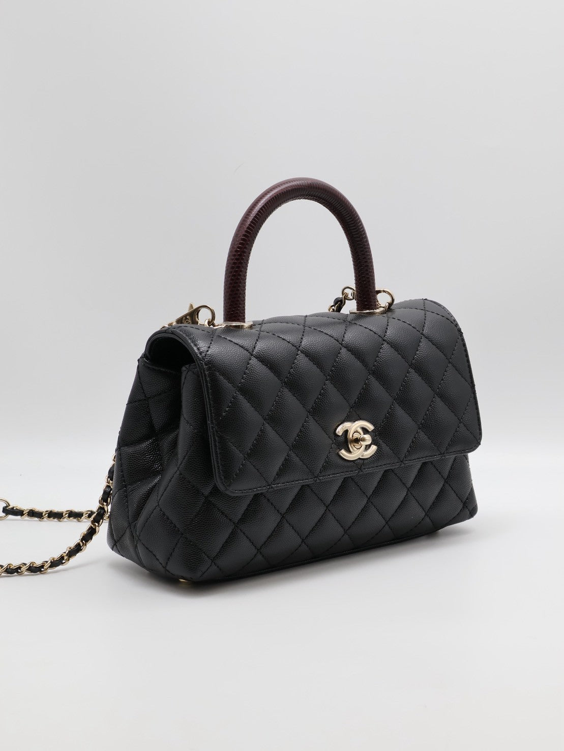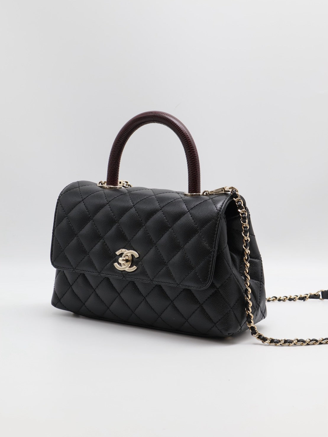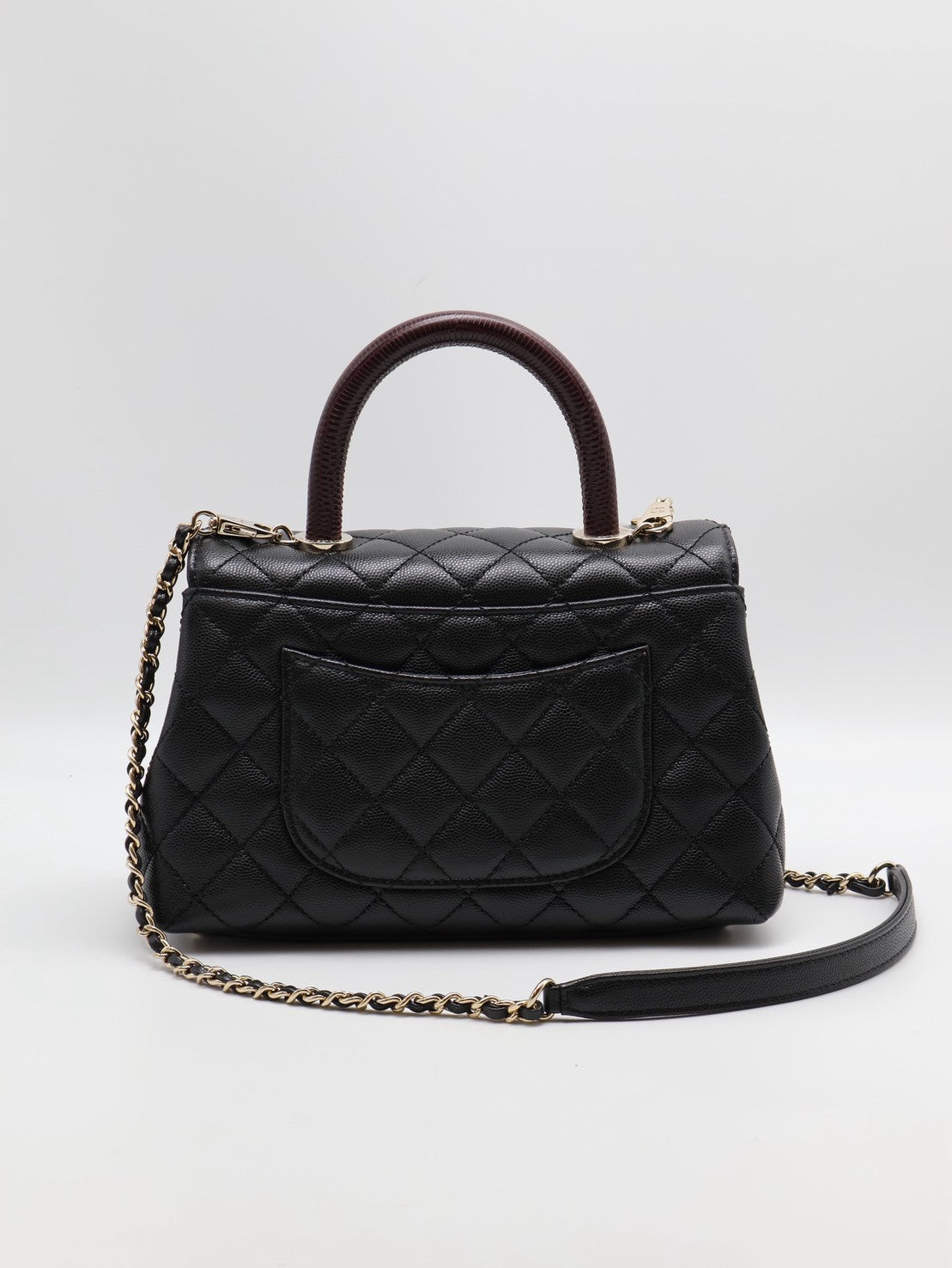 CHANEL Coco handle蜥蜴紋壓花手柄 - 小號黑金