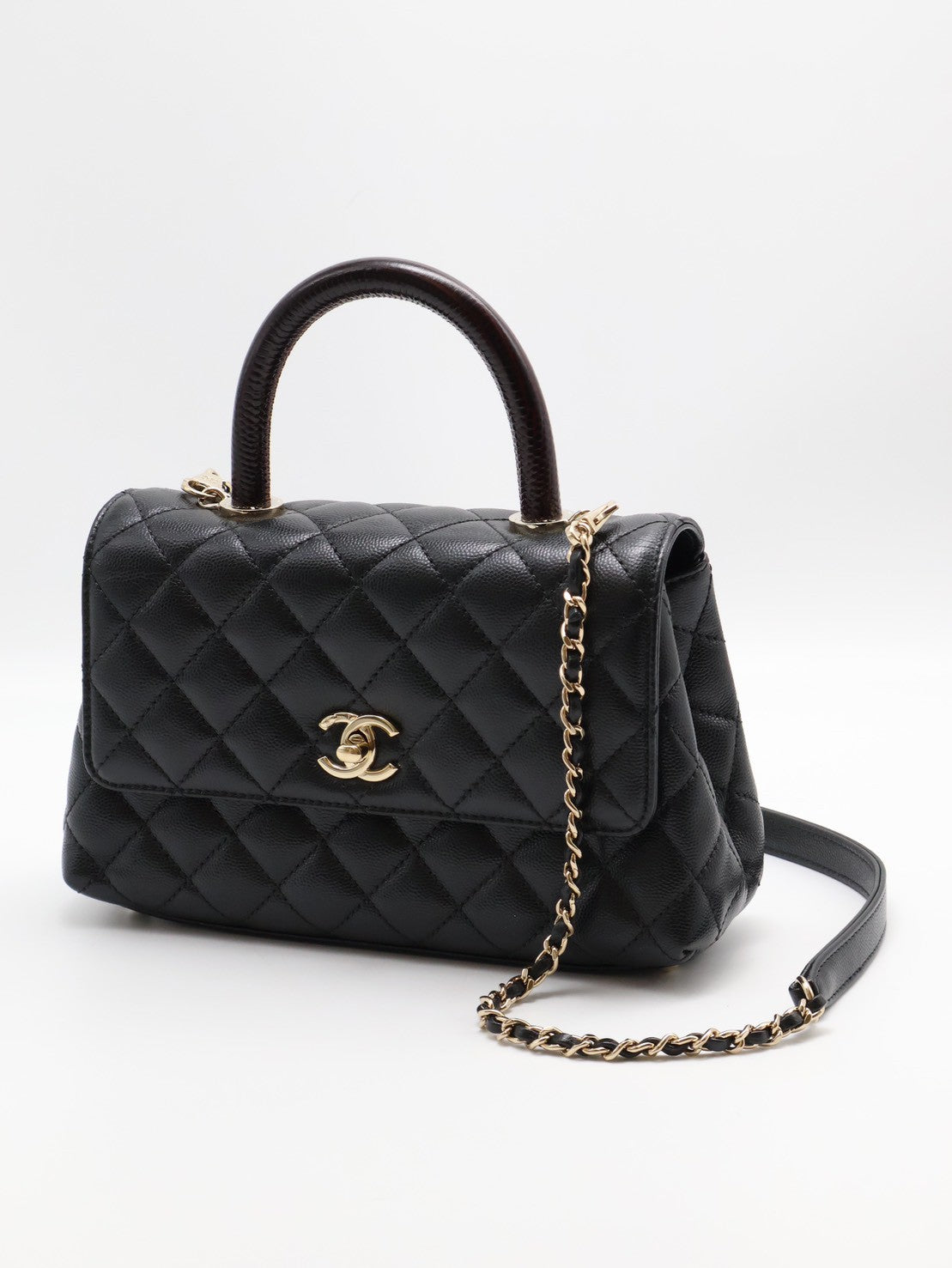 CHANEL Coco handle蜥蜴紋壓花手柄 - 小號黑金