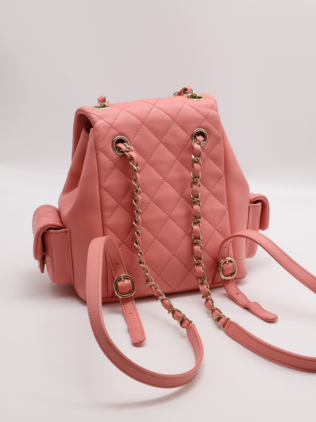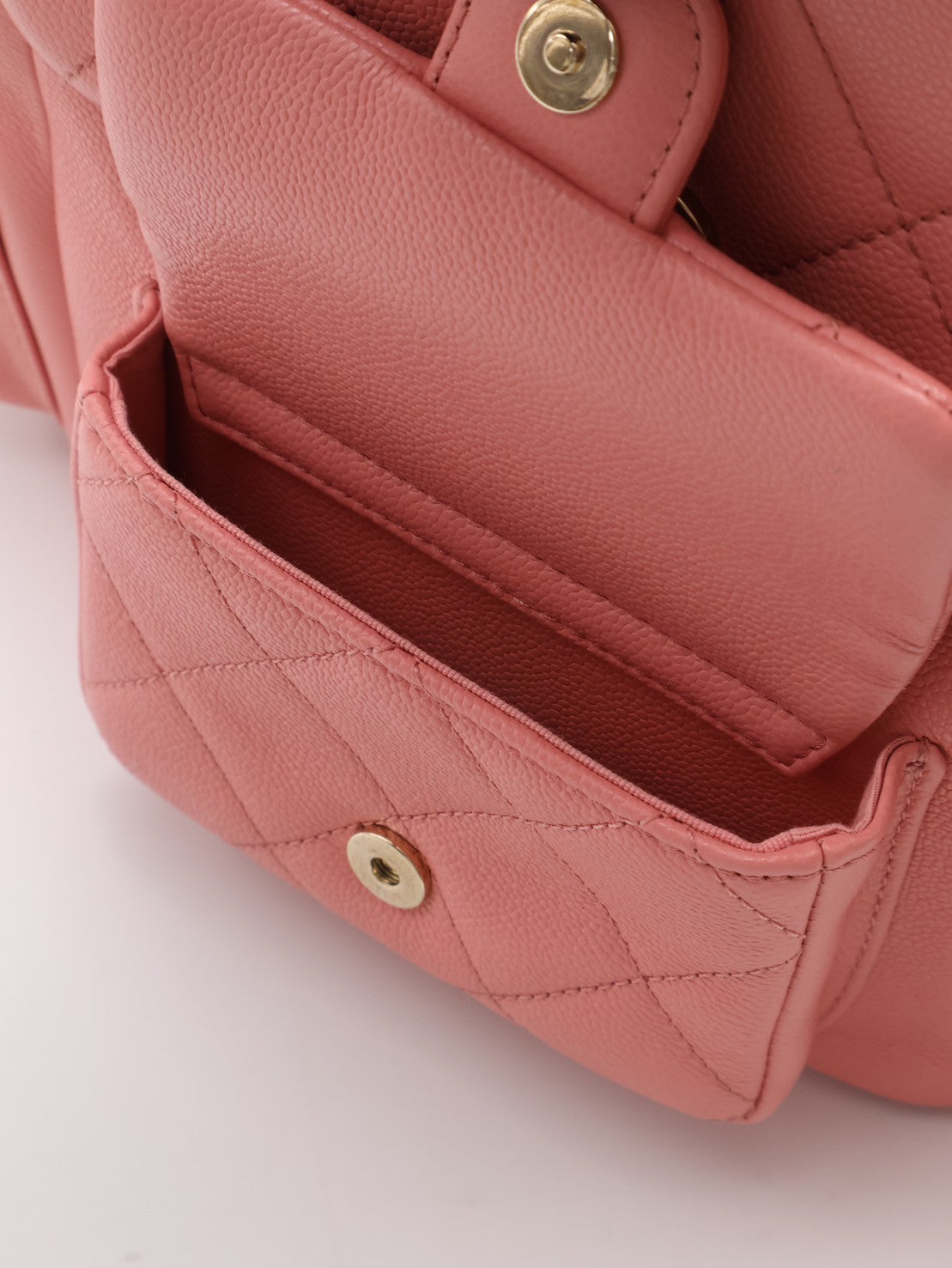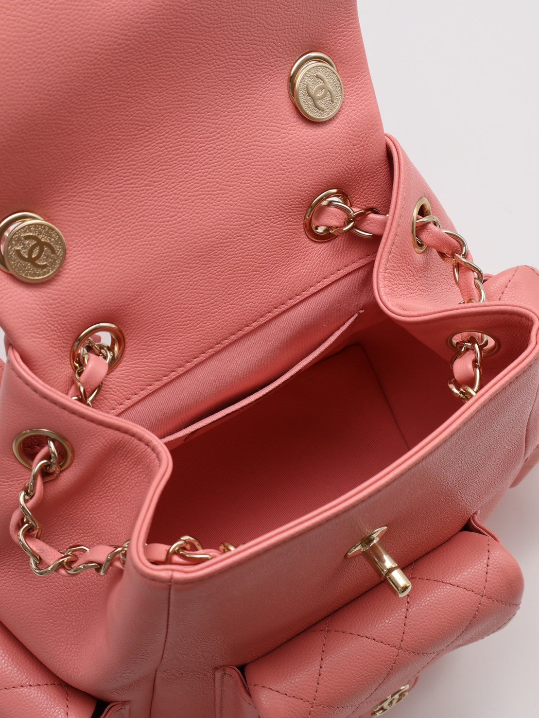 CHANEL Duma粒面牛皮後背包 - 小號粉金