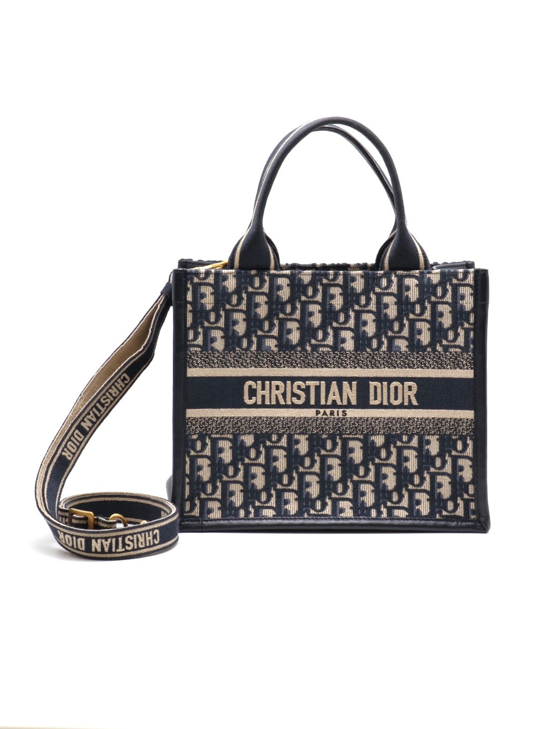 DIOR 刺繡老花背帶款Tote - 小號深藍