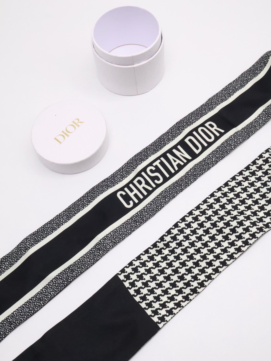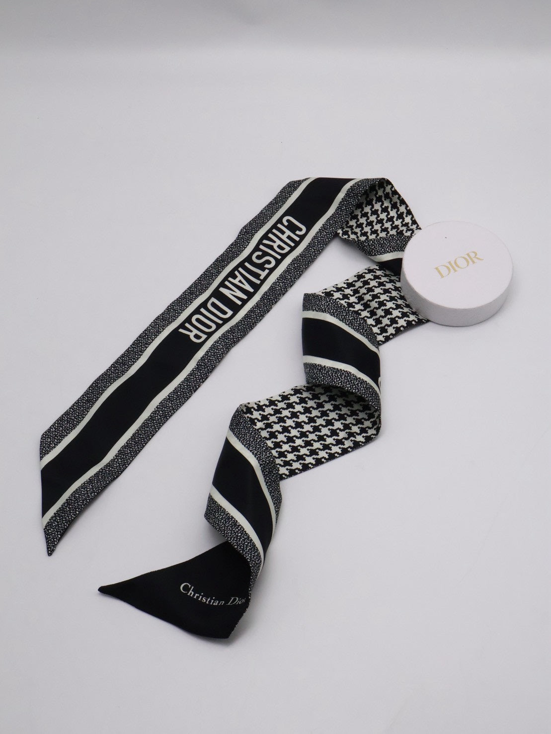 DIOR Christian Dior千鳥格絲巾 - 黑