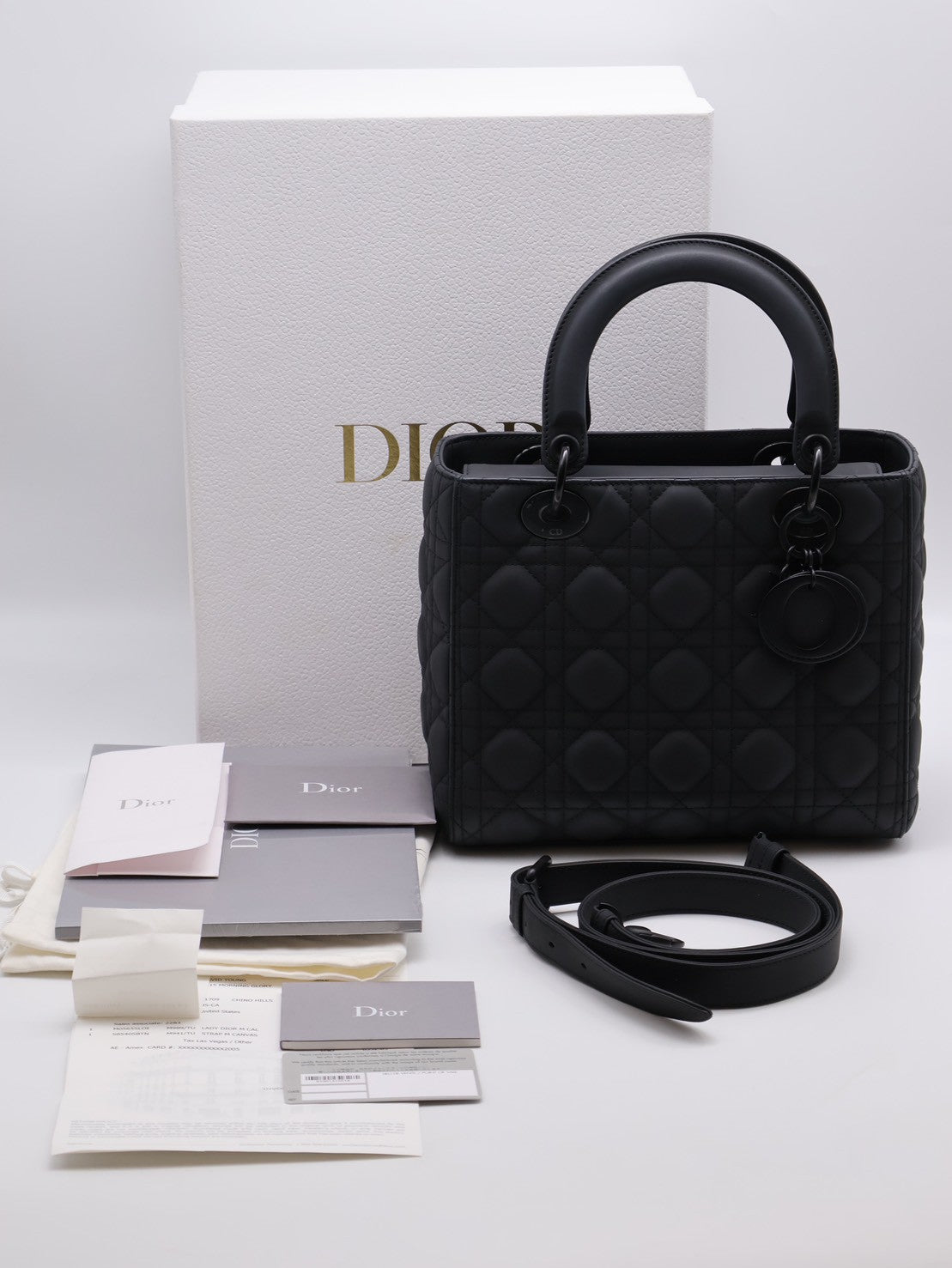 DIOR Lady dior 藤格紋戴妃包 - 中號So black