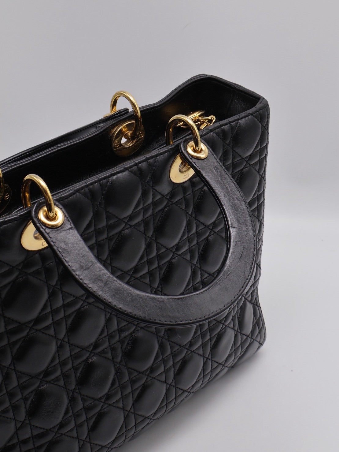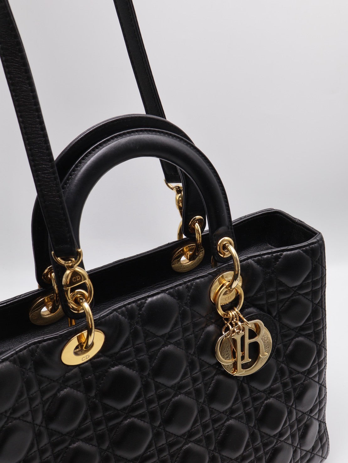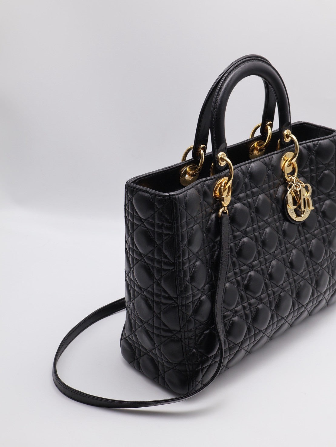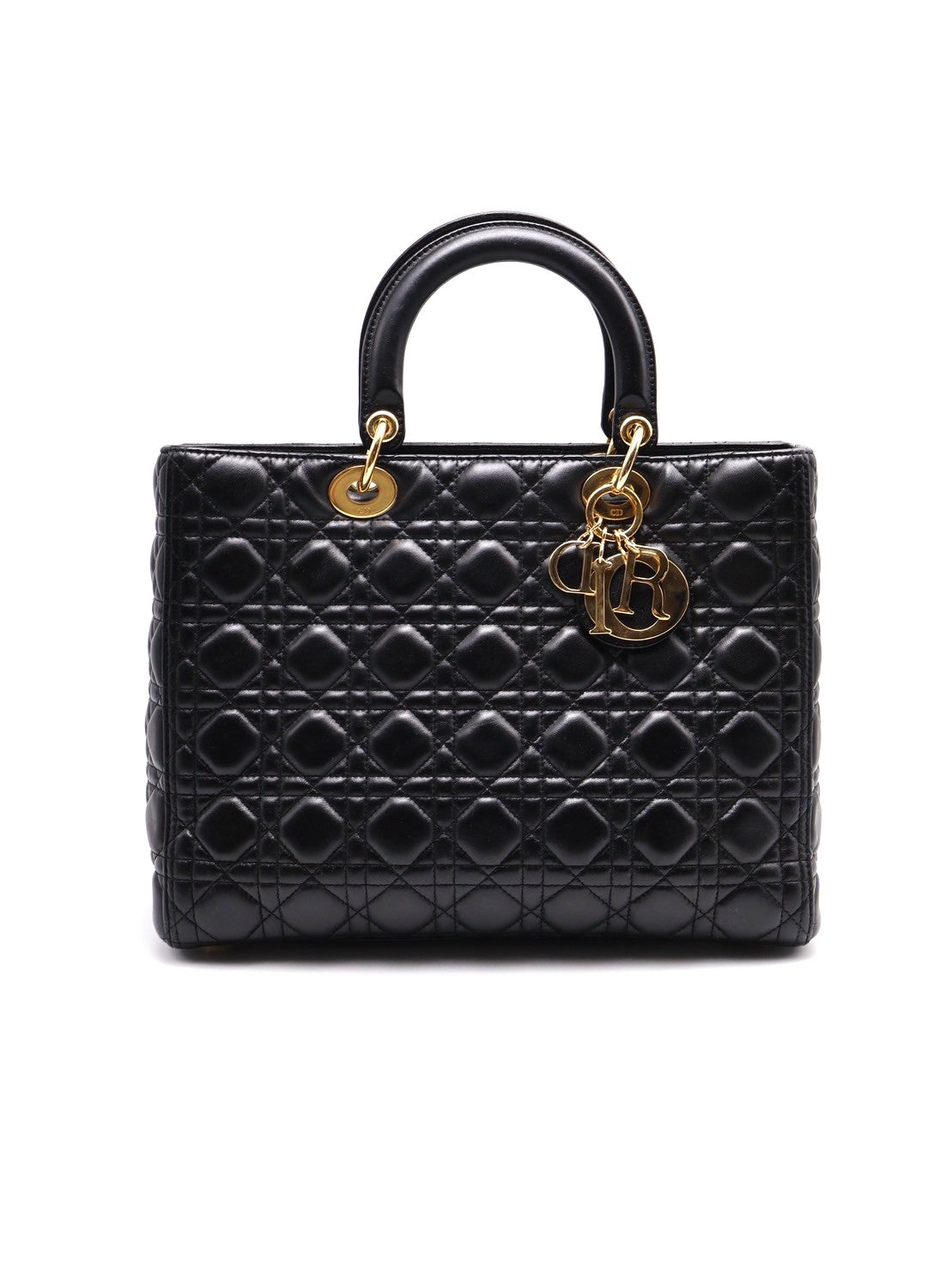 DIOR Lady dior 藤格紋戴妃包 - 大號黑金