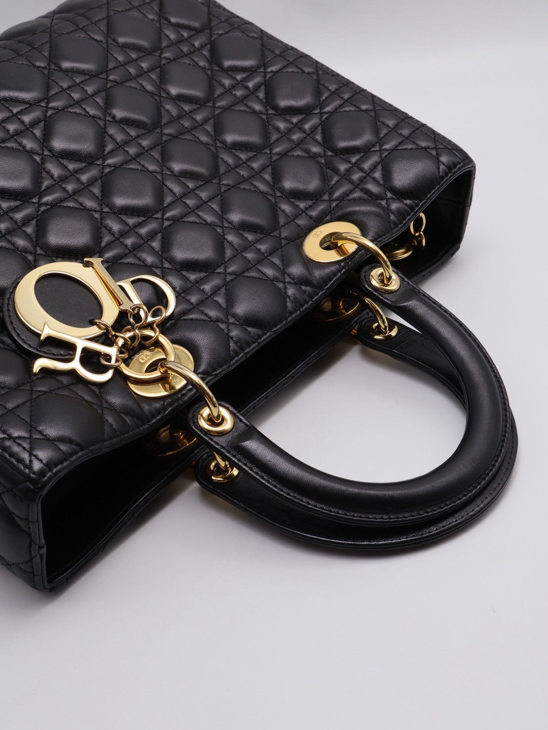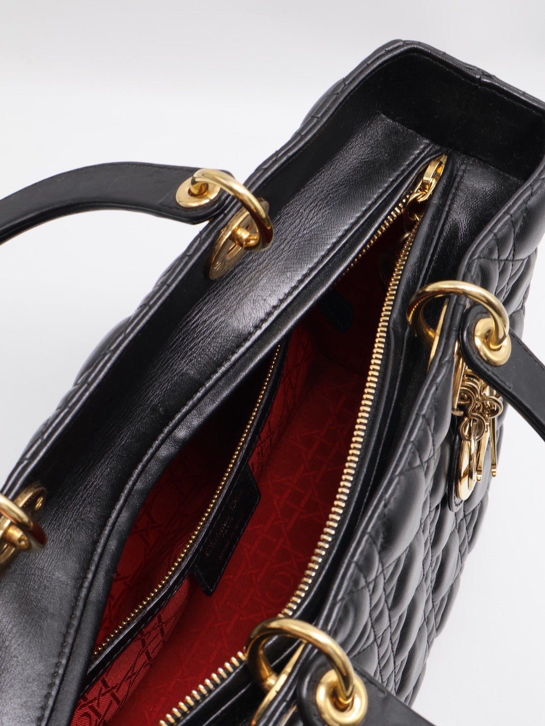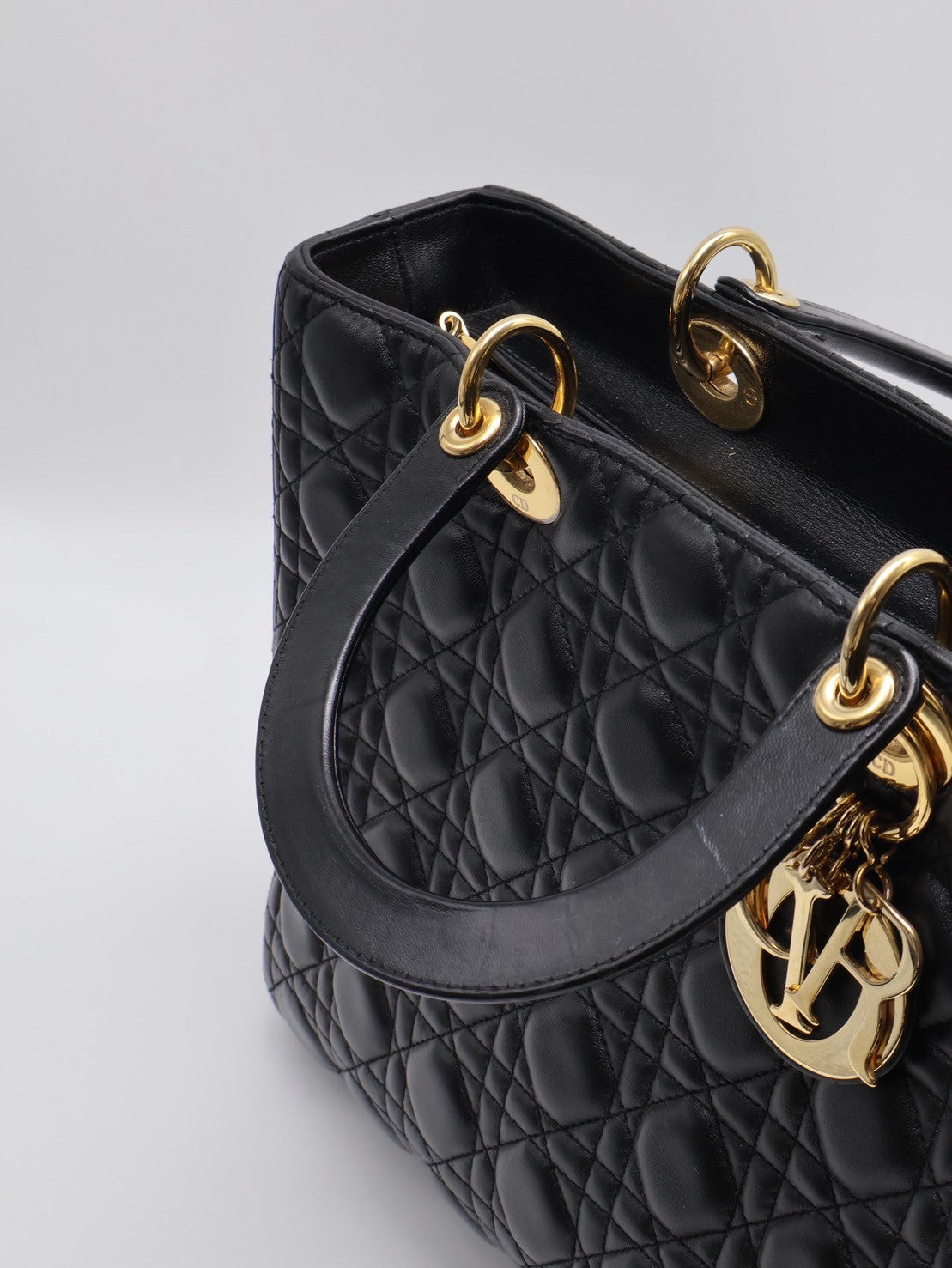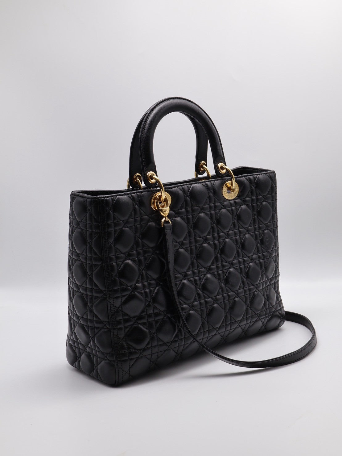 DIOR Lady dior 藤格紋戴妃包 - 大號黑金