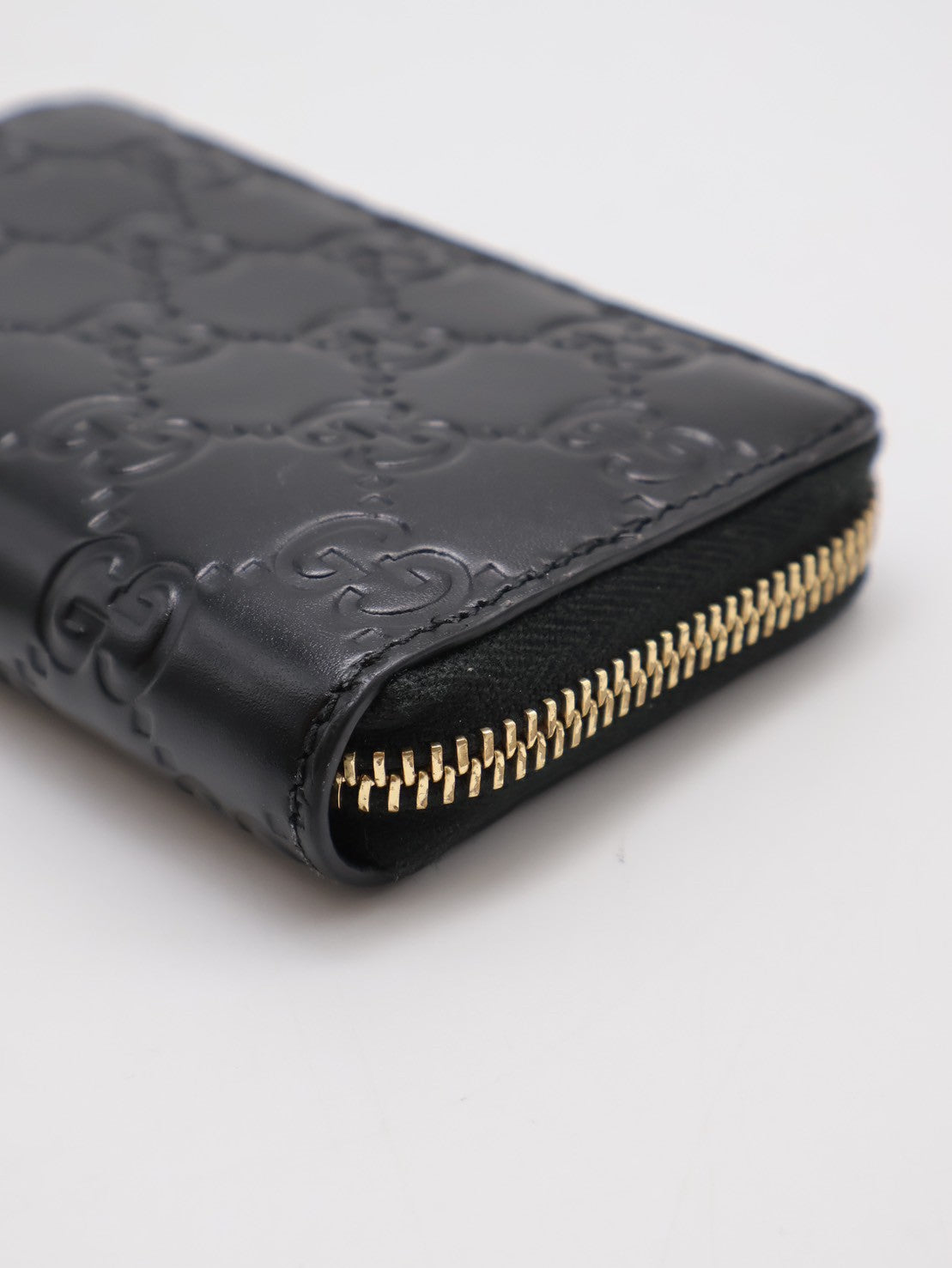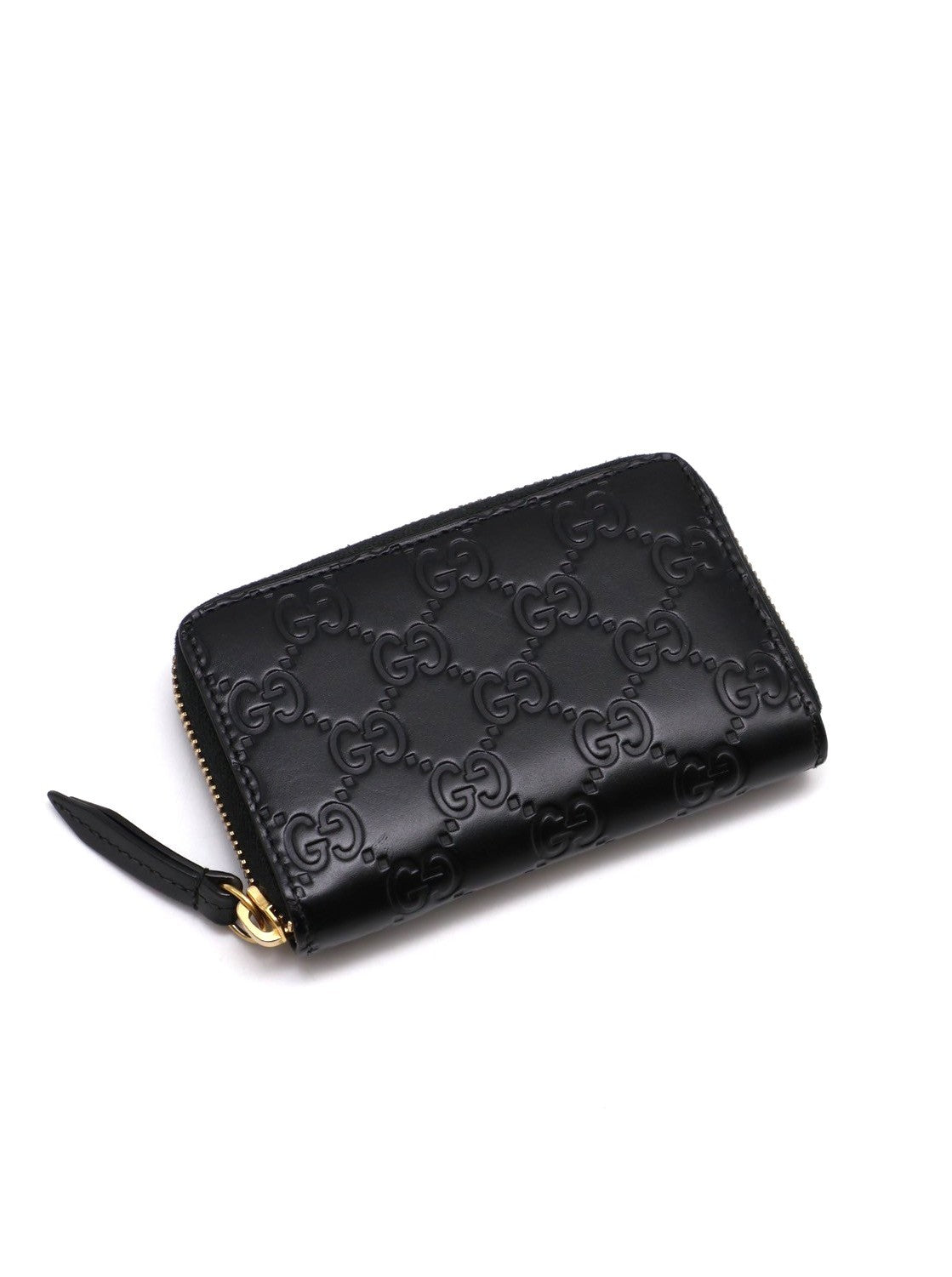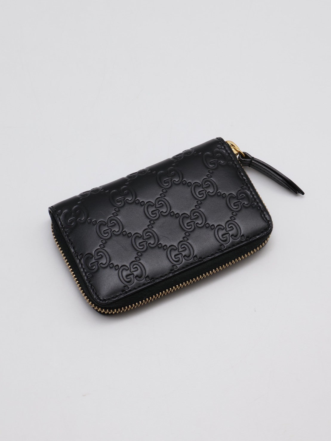 GUCCI 壓紋老花拉鍊卡包 - 黑