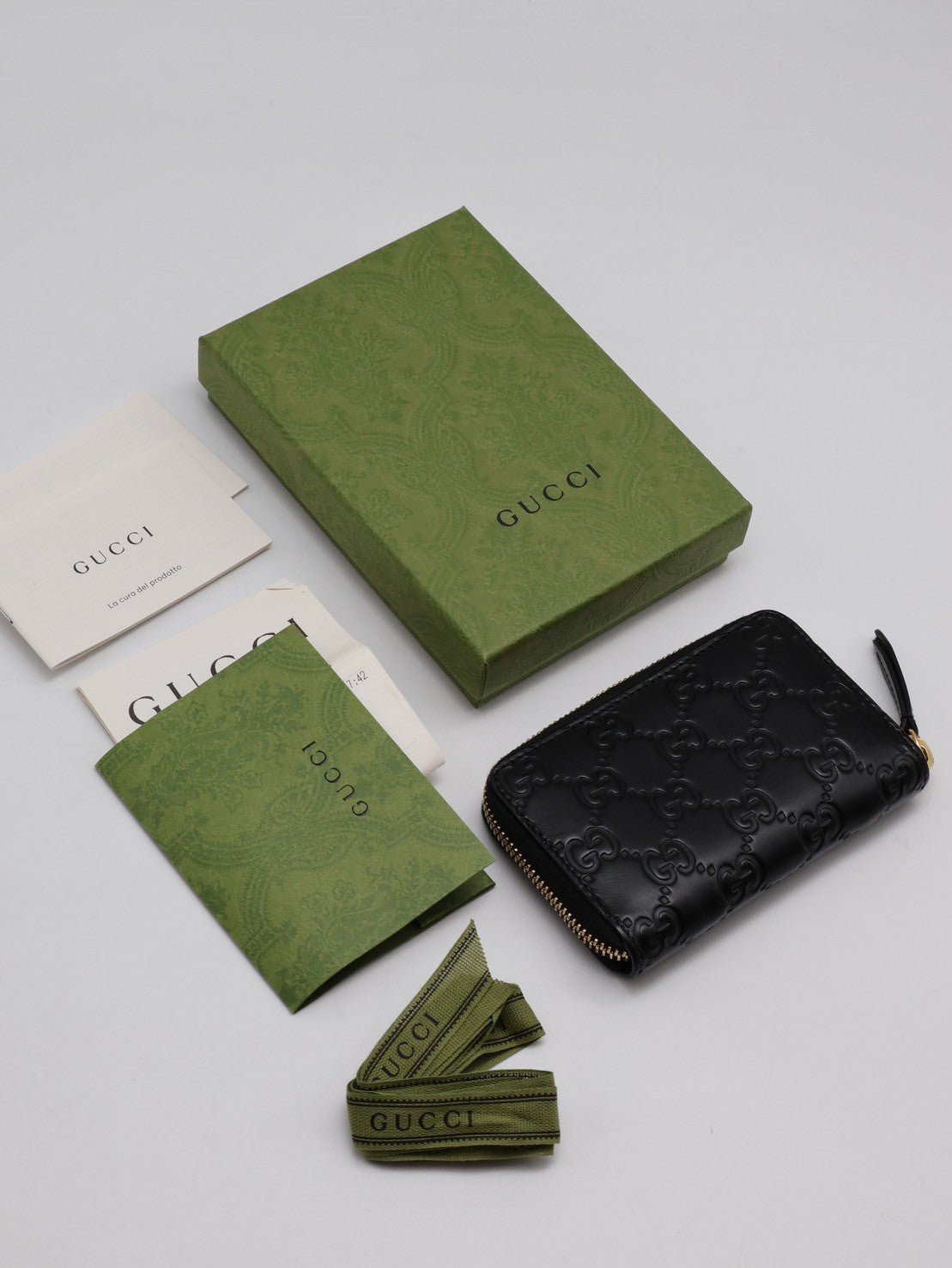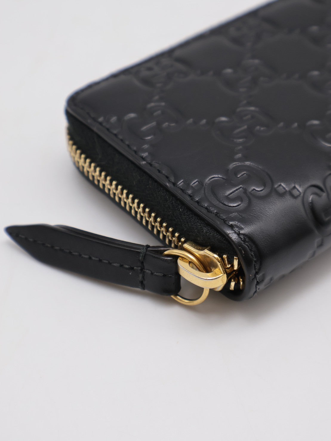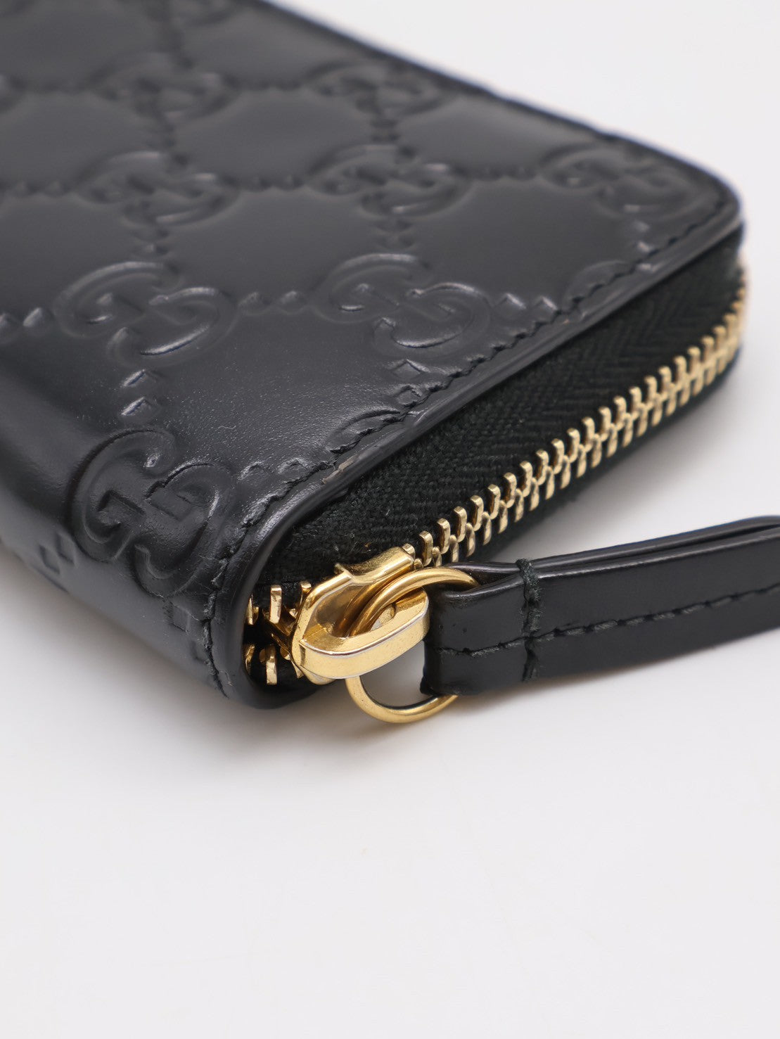 GUCCI 壓紋老花拉鍊卡包 - 黑
