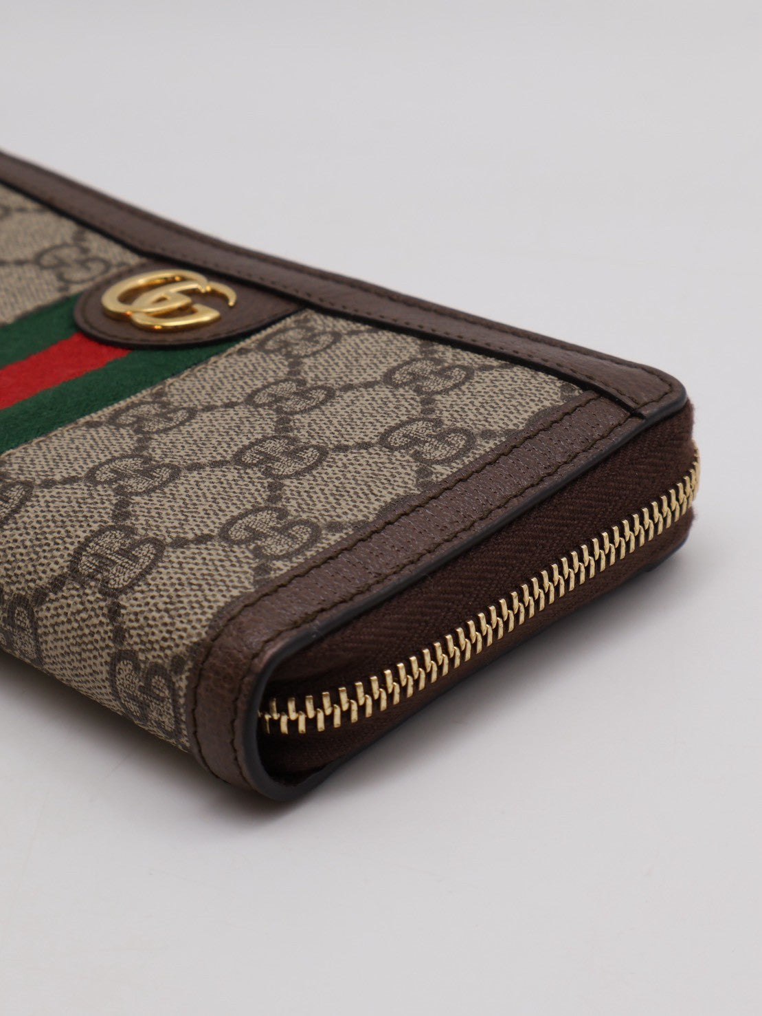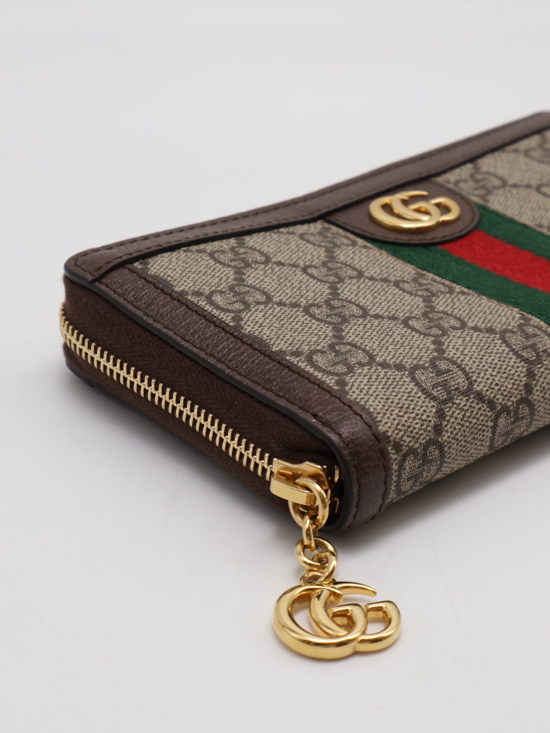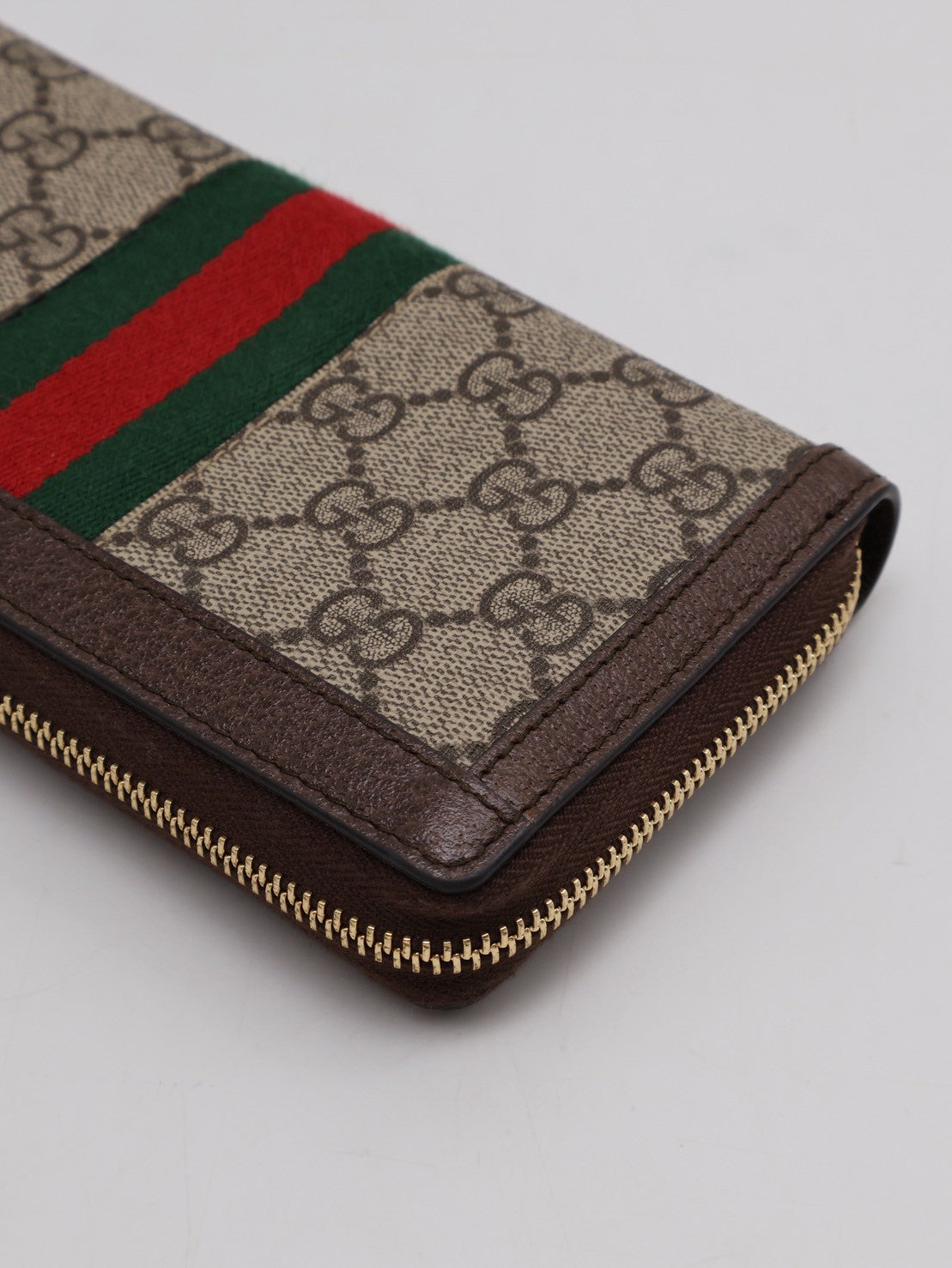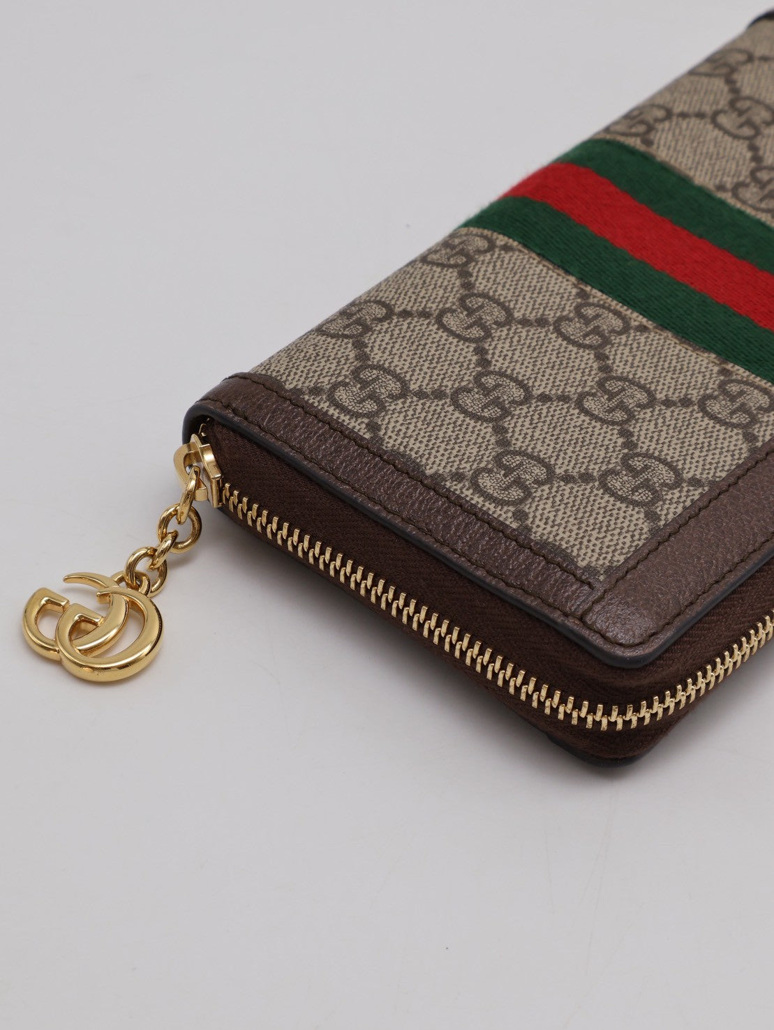 GUCCI Ophidia紅綠織帶拉鍊長夾 - 烏木