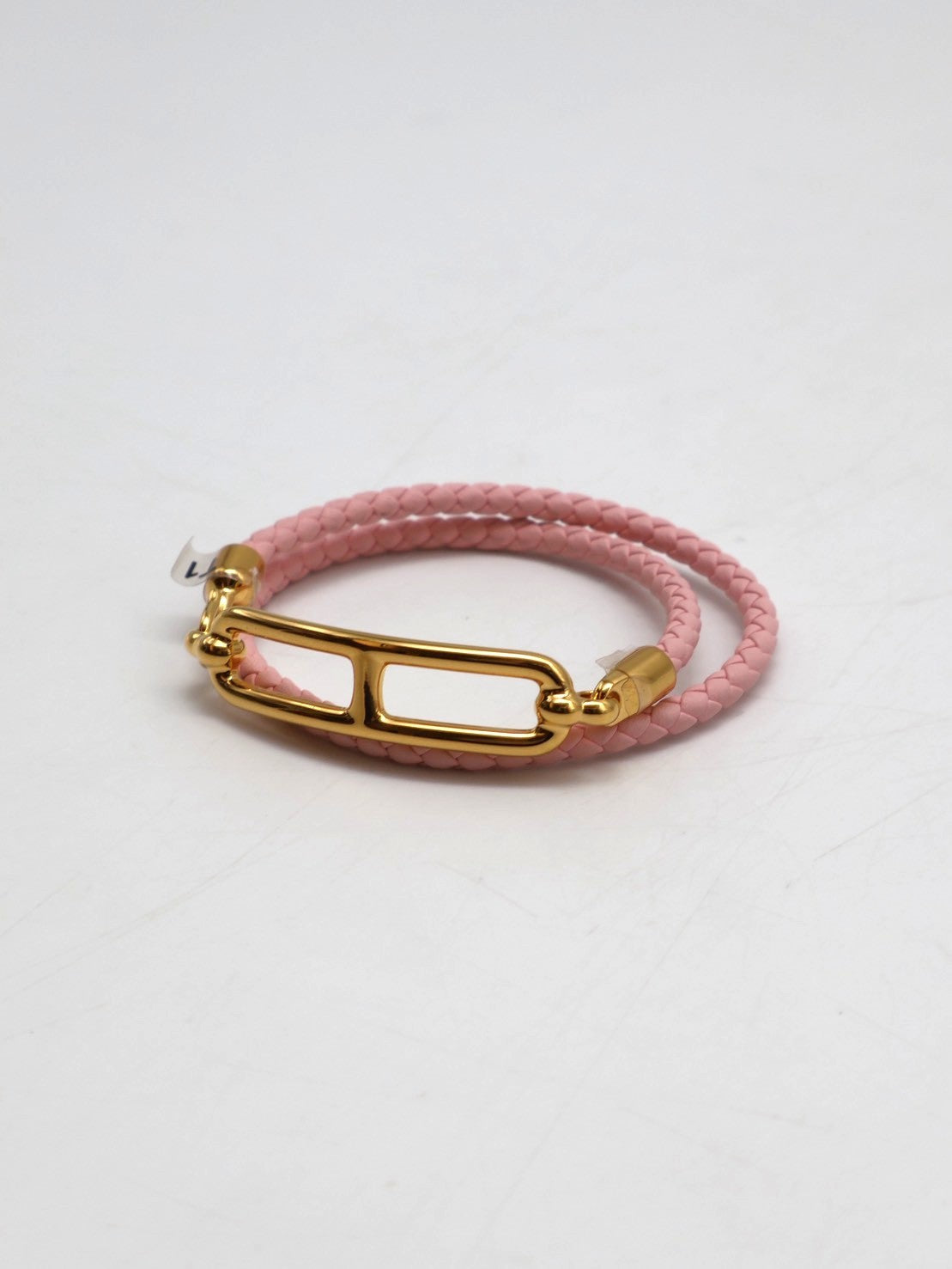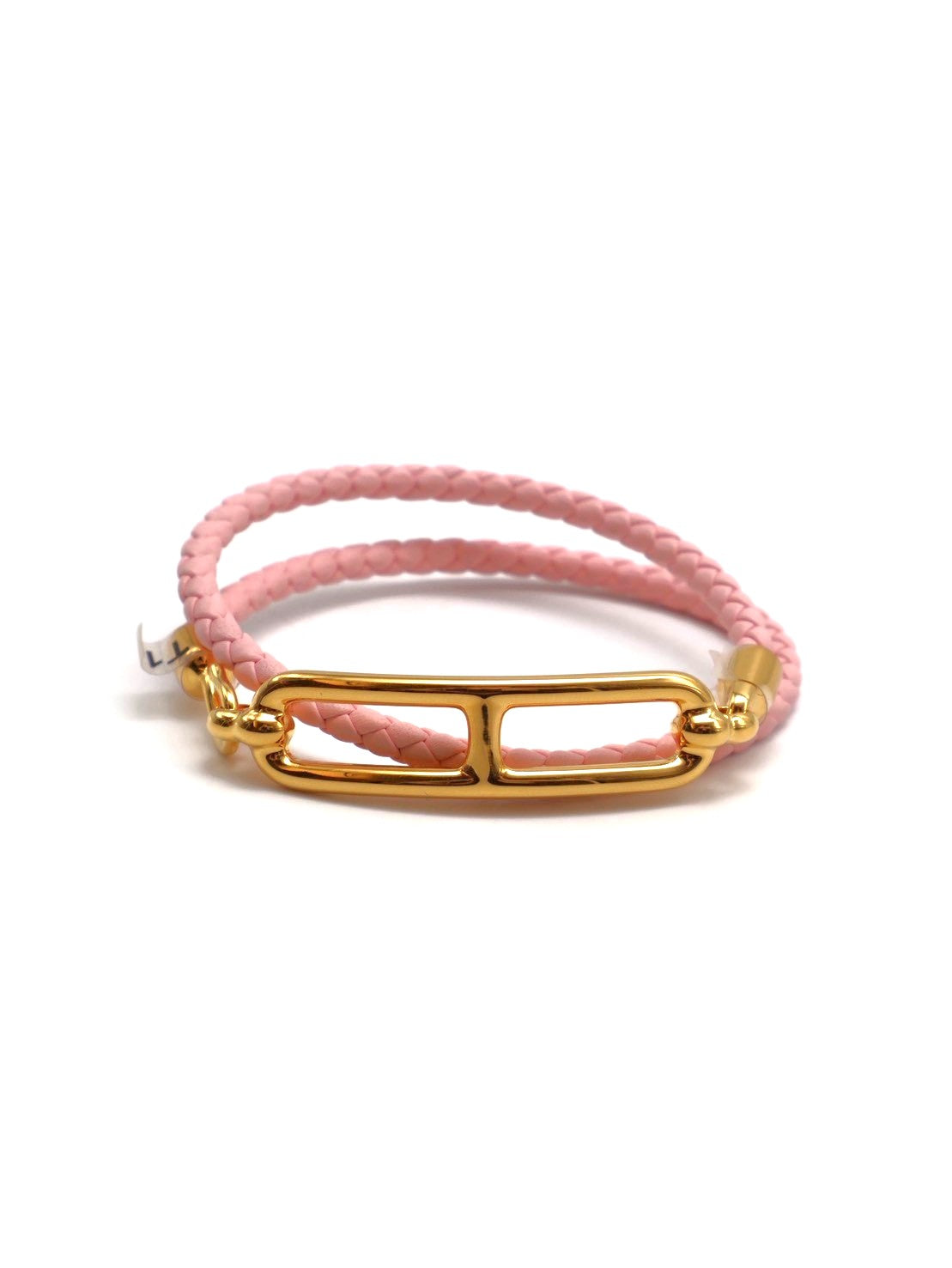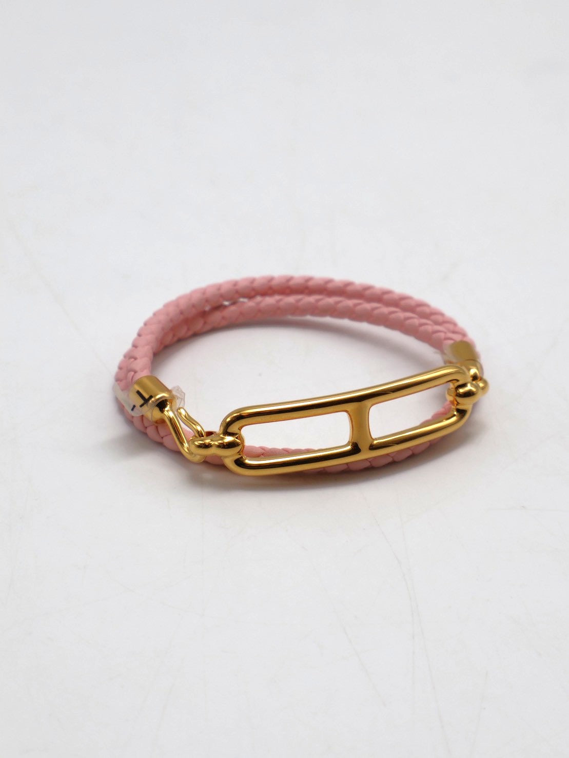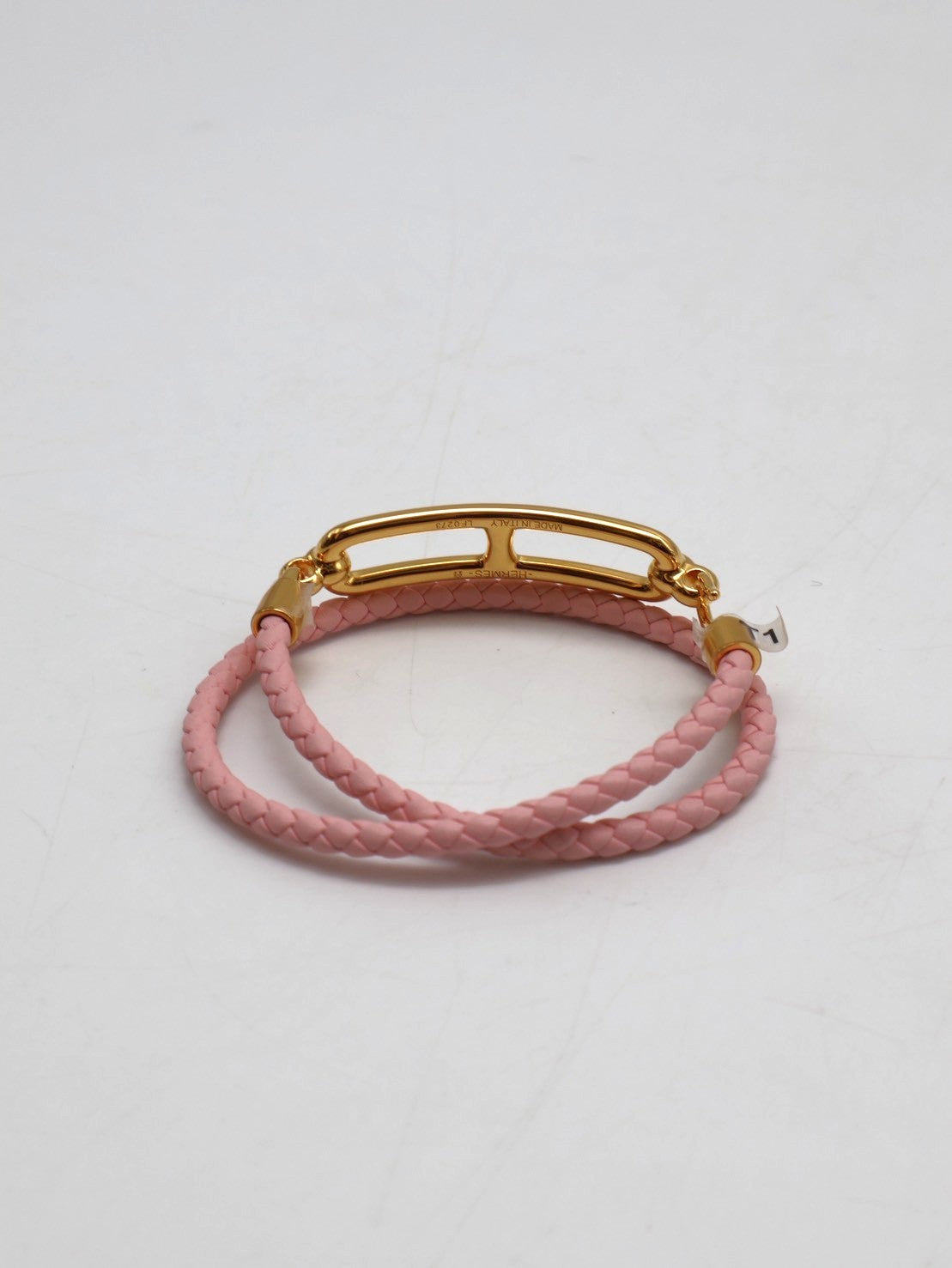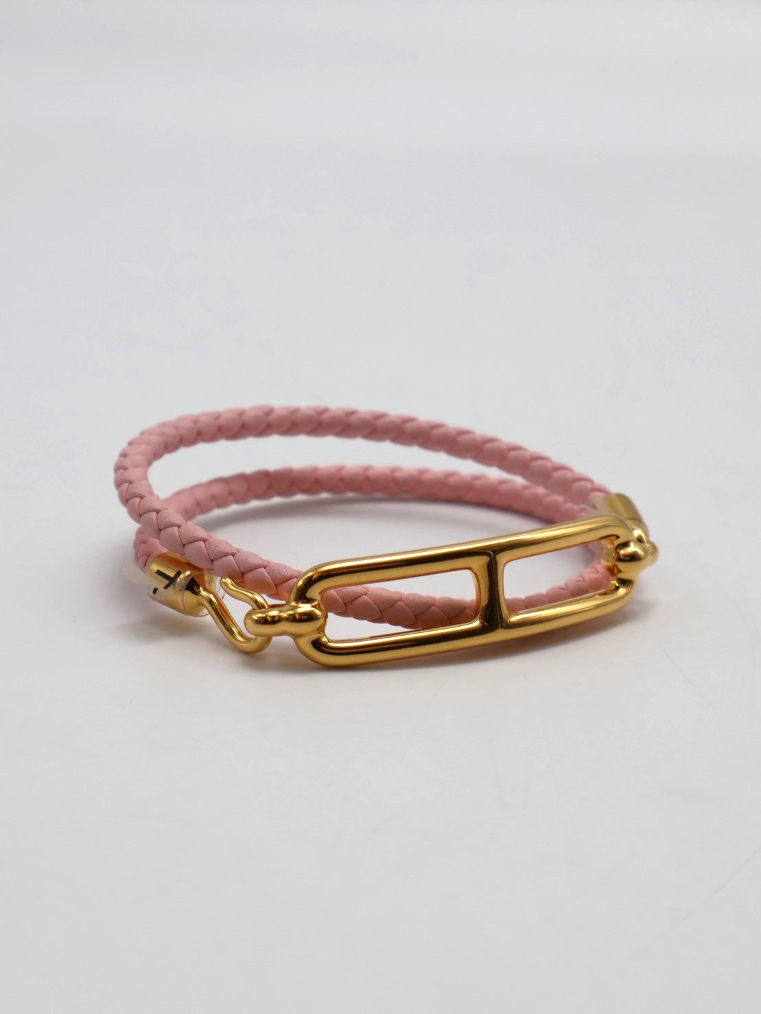HERMES Roulis double tour雙圈小牛皮手環 - 櫻花粉金 XS