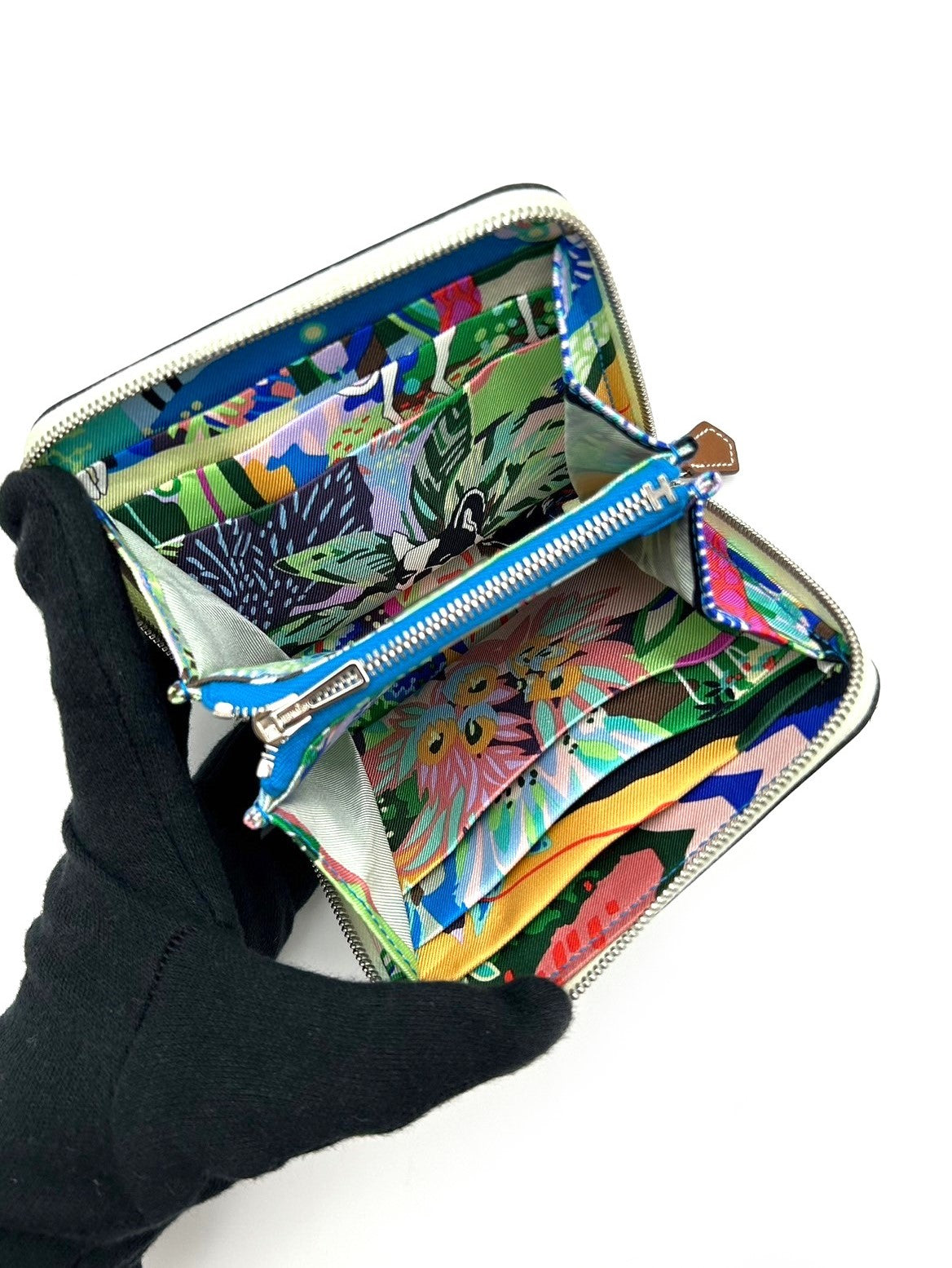HERMES Silk'in 絲巾拉鍊短夾 - 氣泡綠 / 自由之城 B