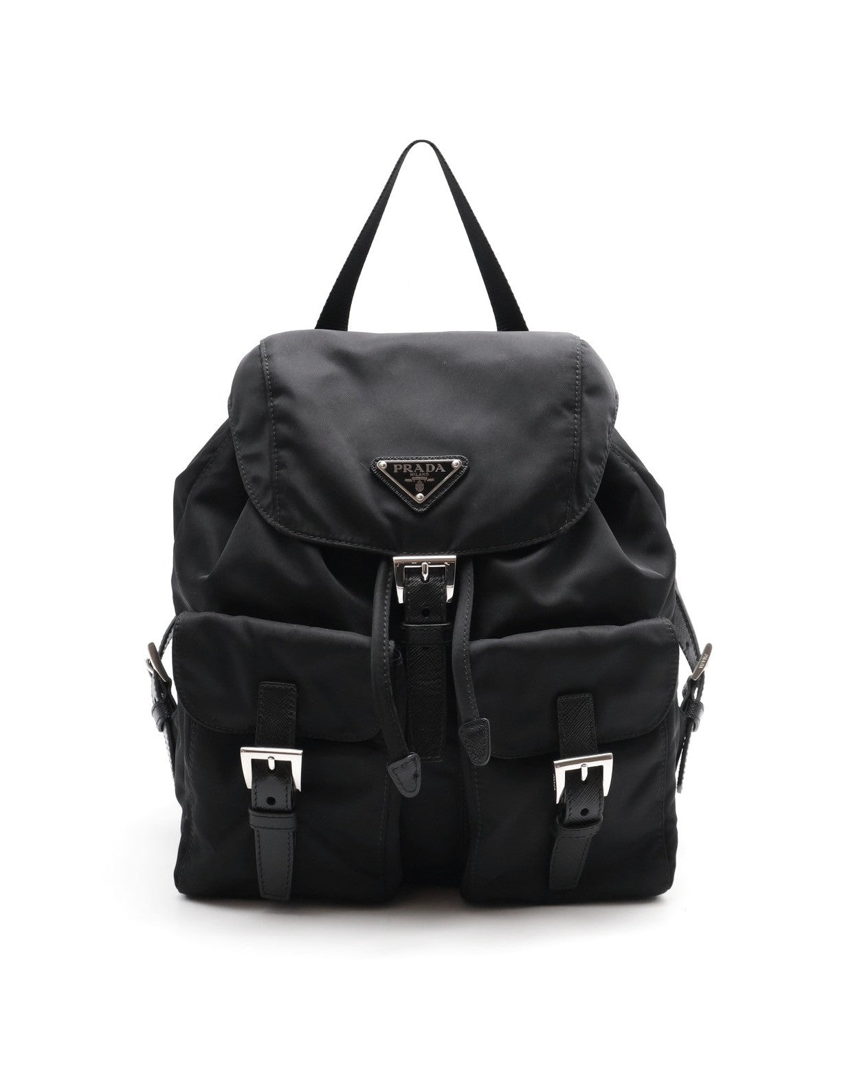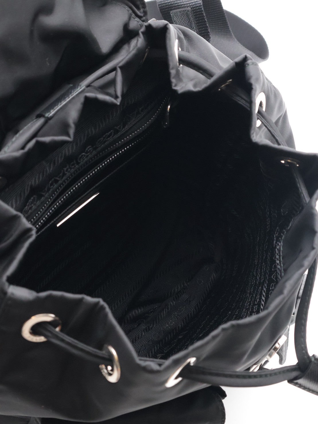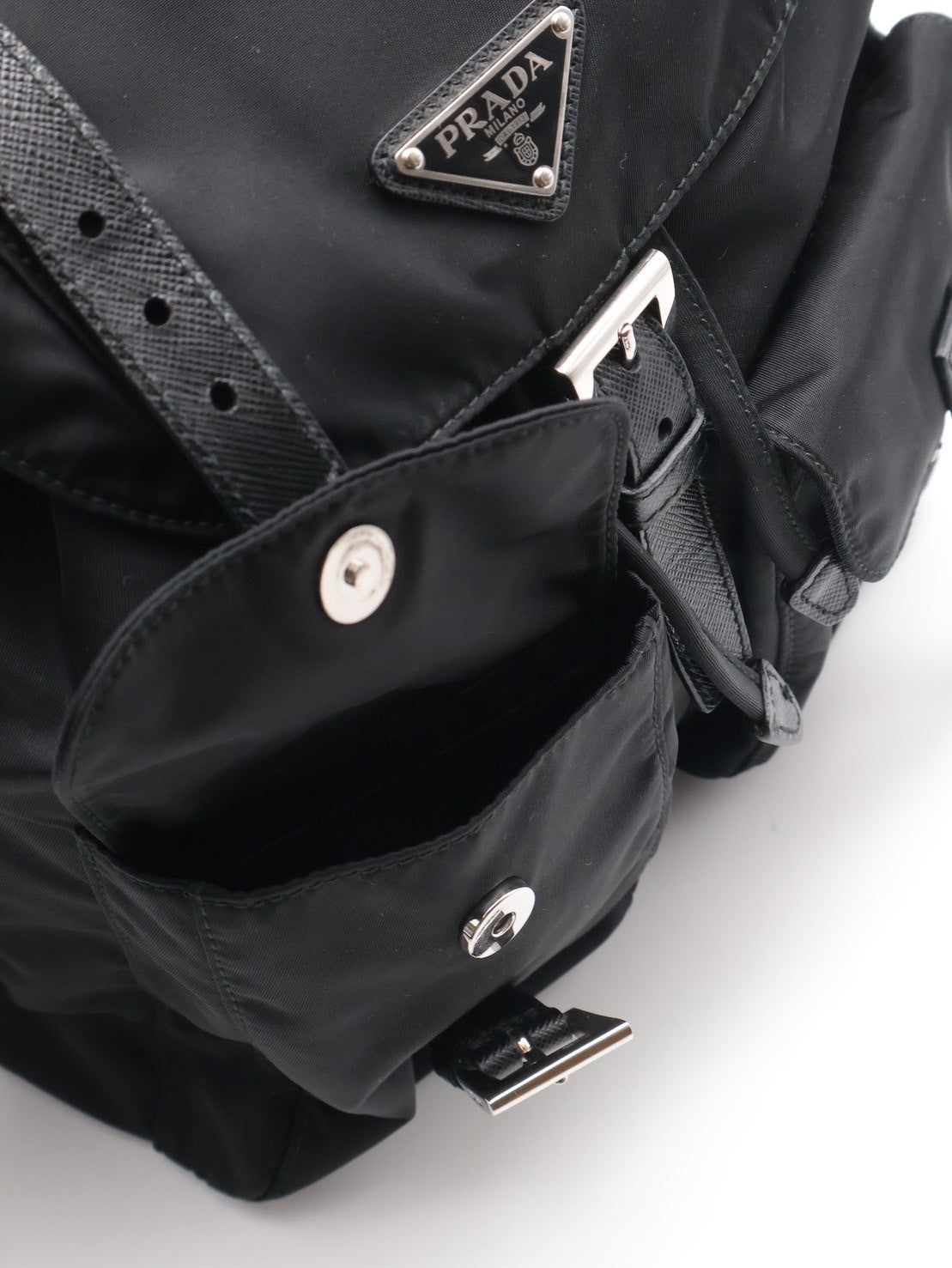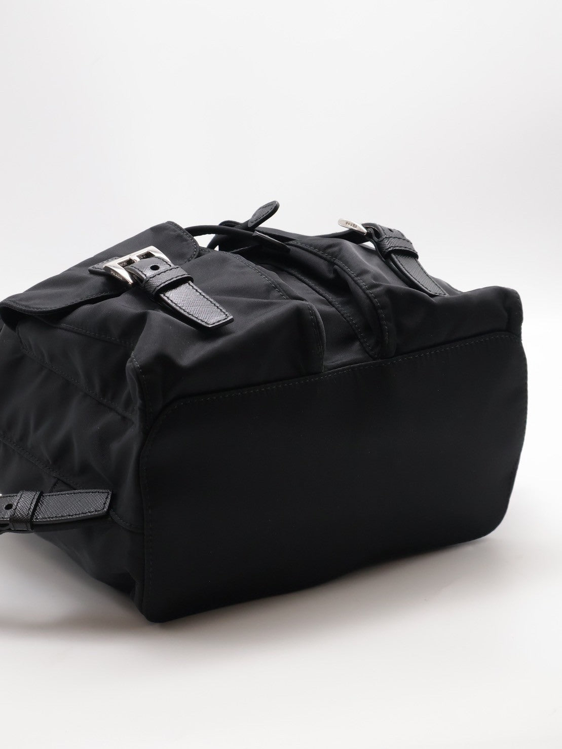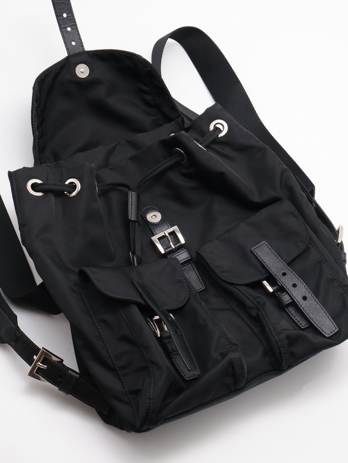 PRADA Re-Nylon雙口袋束繩後背包 - 小號黑銀