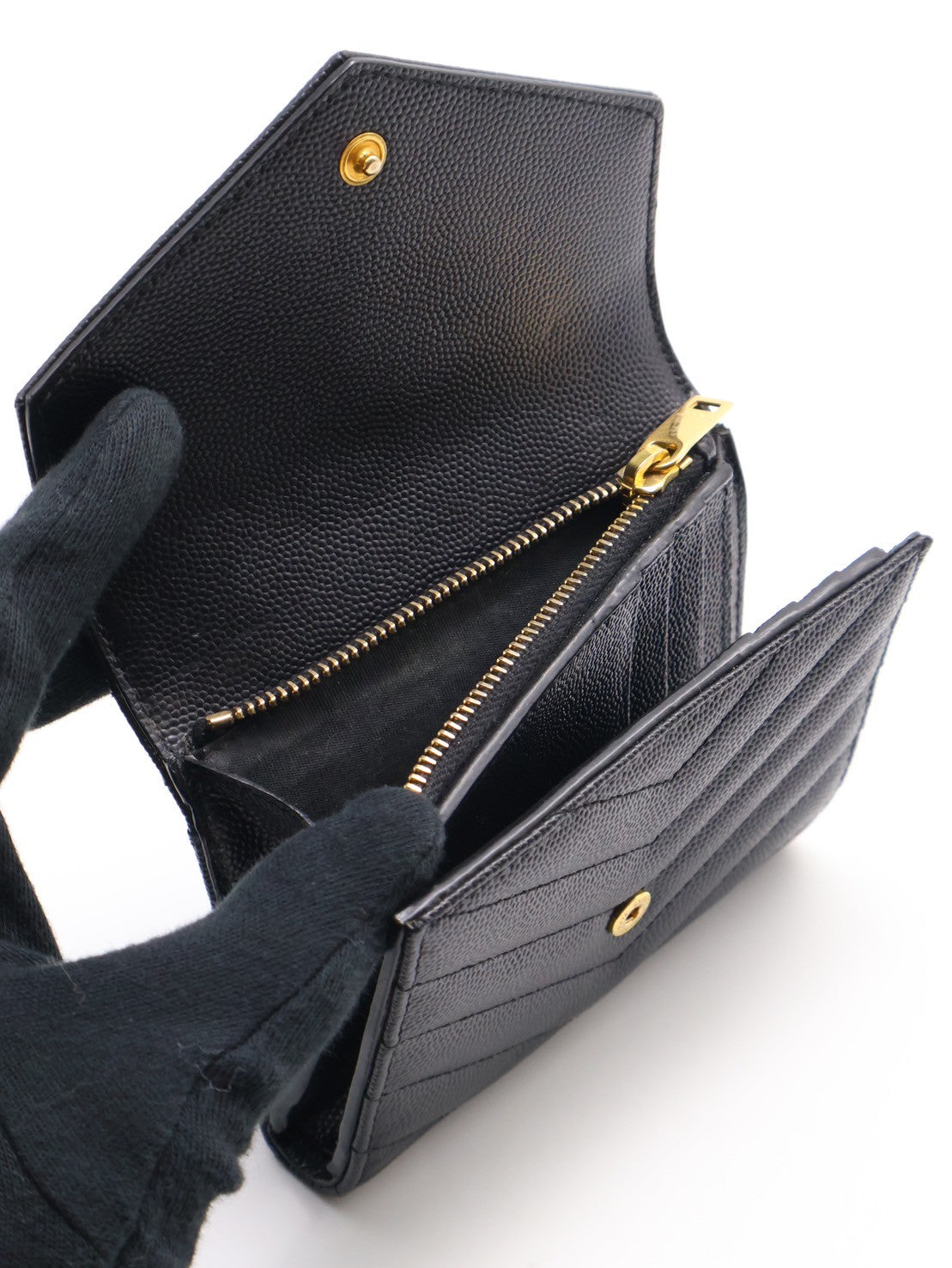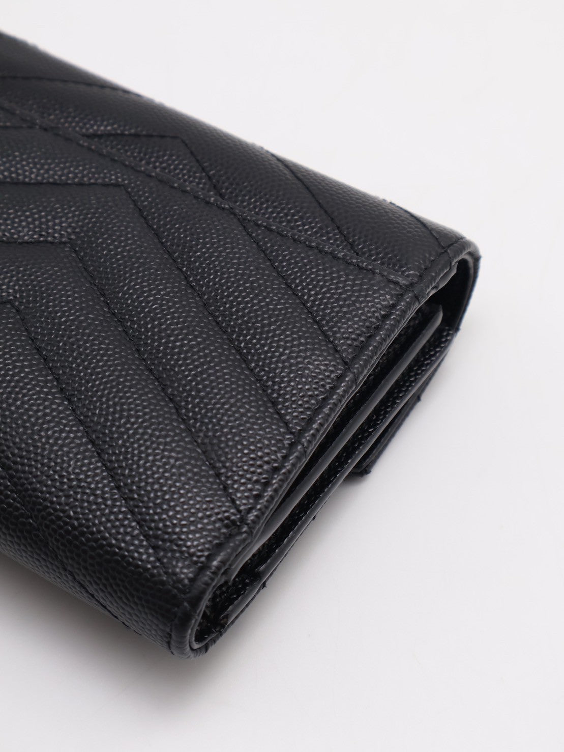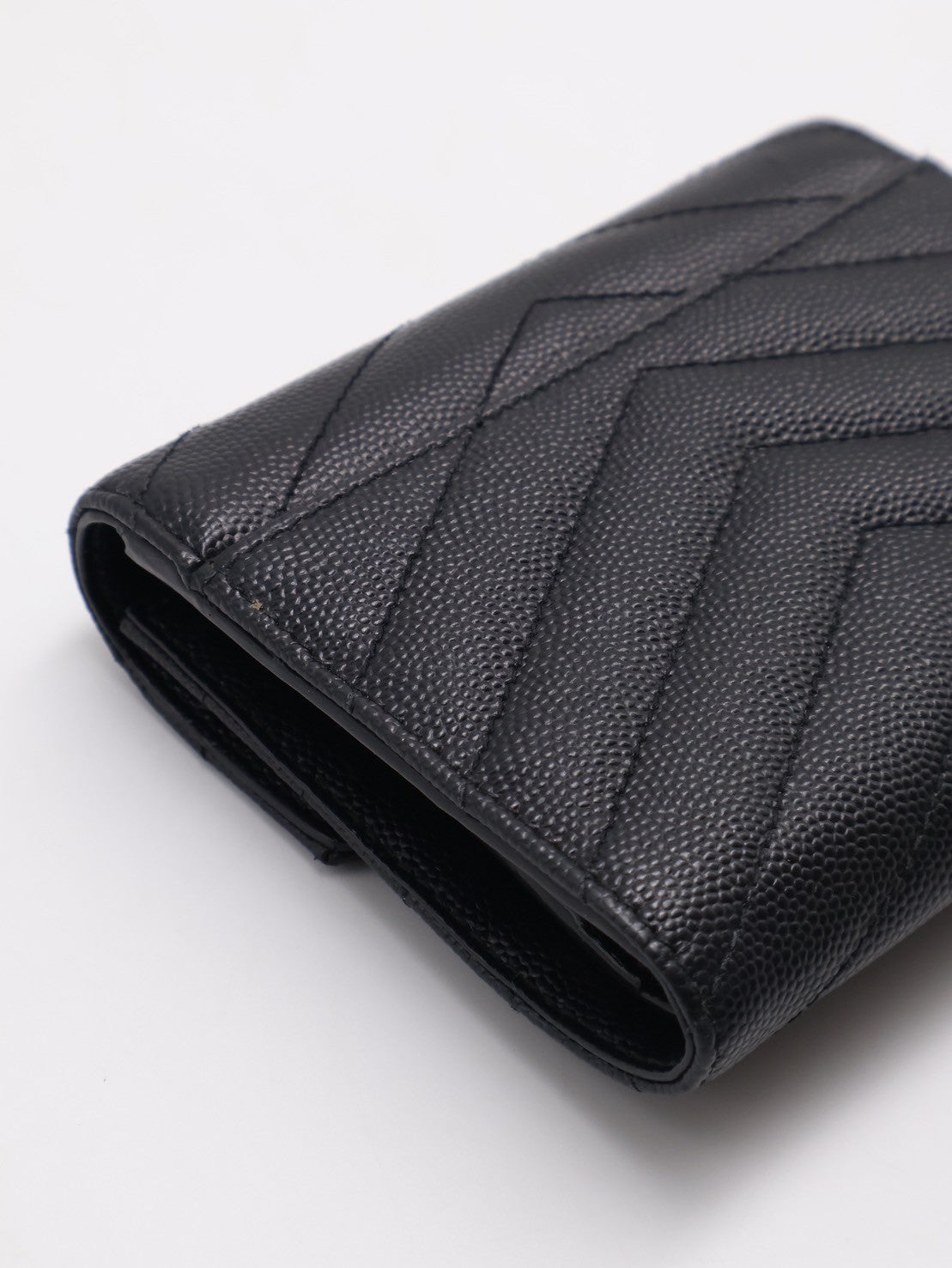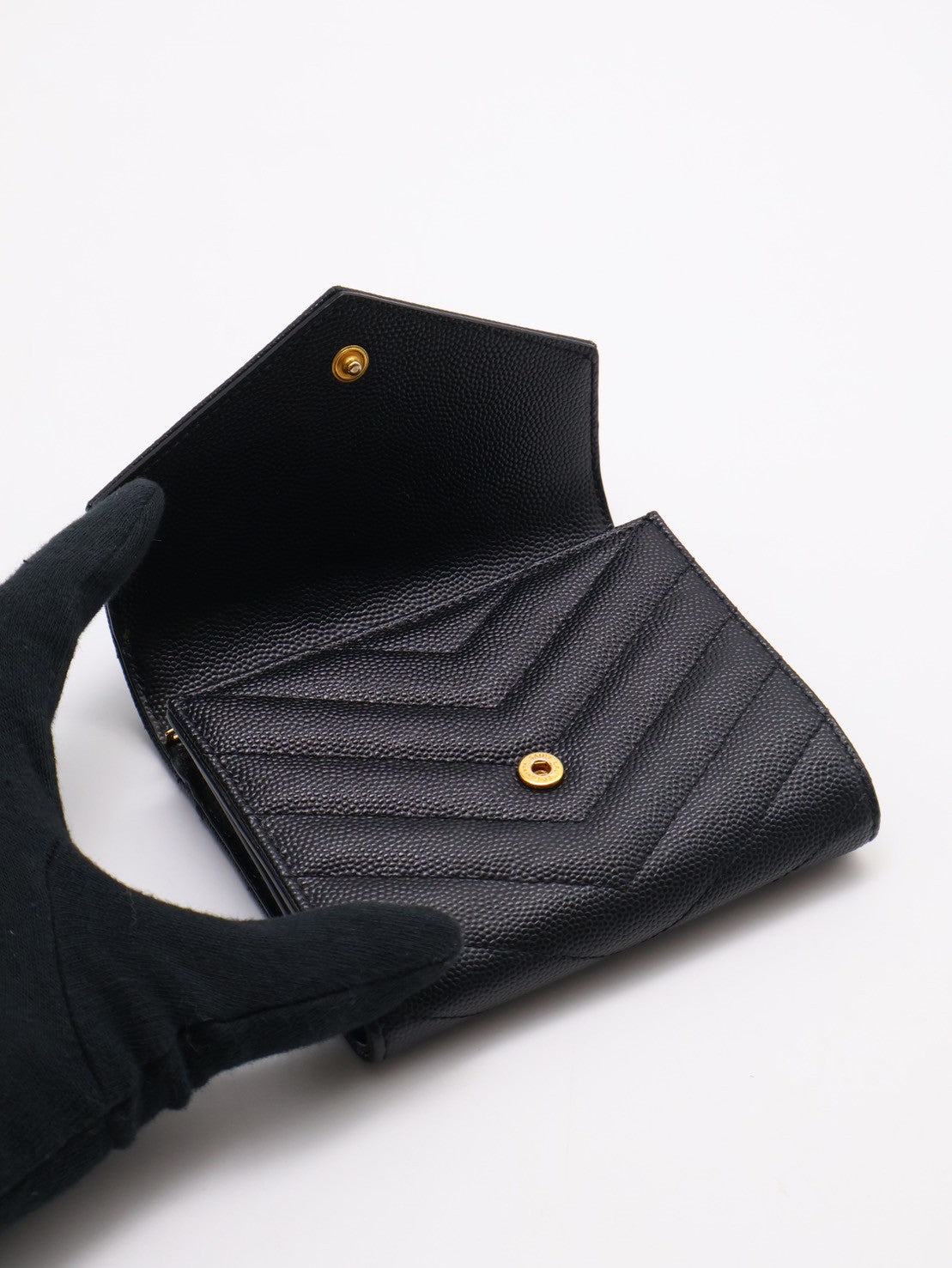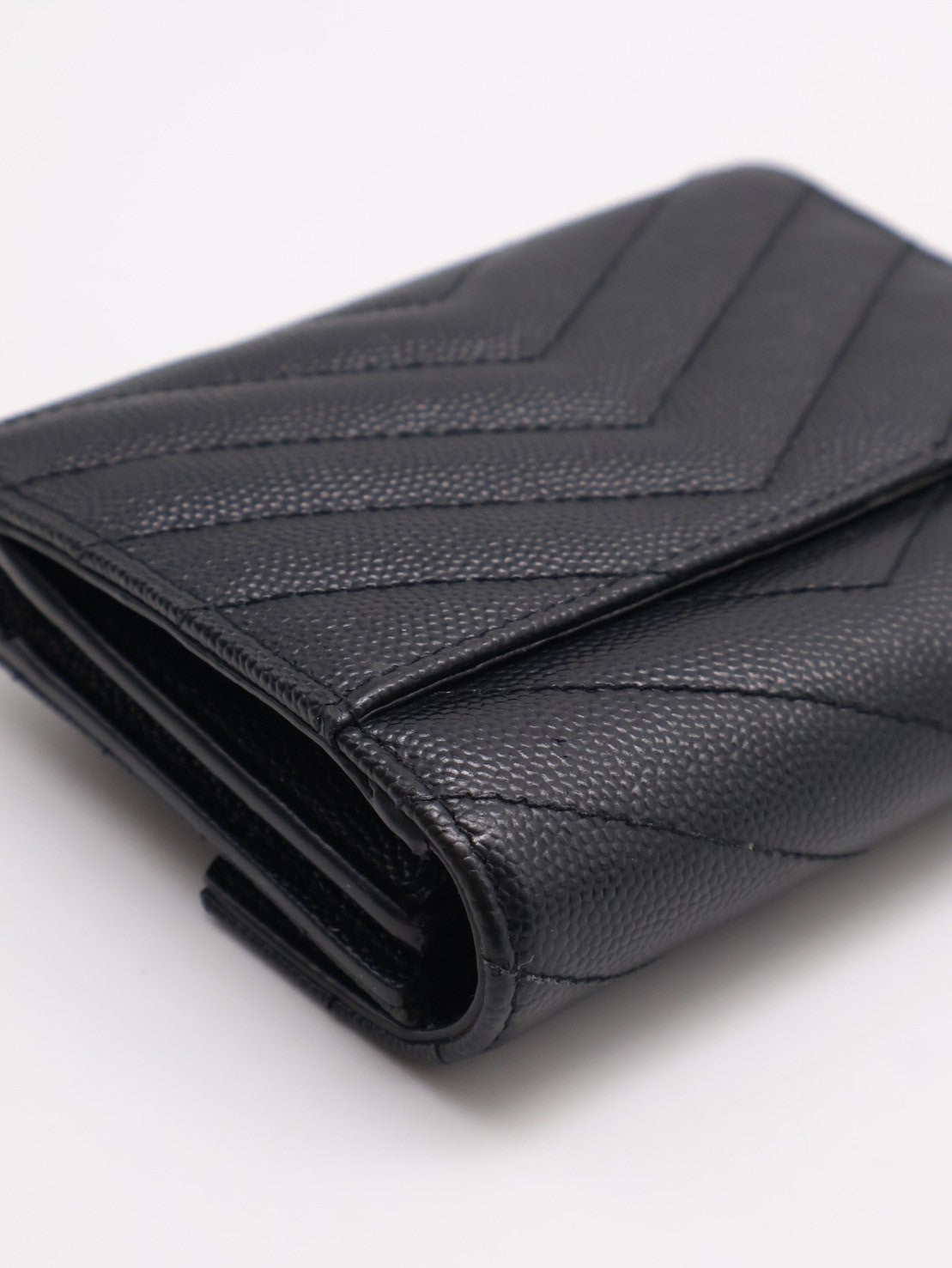YSL 經典V字粒面牛皮三折短夾 - 黑金